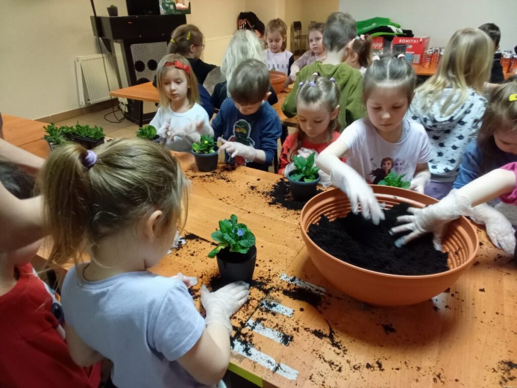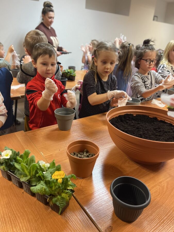 Nasze Przedszkolaki z pełnym zaangażowaniem uczestniczyli w zajęciach. W nagrodę dzieci zabrały swoje własnoręcznie posadzone rośliny do swoich domów. ?