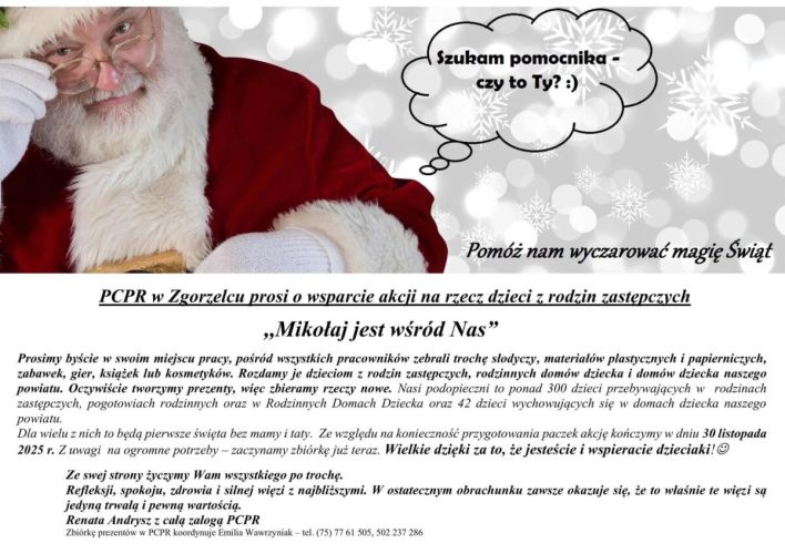zachęcamy do udziału w akcji „Mikołaj jest wśród Nas”. Do paczek zbieramy tylko nowe rzeczy: zabawki, gry, książki, kosmetyki, artykuły papiernicze oraz słodkości.
