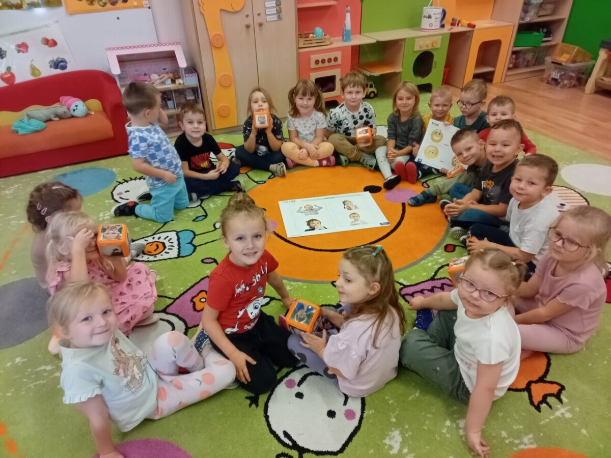 Zajęcia edukacyjne z zakresu profilaktyki przemocy obejmują pięć tematów:emocje, bezpieczne zasady, czyli jak i gdzie szukać pomocy, rozróżnianie dobrego i złego dotyku, prywatność własnego ciała oraz rozpoznawanie dobrych i złych tajemnic.Nasze przedszkolaki zrealizowały dwa pierwsze bloki tematyczne, których głównym celem było:rozwijanie umiejętności rozpoznawania i wyrażania własnych emocji oraz nauczenie dzieci ,że są zachowania, które mogą krzywdzić innych(asertywnego mówienia ,,nie,,).