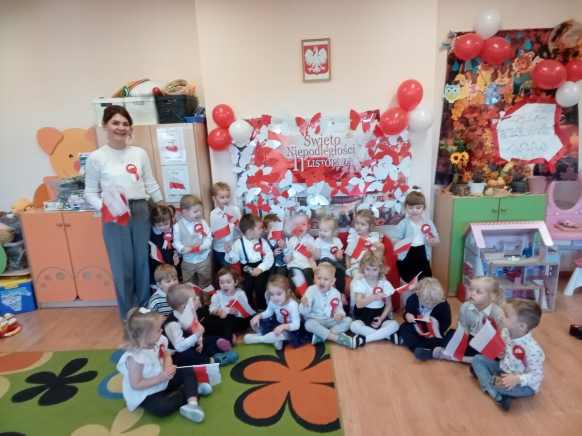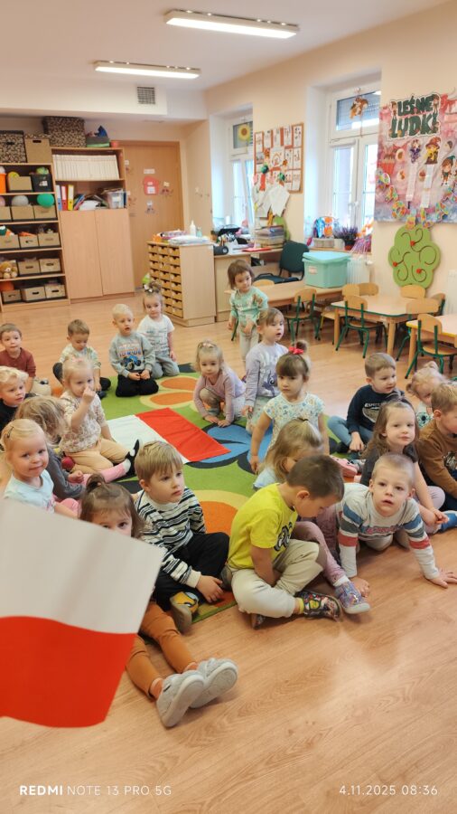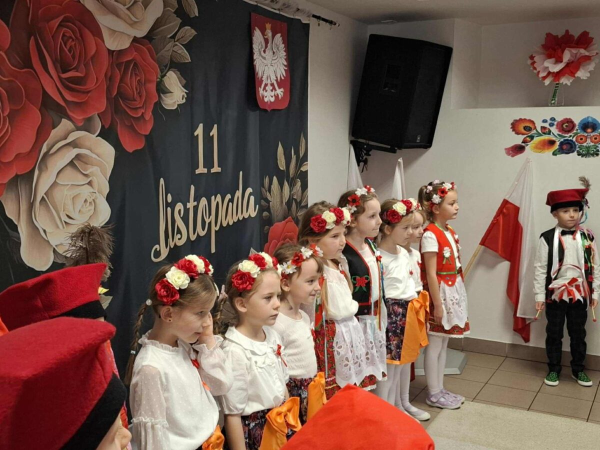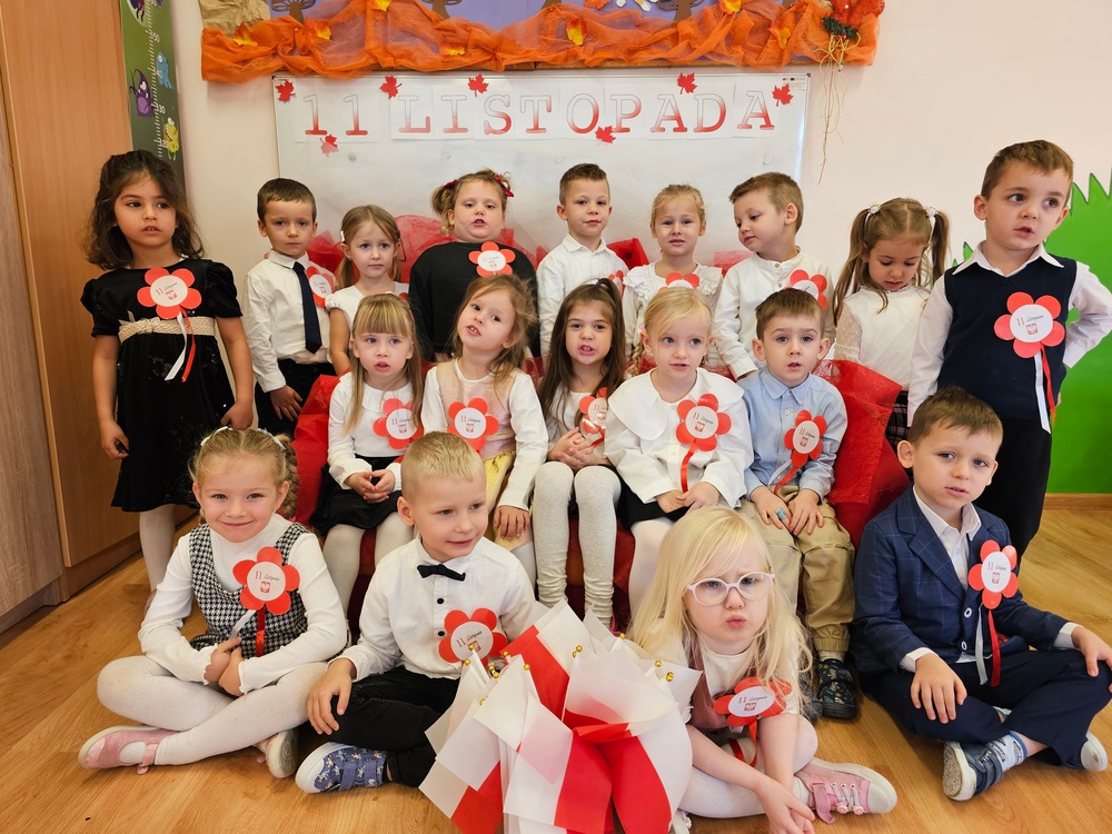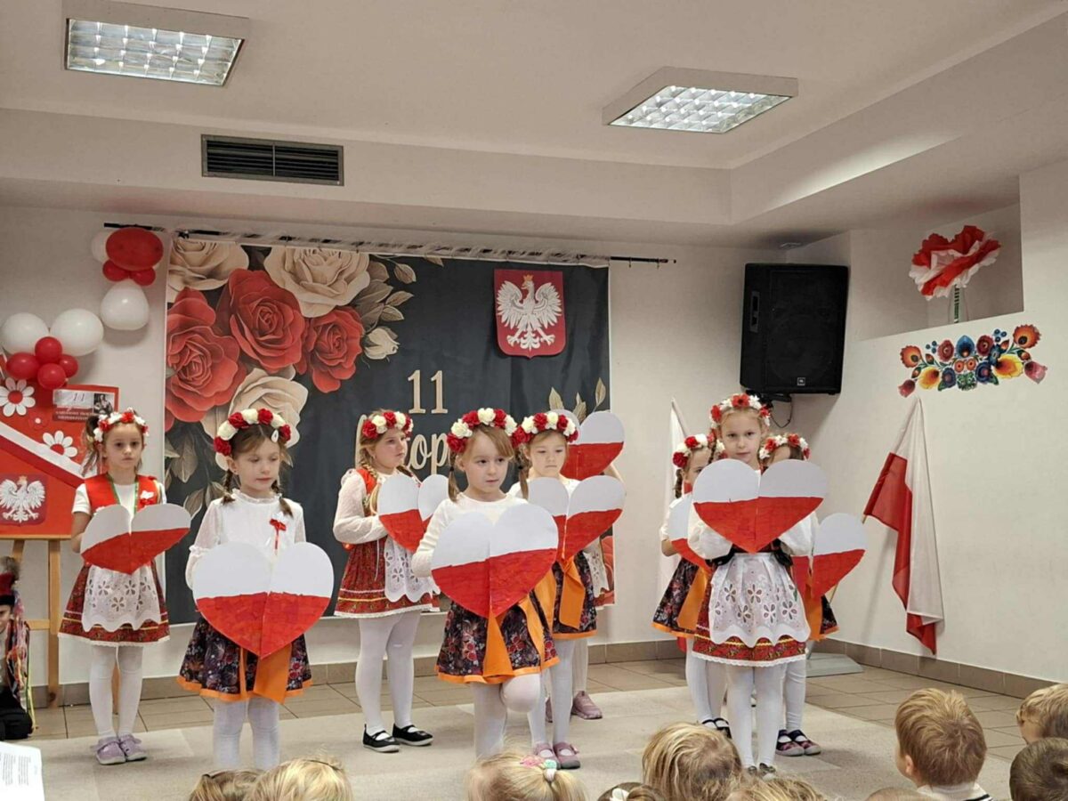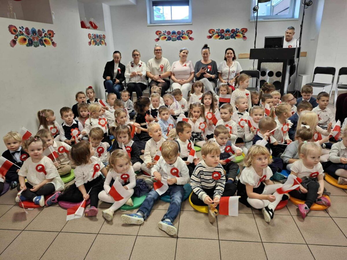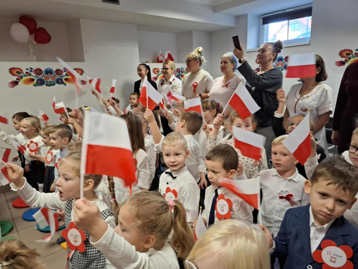 Dnia 07.11.2025 r. odbyła się uroczysta Akademia z okazji obchodów Dnia Niepodległości – 11 listopada. To wyjątkowy czas dla każdej Polki i Polaka. Z tej okazji dzieci z wszystkich grup oraz pracownicy przedszkola zebrali się, aby uroczyście świętować ten wyjątkowy dla Polaków czas. Wszyscy z powagą i w dużym skupieniu oglądali program artystyczny przygotowany przez dzieci ze starszej grupy przedszkolnej. Uroczystość z okazji Narodowego Święta Niepodległości miała na celu rozwijanie wśród wychowanków naszego przedszkola poczucia przynależności narodowej, pielęgnowanie polskiej kultury i tradycji. Jednocześnie była pouczającą lekcją historii i patriotyzmu.