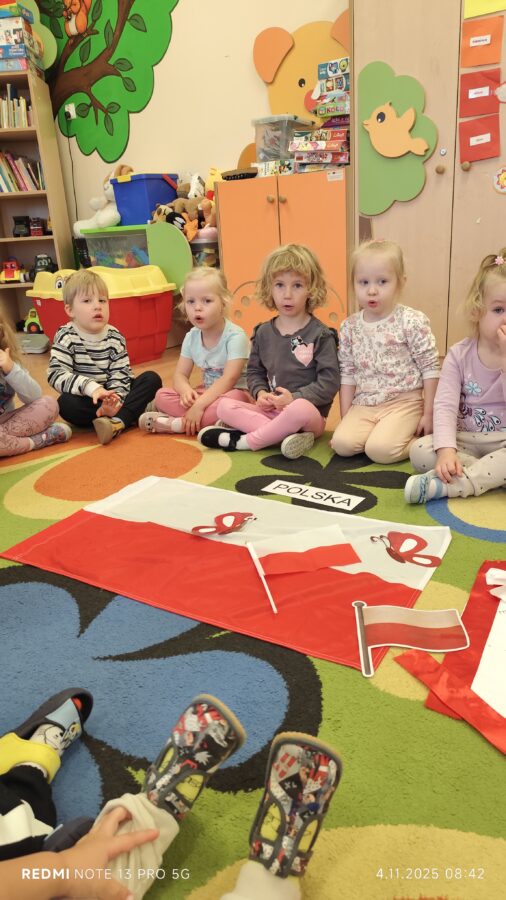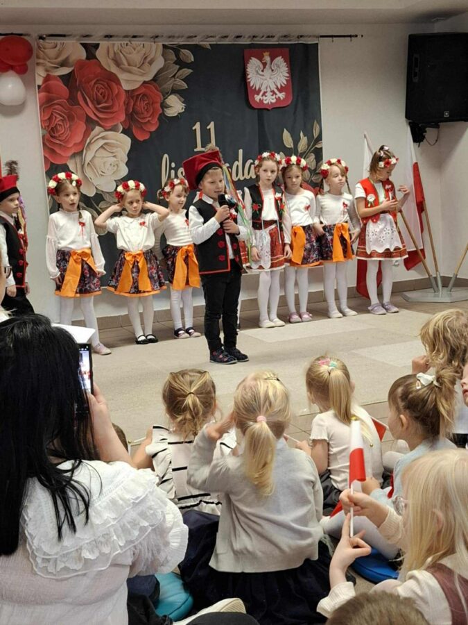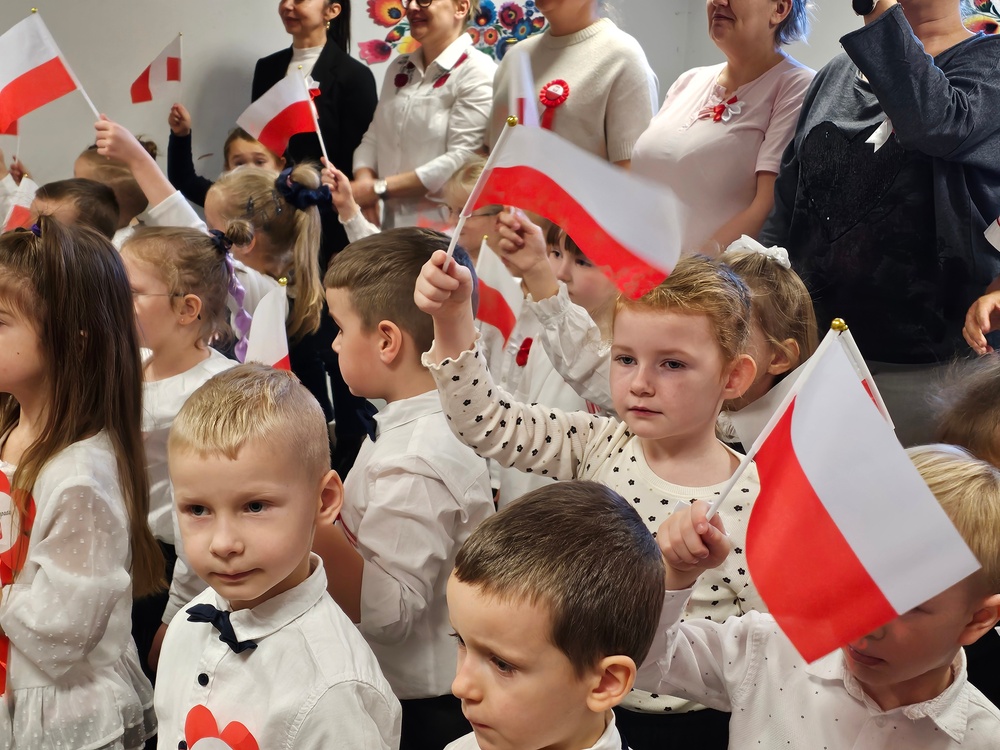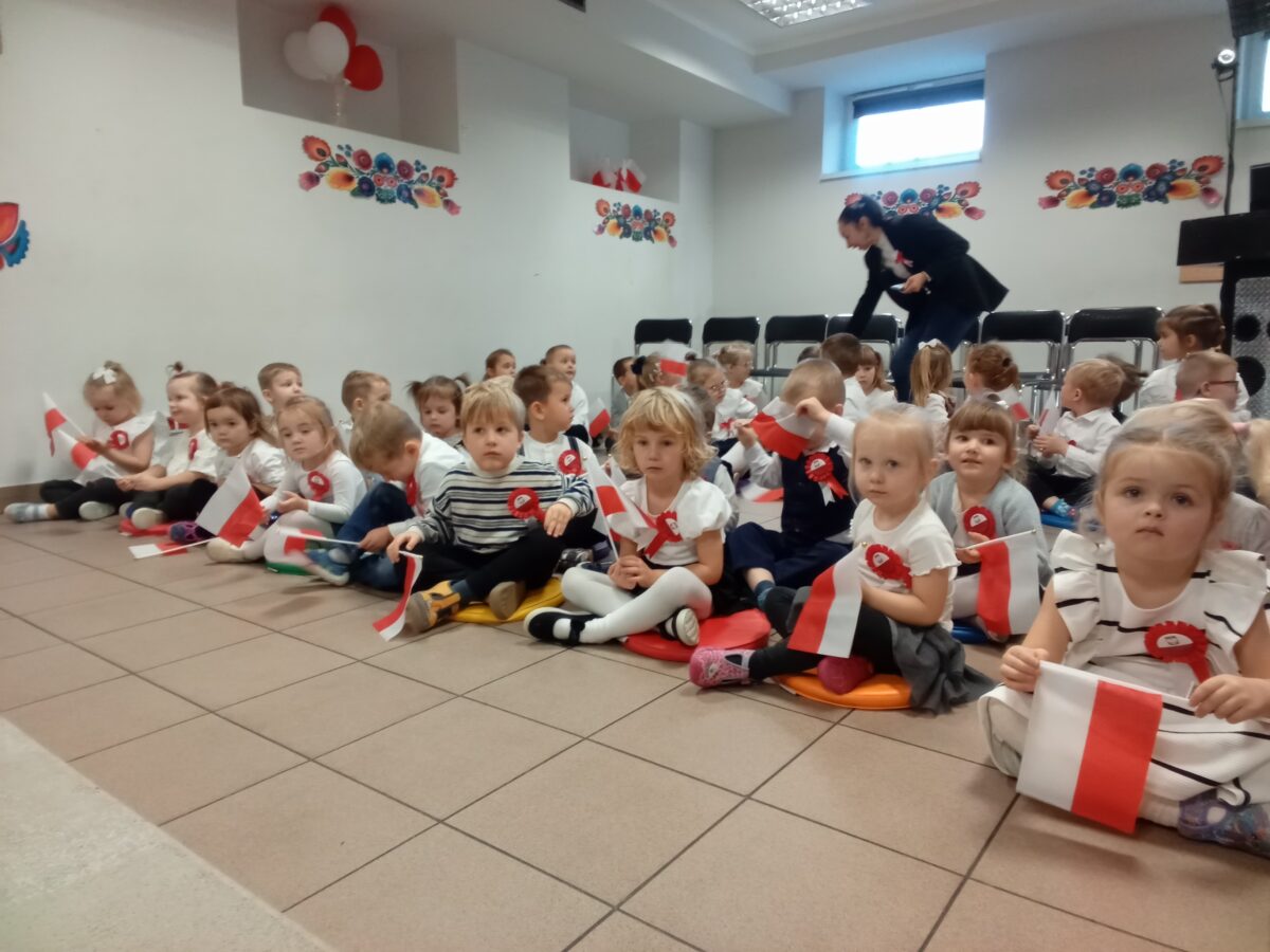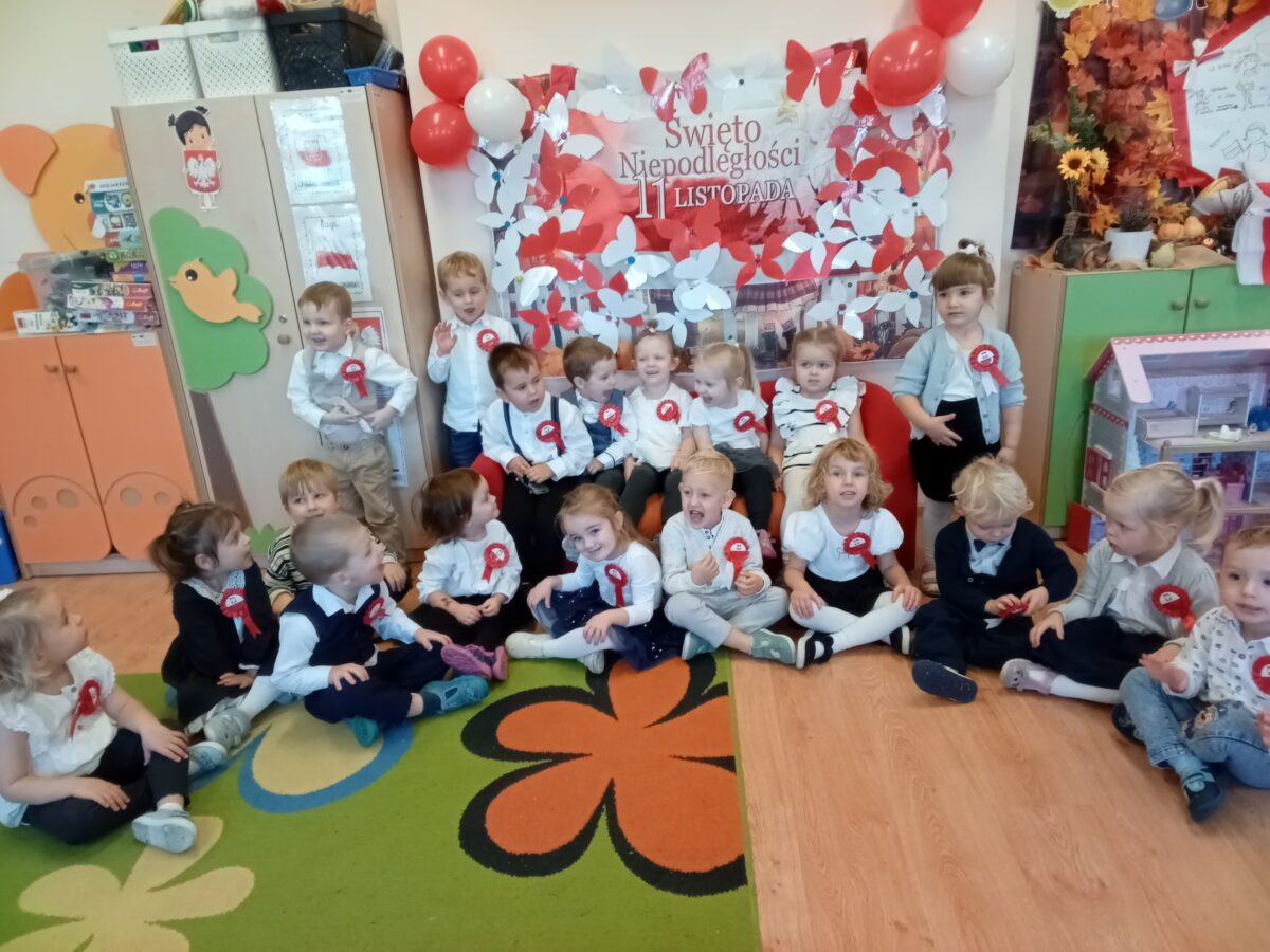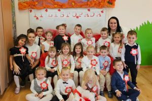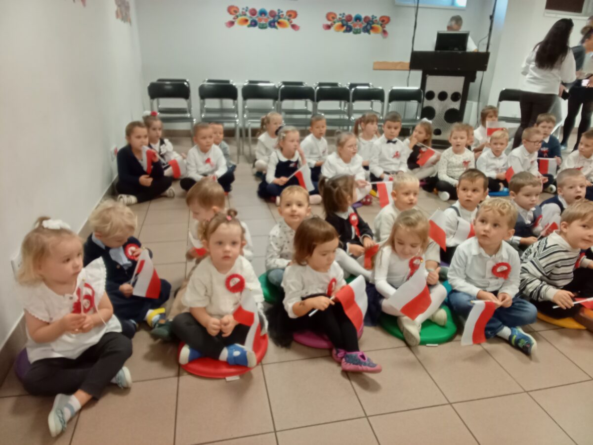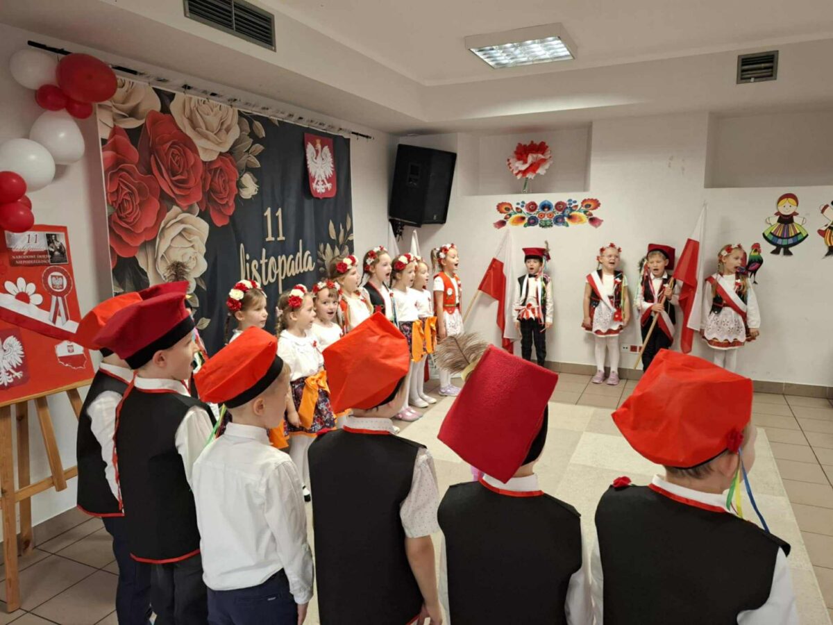 Dnia 07.11.2025 r. odbyła się uroczysta Akademia z okazji obchodów Dnia Niepodległości – 11 listopada. To wyjątkowy czas dla każdej Polki i Polaka. Z tej okazji dzieci z wszystkich grup oraz pracownicy przedszkola zebrali się, aby uroczyście świętować ten wyjątkowy dla Polaków czas. Wszyscy z powagą i w dużym skupieniu oglądali program artystyczny przygotowany przez dzieci ze starszej grupy przedszkolnej. Uroczystość z okazji Narodowego Święta Niepodległości miała na celu rozwijanie wśród wychowanków naszego przedszkola poczucia przynależności narodowej, pielęgnowanie polskiej kultury i tradycji. Jednocześnie była pouczającą lekcją historii i patriotyzmu.