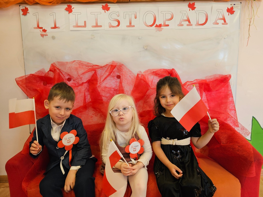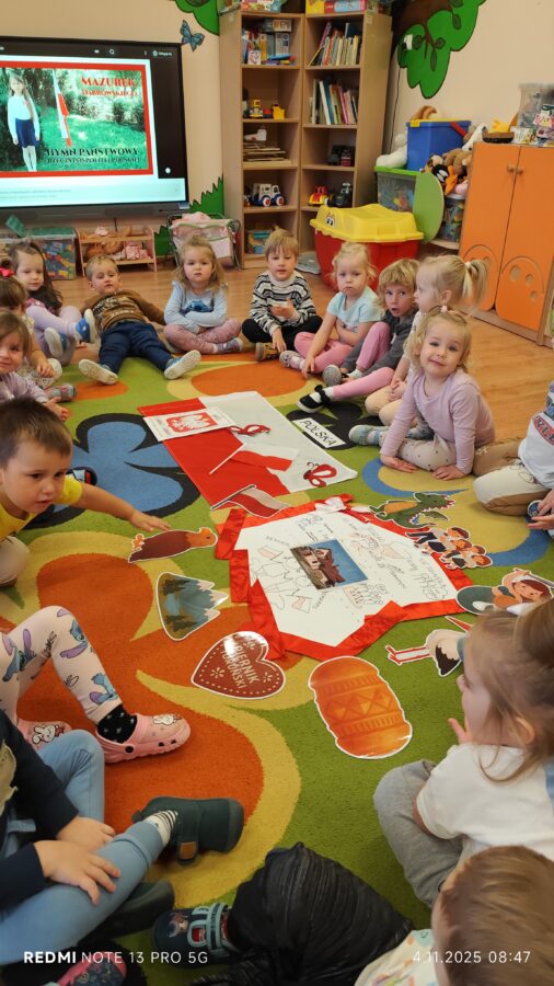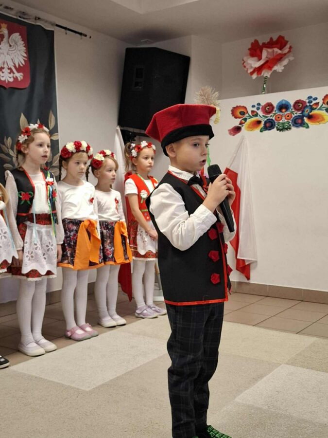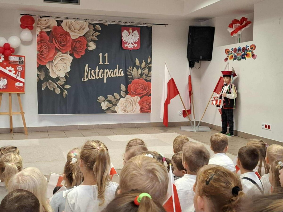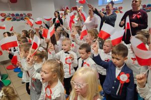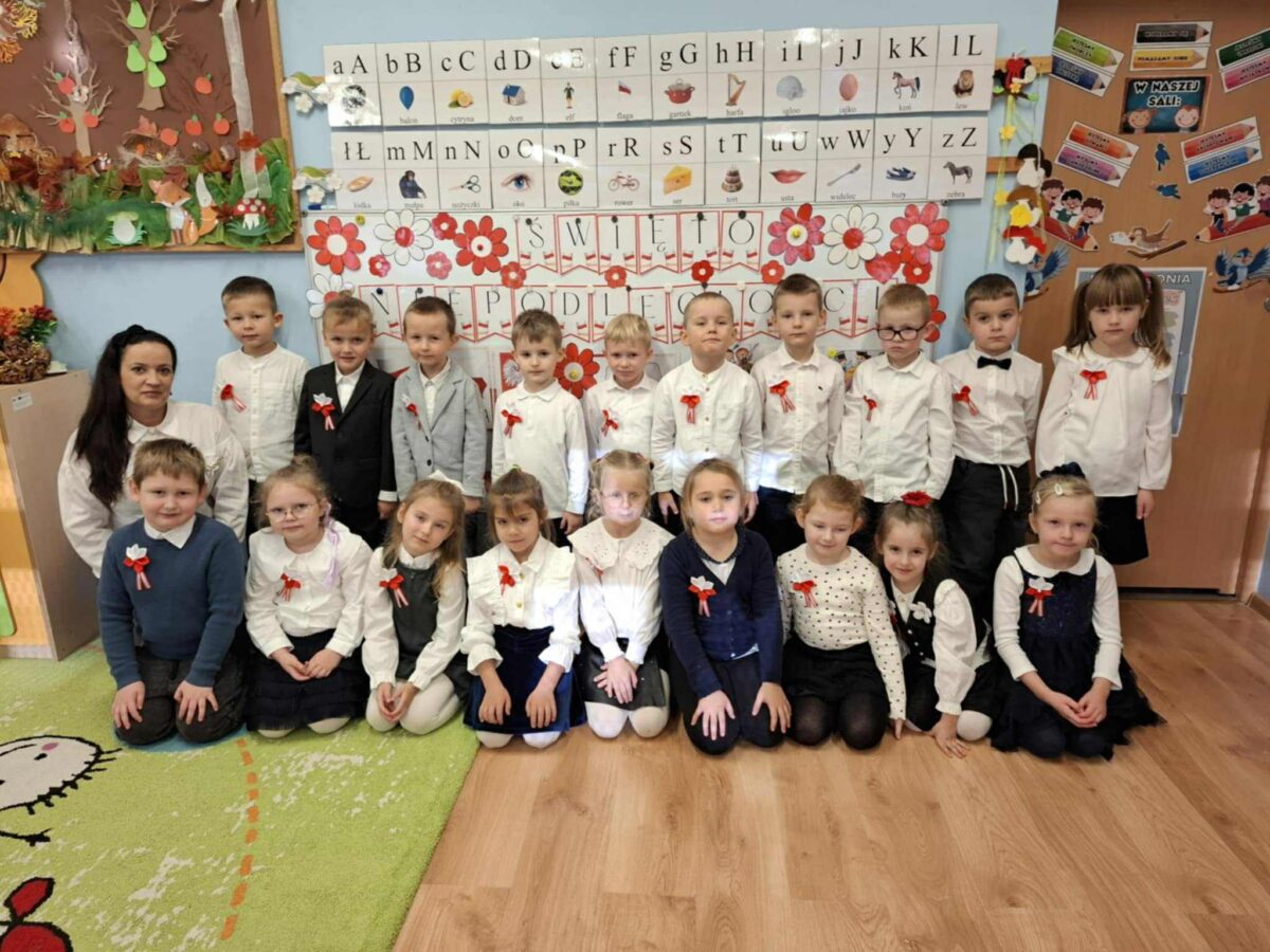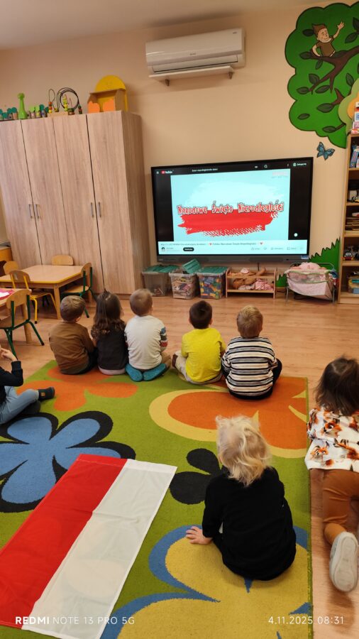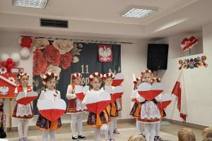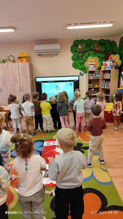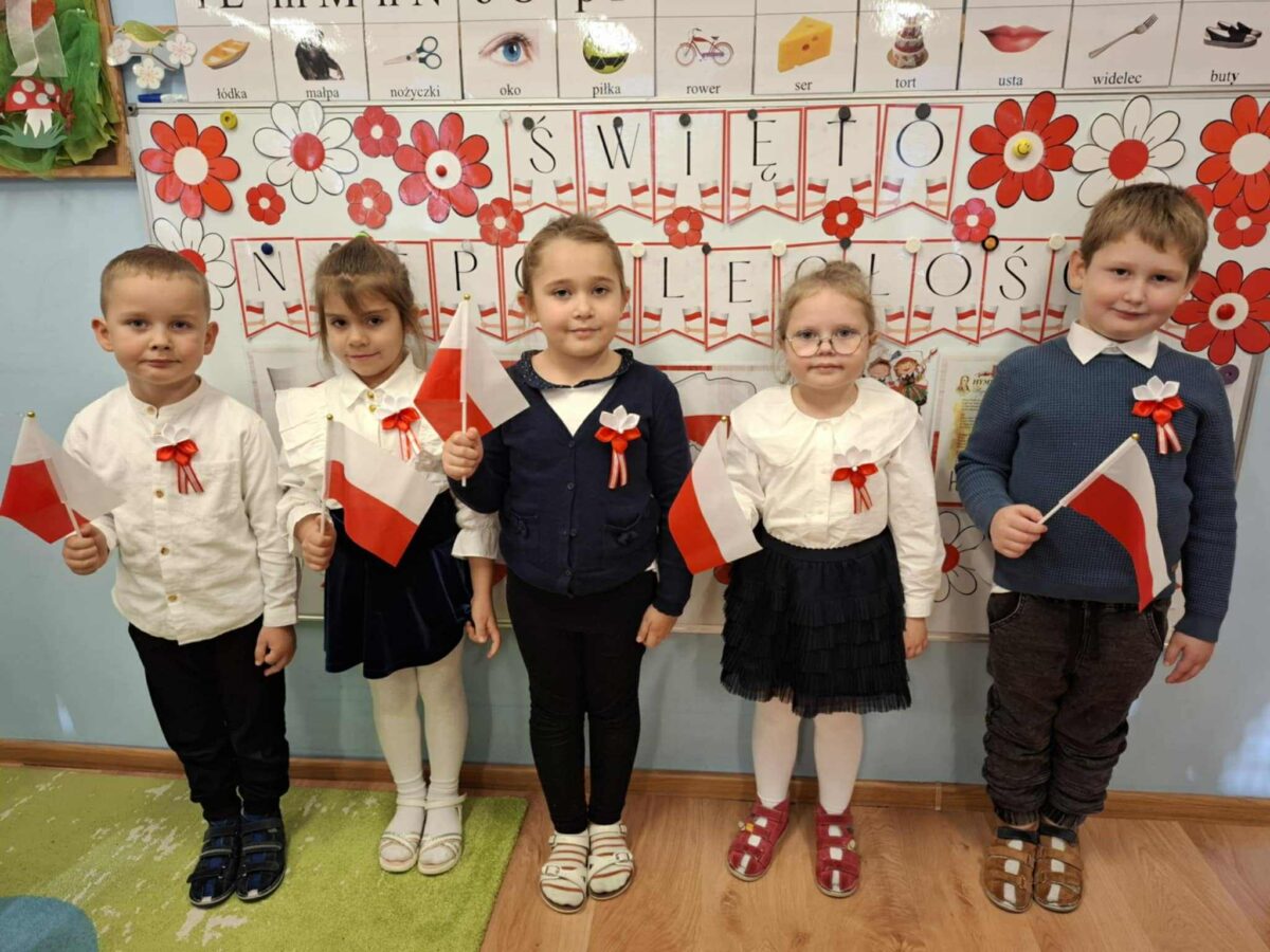 Dnia 07.11.2025 r. odbyła się uroczysta Akademia z okazji obchodów Dnia Niepodległości – 11 listopada. To wyjątkowy czas dla każdej Polki i Polaka. Z tej okazji dzieci z wszystkich grup oraz pracownicy przedszkola zebrali się, aby uroczyście świętować ten wyjątkowy dla Polaków czas. Wszyscy z powagą i w dużym skupieniu oglądali program artystyczny przygotowany przez dzieci ze starszej grupy przedszkolnej. Uroczystość z okazji Narodowego Święta Niepodległości miała na celu rozwijanie wśród wychowanków naszego przedszkola poczucia przynależności narodowej, pielęgnowanie polskiej kultury i tradycji. Jednocześnie była pouczającą lekcją historii i patriotyzmu.