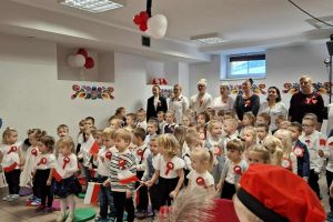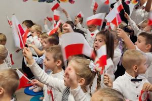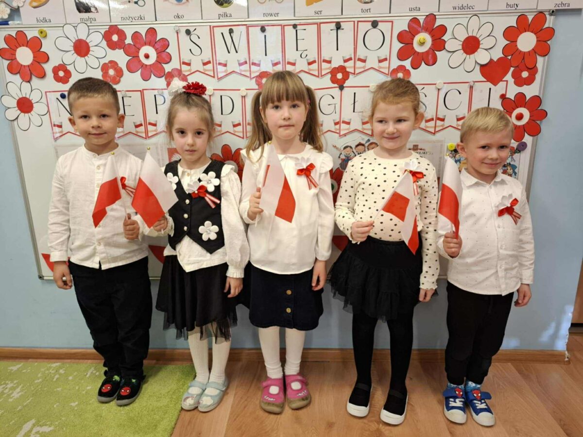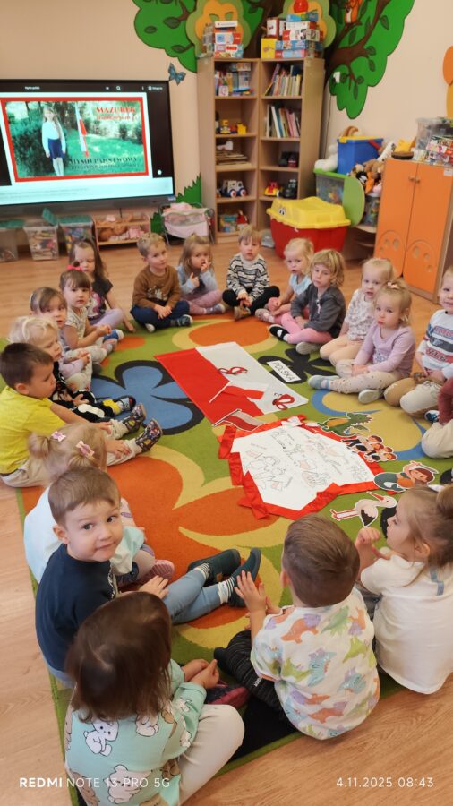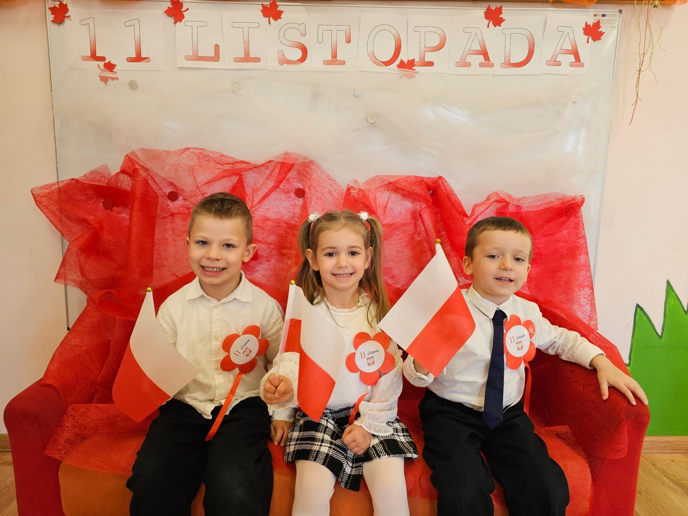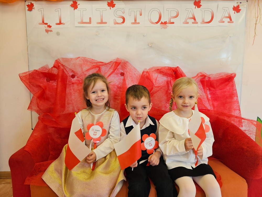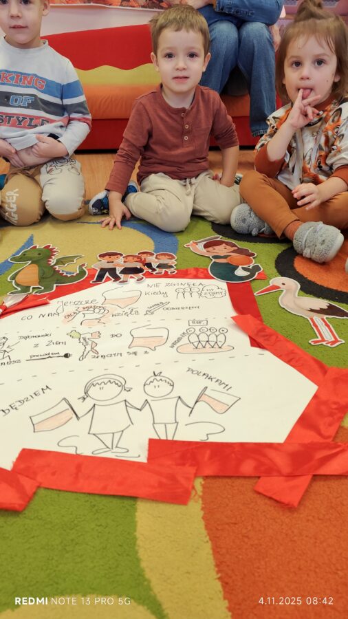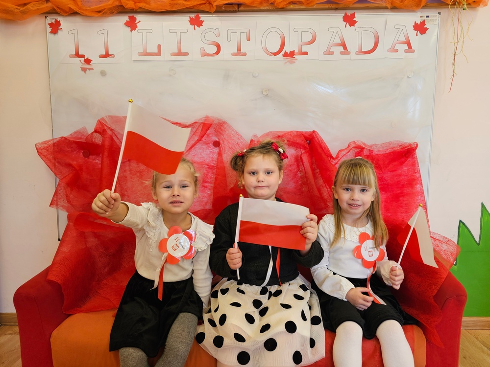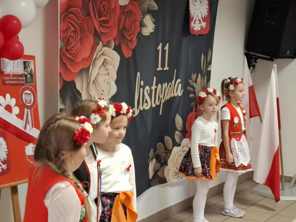 Dnia 07.11.2025 r. odbyła się uroczysta Akademia z okazji obchodów Dnia Niepodległości – 11 listopada. To wyjątkowy czas dla każdej Polki i Polaka. Z tej okazji dzieci z wszystkich grup oraz pracownicy przedszkola zebrali się, aby uroczyście świętować ten wyjątkowy dla Polaków czas. Wszyscy z powagą i w dużym skupieniu oglądali program artystyczny przygotowany przez dzieci ze starszej grupy przedszkolnej. Uroczystość z okazji Narodowego Święta Niepodległości miała na celu rozwijanie wśród wychowanków naszego przedszkola poczucia przynależności narodowej, pielęgnowanie polskiej kultury i tradycji. Jednocześnie była pouczającą lekcją historii i patriotyzmu.