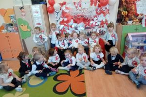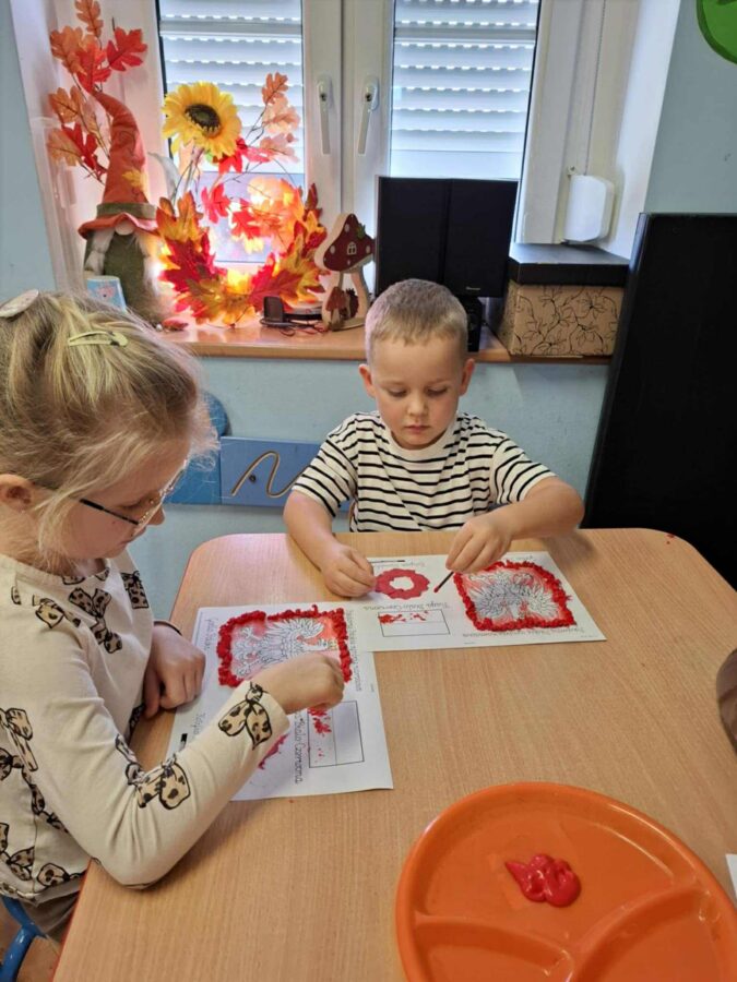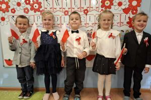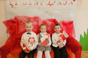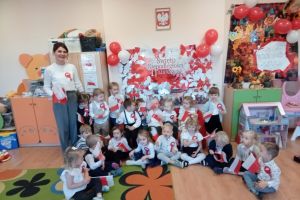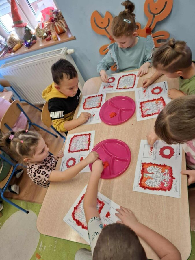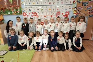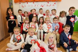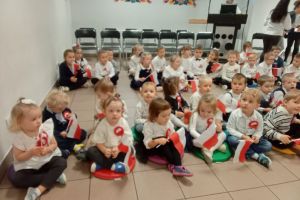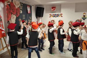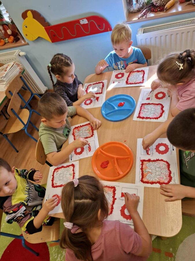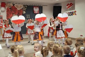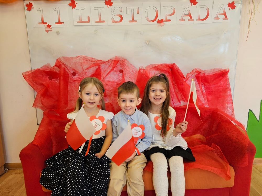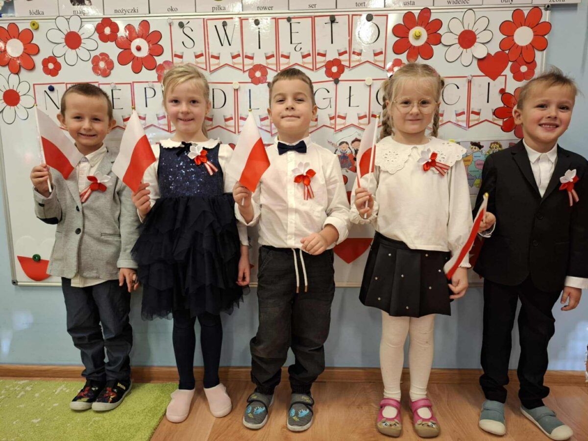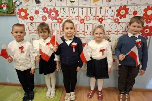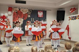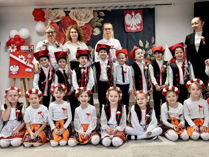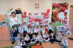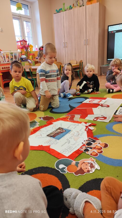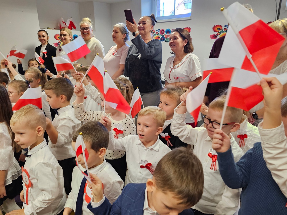 Dnia 07.11.2025 r. odbyła się uroczysta Akademia z okazji obchodów Dnia Niepodległości – 11 listopada. To wyjątkowy czas dla każdej Polki i Polaka. Z tej okazji dzieci z wszystkich grup oraz pracownicy przedszkola zebrali się, aby uroczyście świętować ten wyjątkowy dla Polaków czas. Wszyscy z powagą i w dużym skupieniu oglądali program artystyczny przygotowany przez dzieci ze starszej grupy przedszkolnej. Uroczystość z okazji Narodowego Święta Niepodległości miała na celu rozwijanie wśród wychowanków naszego przedszkola poczucia przynależności narodowej, pielęgnowanie polskiej kultury i tradycji. Jednocześnie była pouczającą lekcją historii i patriotyzmu.