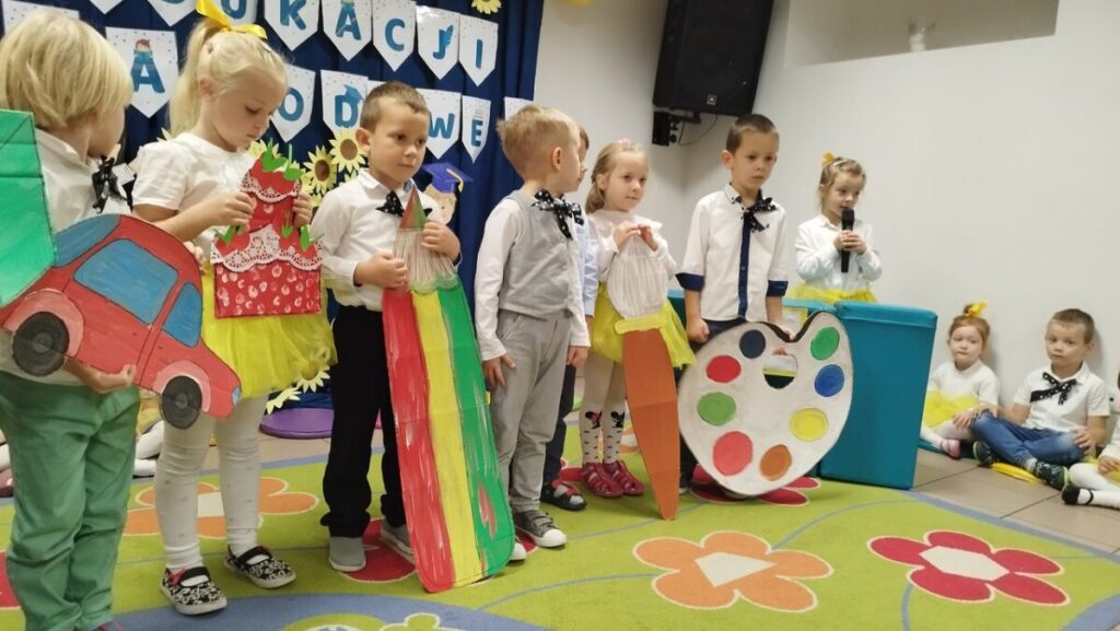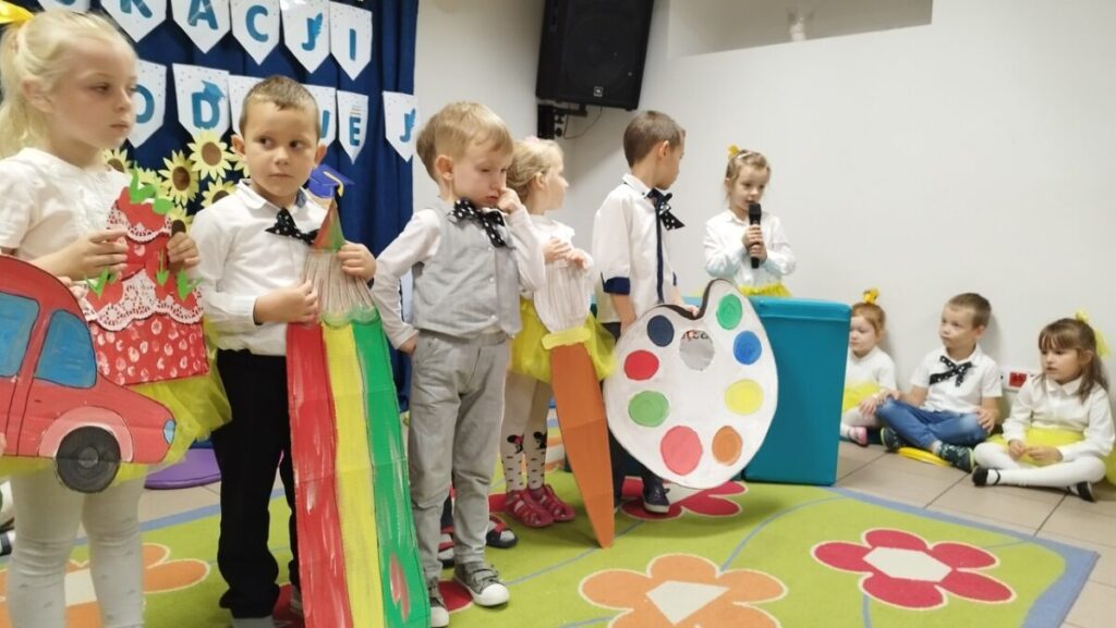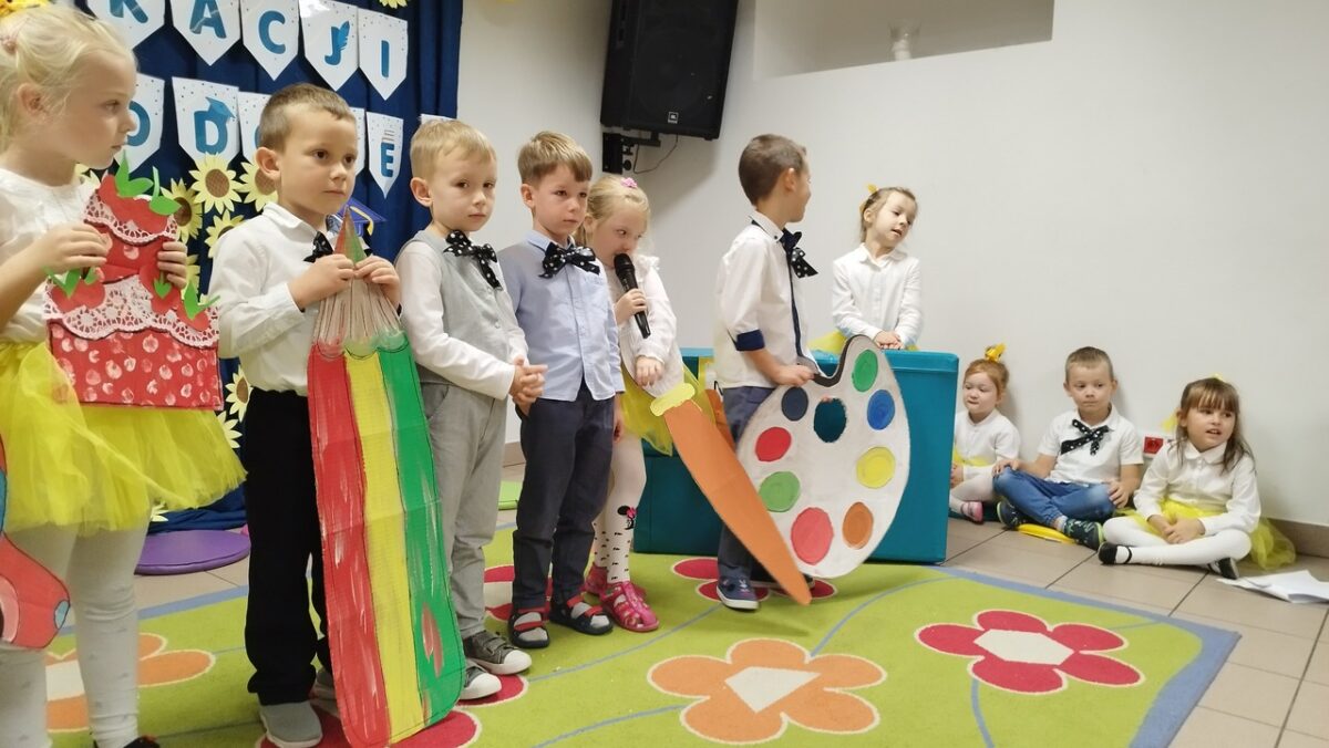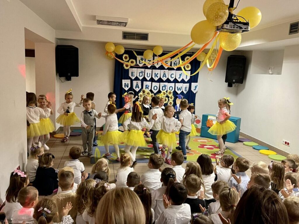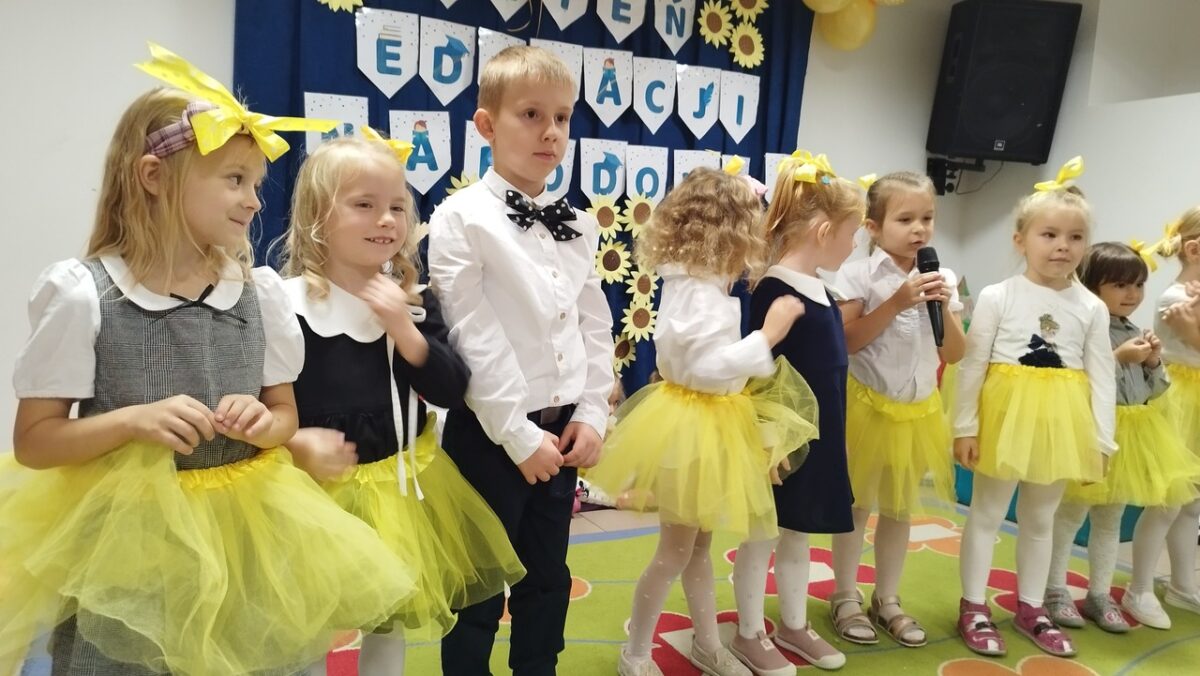 W tym wyjątkowym dniu dzieci z grupy „Słowiki” pod kierownictwem Pani Kasi i Pani Kamili przygotowały dla wszystkich pracowników Przedszkola „Krasnoludki” i żłobka „Muchomorek” niezwykłą uroczystość.