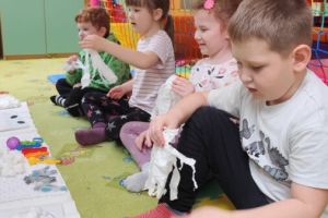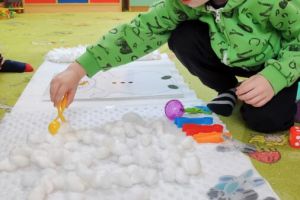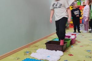 – Pierwsze zimowe płatki – przygoda z lekkim dotykiem śniegu. Wzmacnianie koordynacji wzrokowo-ruchowej przez aktywności manualne.