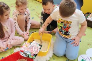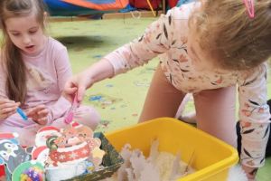 – Świąteczne przygotowania -sensoryczne odkrywanie zimowych faktur. Rozwijanie małej motoryki poprzez manipulowanie drobnymi przedmiotami.