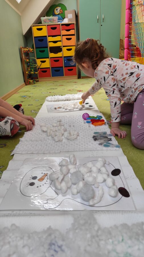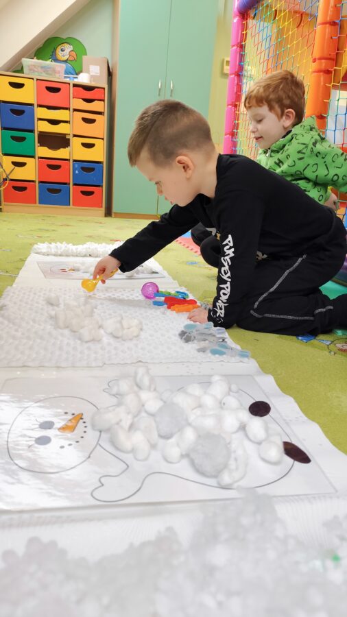 – Pierwsze zimowe płatki – przygoda z lekkim dotykiem śniegu. Wzmacnianie koordynacji wzrokowo-ruchowej przez aktywności manualne.