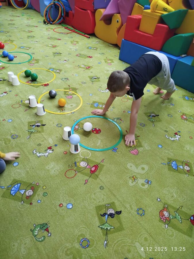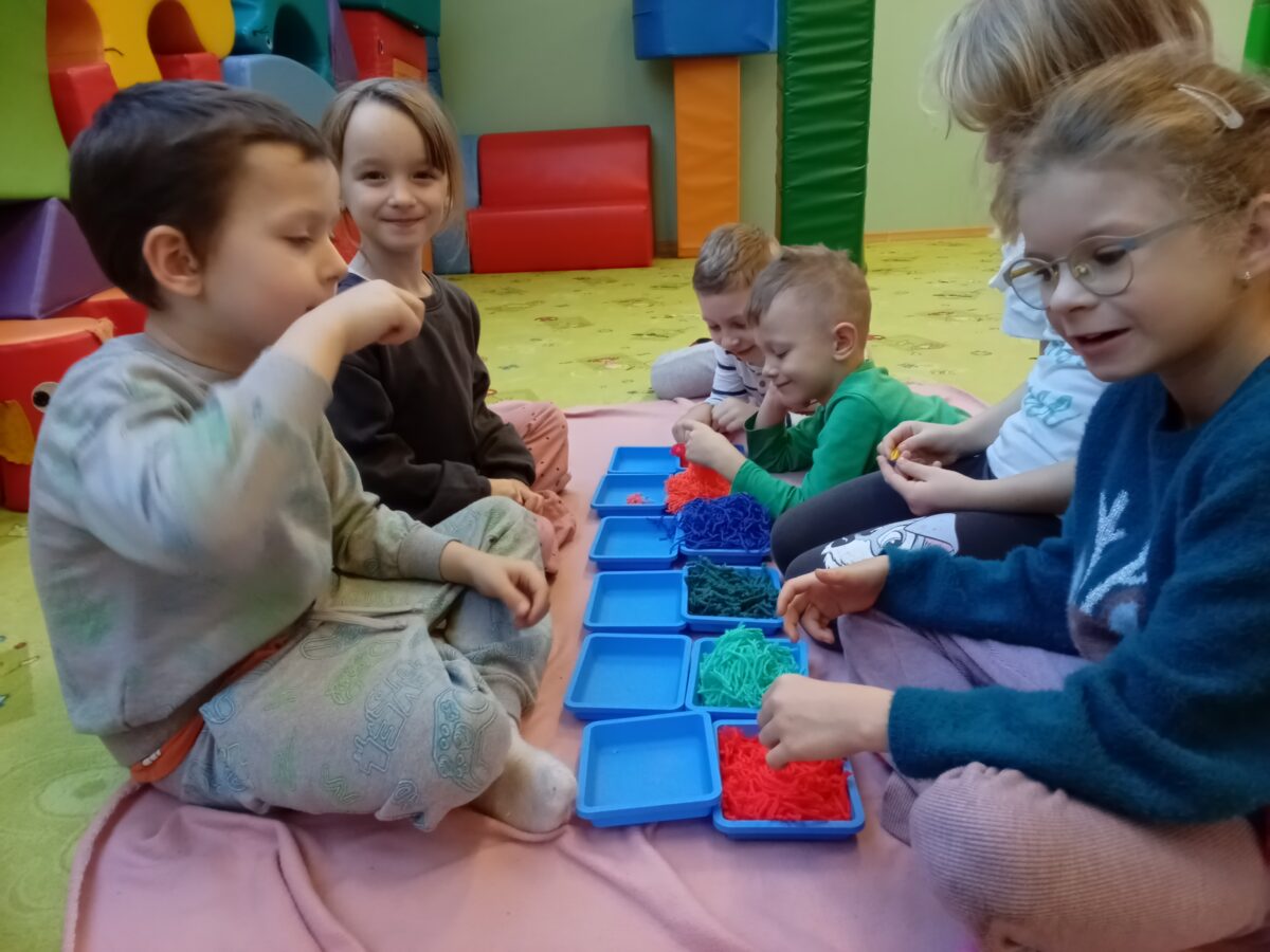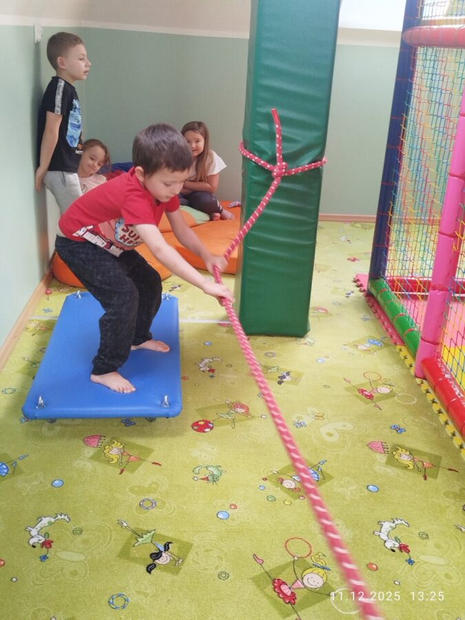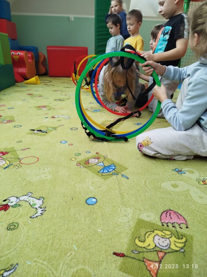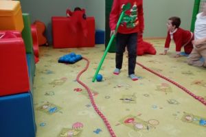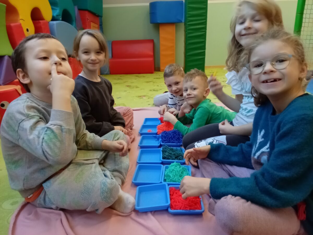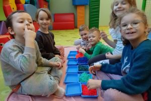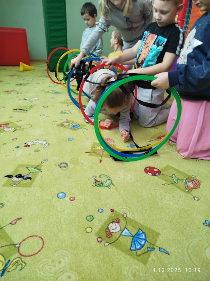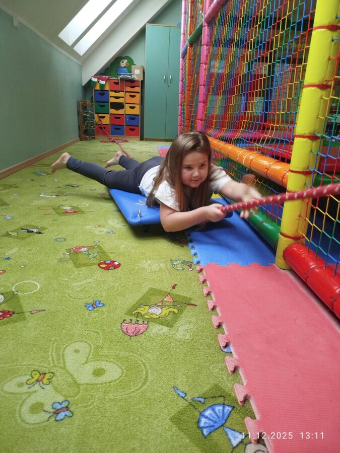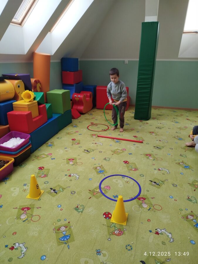 W grudniu dzieci z grupy Jeżyki aktywnie uczestniczyły w proponowanych zabawach z elementami integracji sensorycznej.Zabawy i ćwiczenia stymulujące zmysły:dotyku, wzroku, słuchu oraz równowagę i koordynację wzrokowo-ruchową były z zaangażowaniem wykonywane przez dzieci.