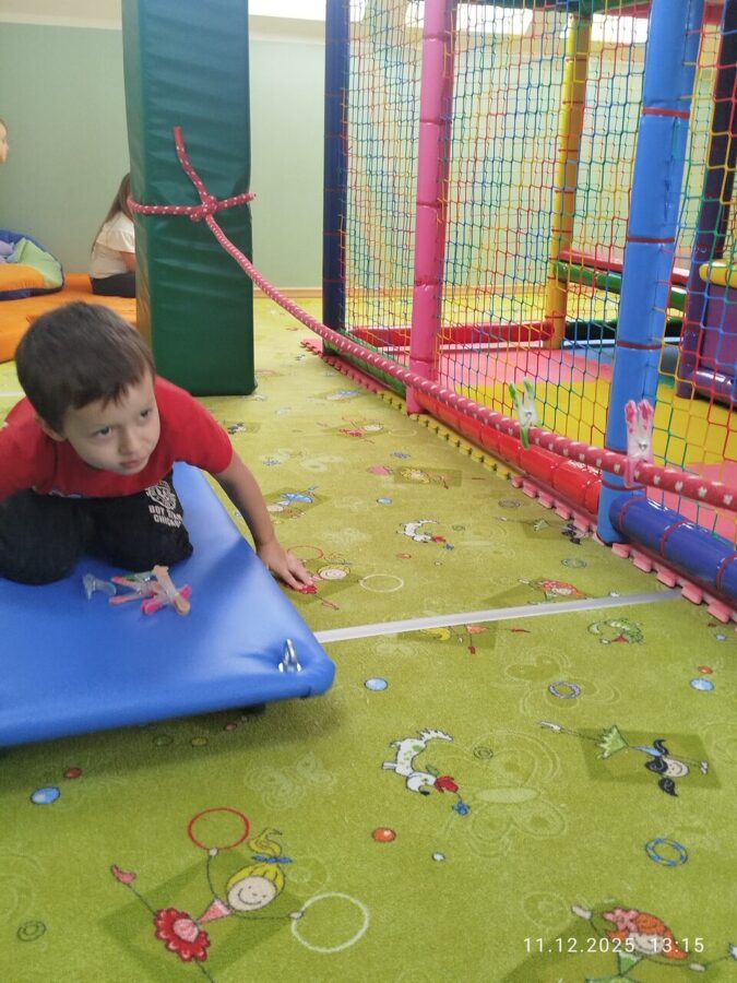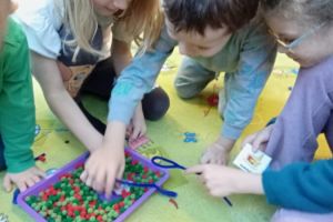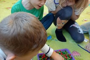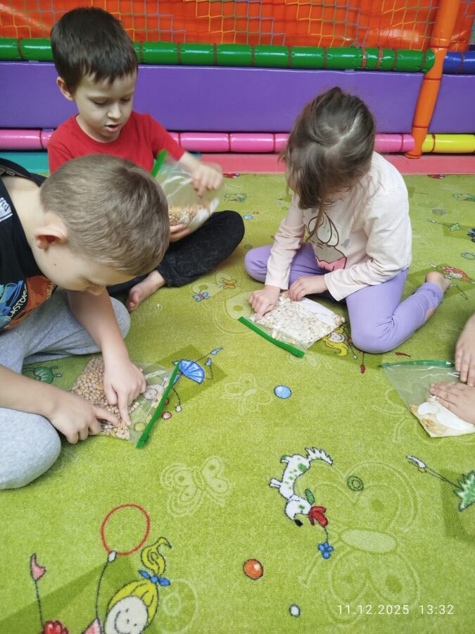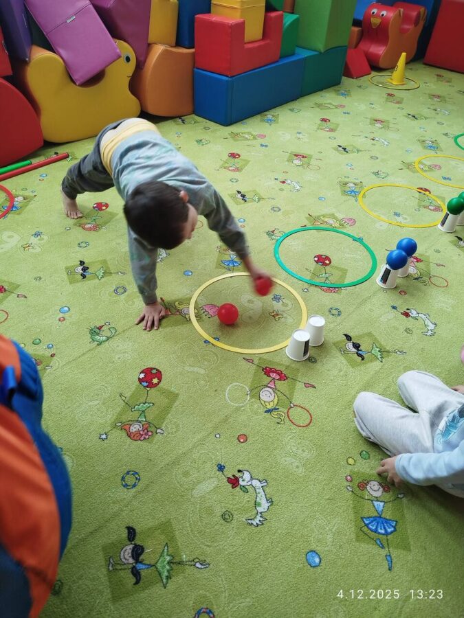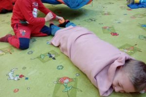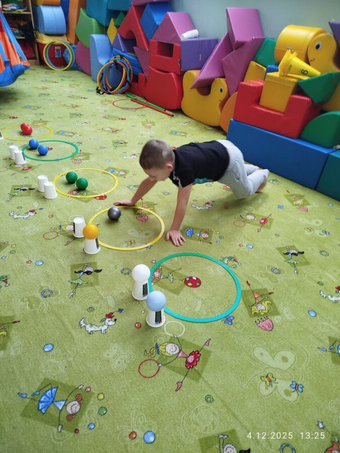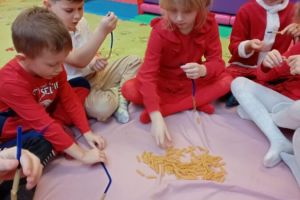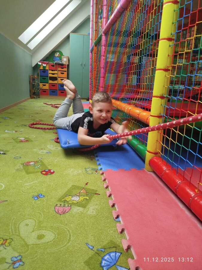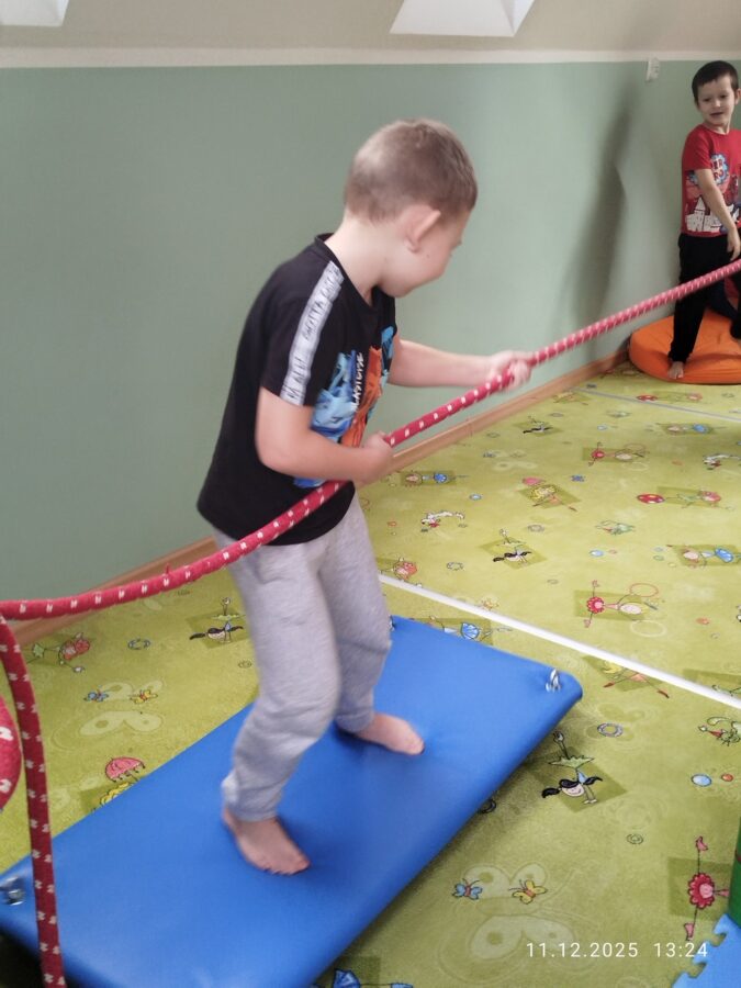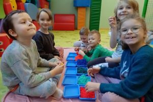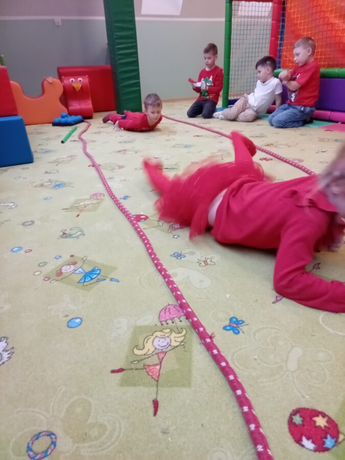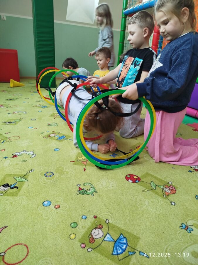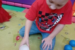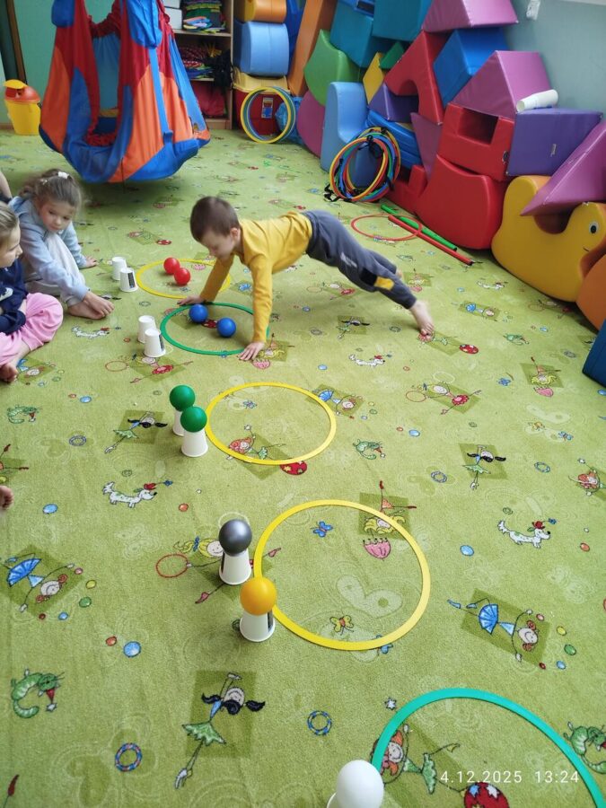 W grudniu dzieci z grupy Jeżyki aktywnie uczestniczyły w proponowanych zabawach z elementami integracji sensorycznej.Zabawy i ćwiczenia stymulujące zmysły:dotyku, wzroku, słuchu oraz równowagę i koordynację wzrokowo-ruchową były z zaangażowaniem wykonywane przez dzieci.