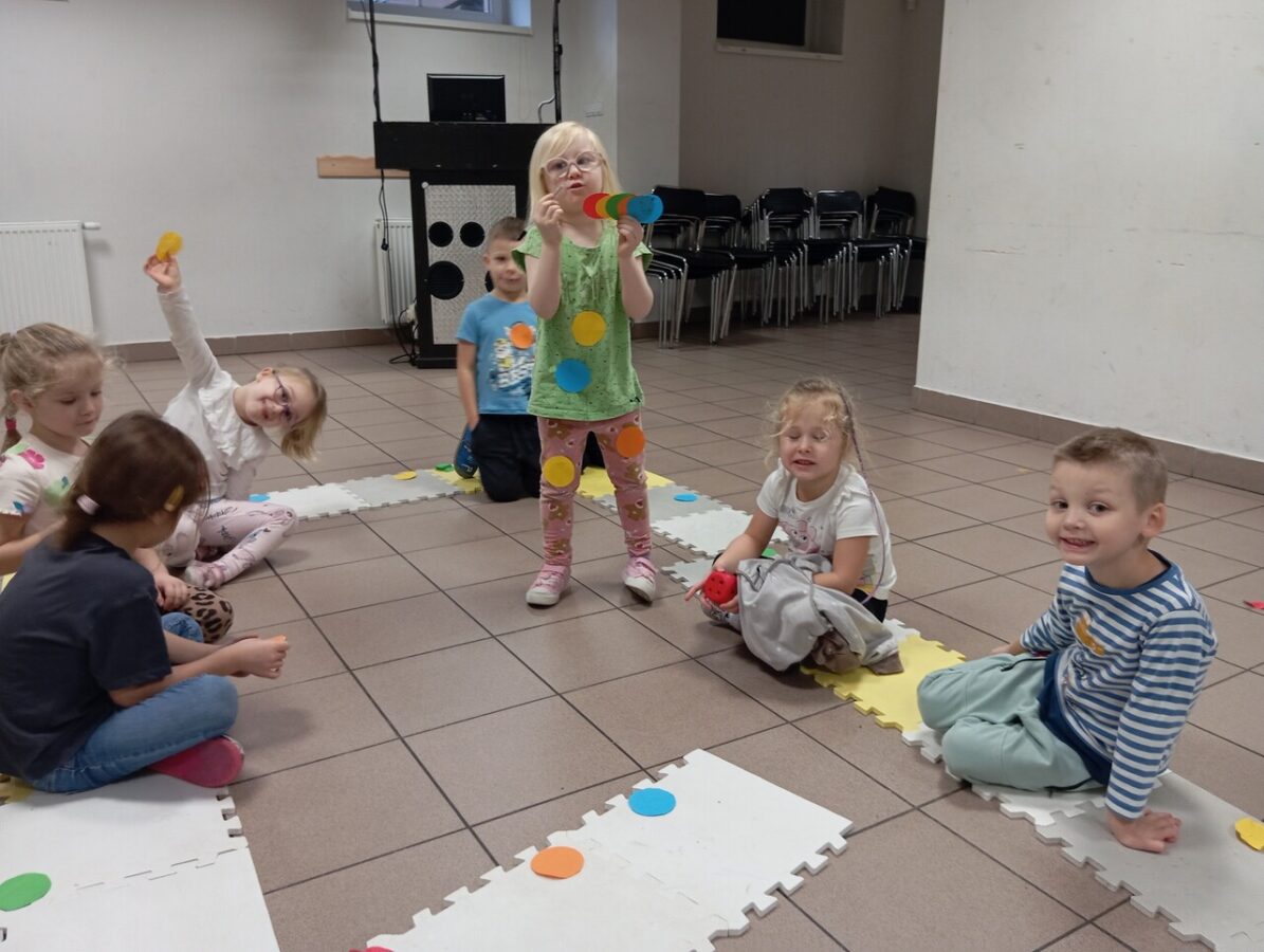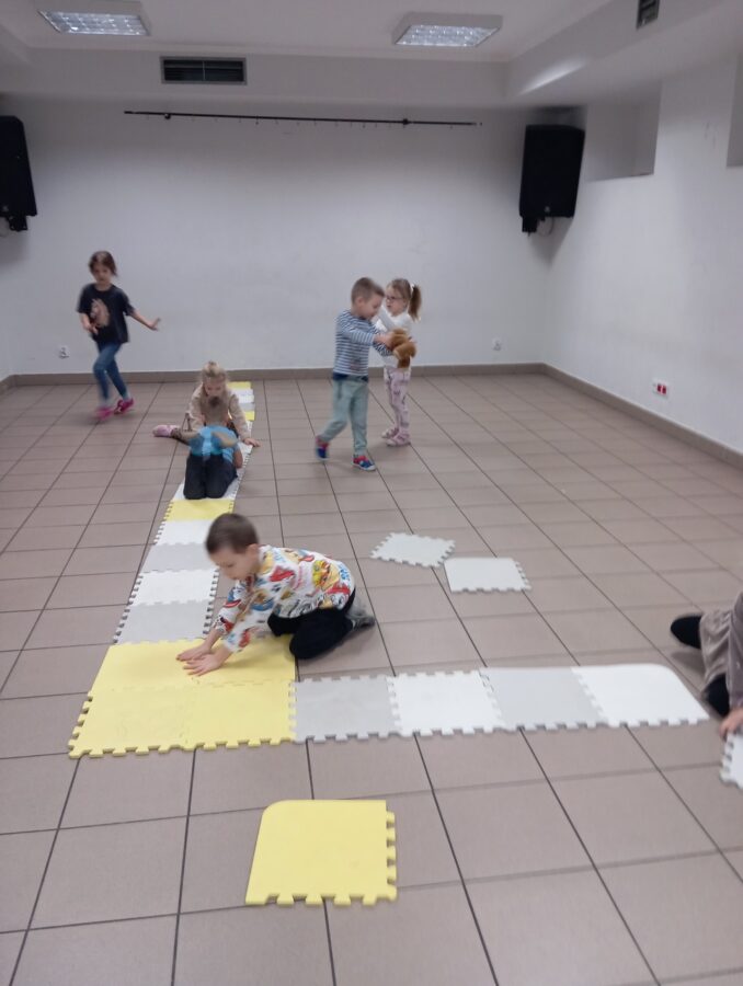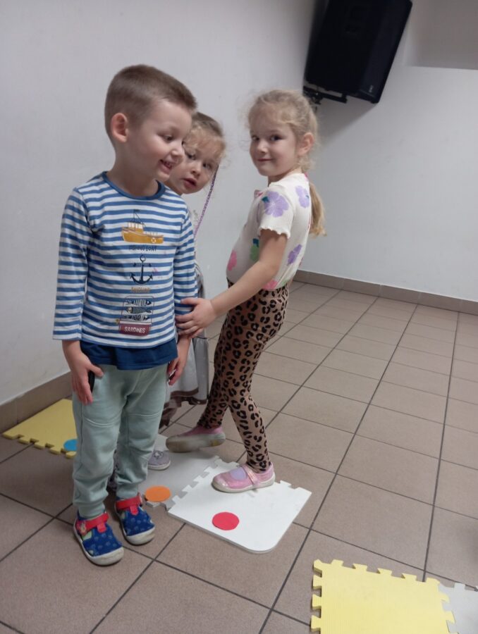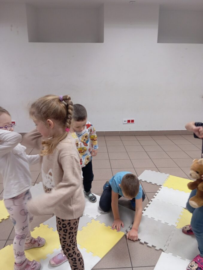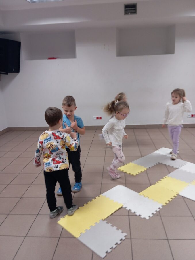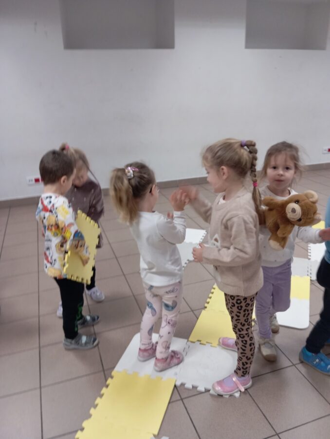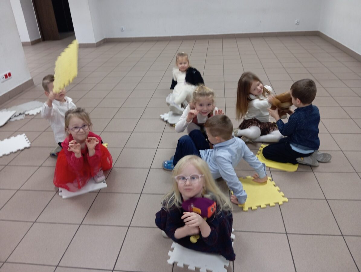 W grudniu dzieci z grupy Pszczółki, podczas zajęć TUS, zrealizowały następujące tematy: „Radzenie sobie z trudnymi emocjami”, „Podsumowanie cyklu zajęć o emocjach”, „Co mnie różni od innych”. Zajęcia były pełne emocji, wyzwań, zabaw i energii.