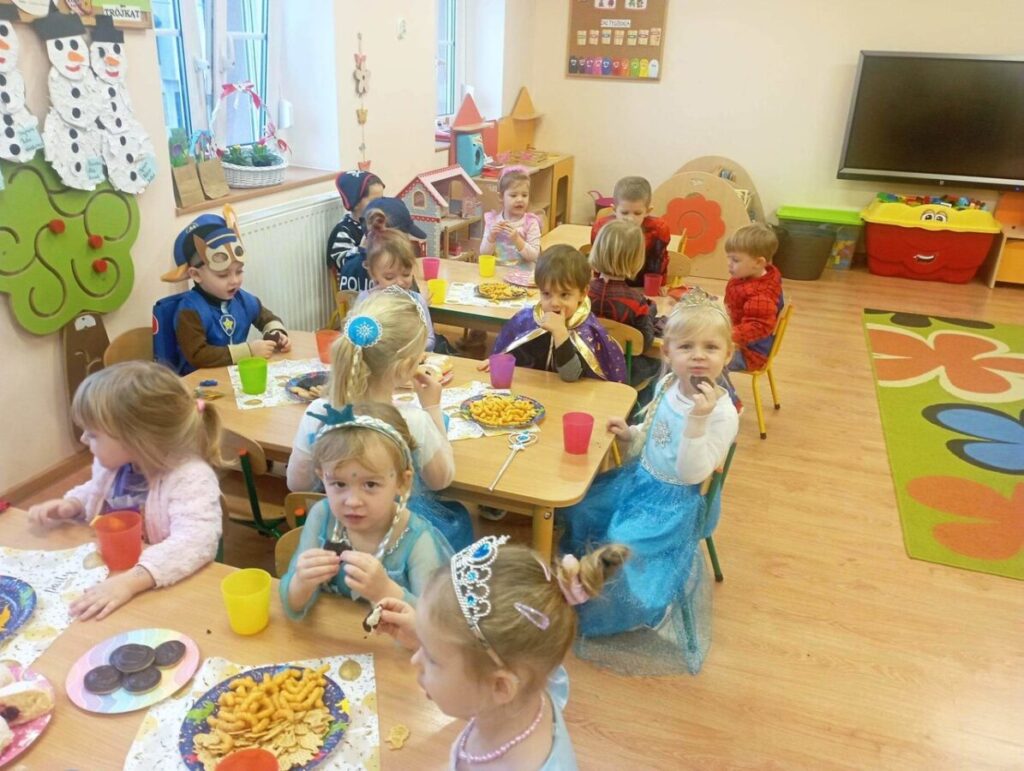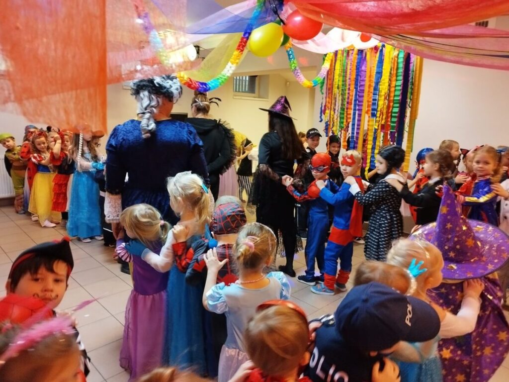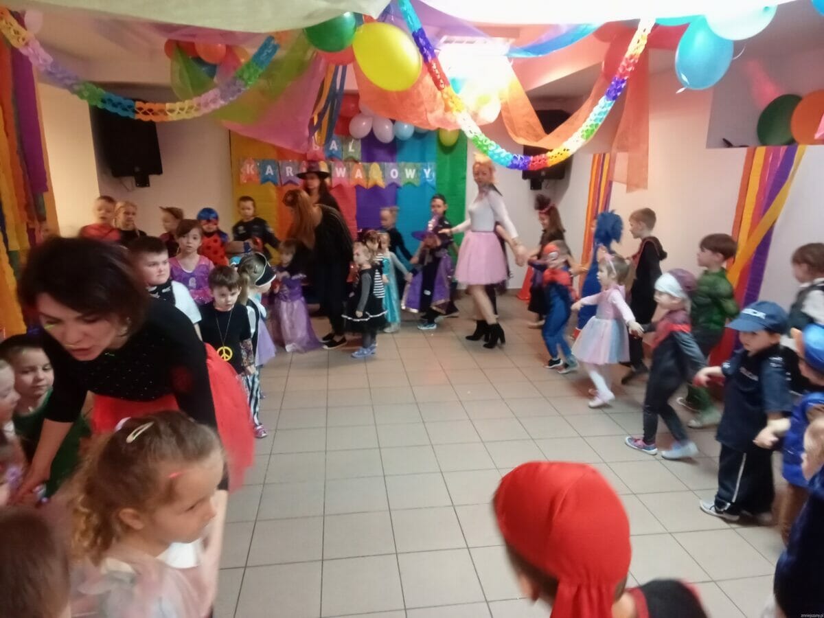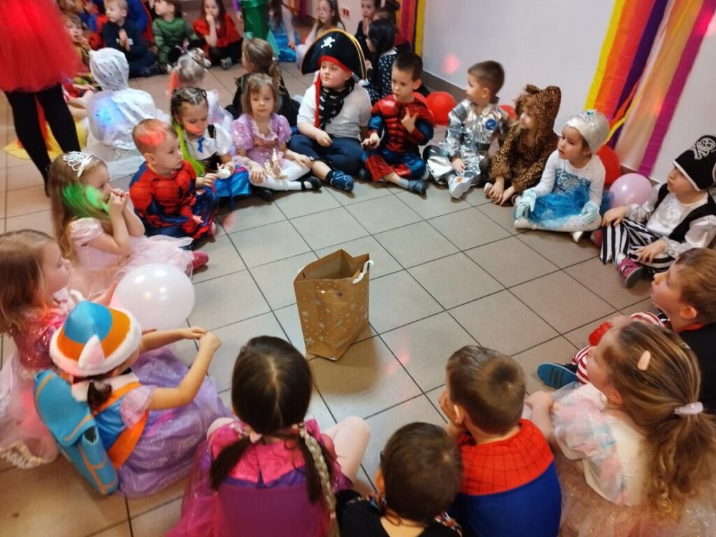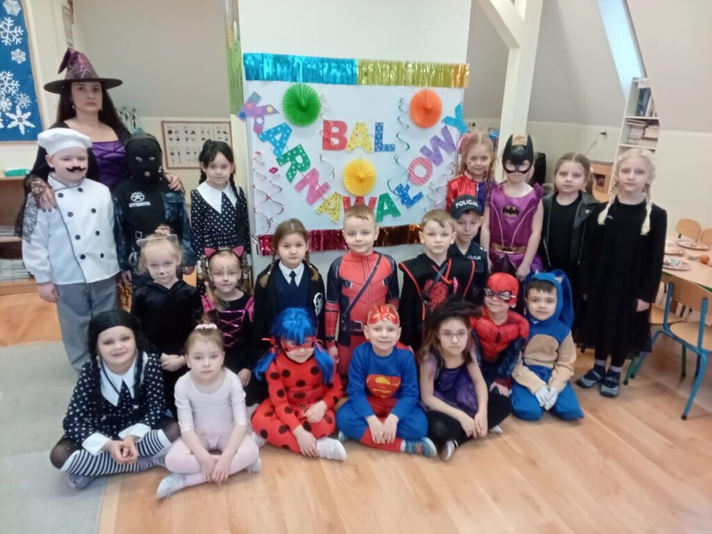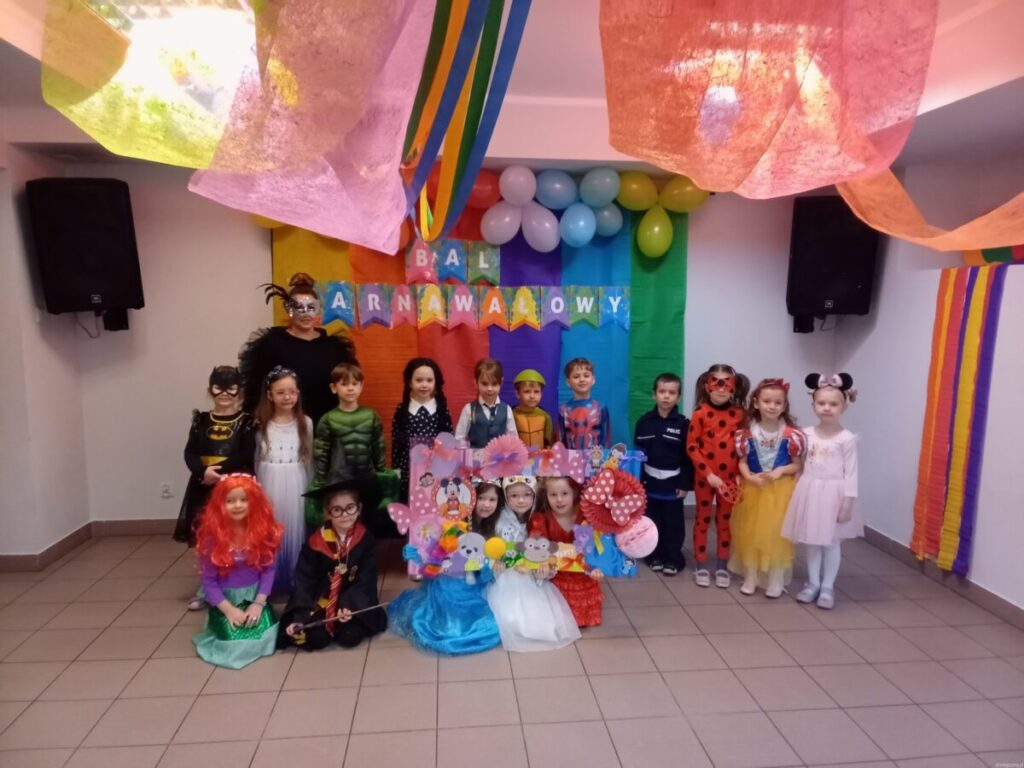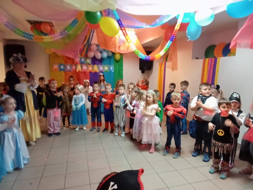 17 lutego 2023 roku w naszym przedszkolu odbył się długo oczekiwany Bal Karnawałowy.Wszystkie dzieci w tym dniu przyszły przebrane w piękne stroje :księżniczki, wróżki, piratów, kucharzy, był również spider- man, żółw ninja oraz Harry Potter i Sonic. Zabawy muzyczno-ruchowe, konkurencję, taniec z balonem oraz przechodzenie pod liną sprawiło wszystkim wiele radości i zabawy.Grupy przedszkolne bawiły się świetnie i z zaangażowaniem, a po hucznej zabawie na wszystkich czekał pyszny poczęstunek.