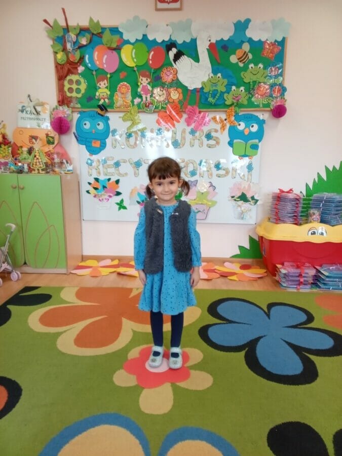 7 marca 2023 roku w grupie ,,pszczółki”odbył się konkurs recytatorski : ,,Z poezją wśród dzieci”.Wszystkie dzieci pięknie zaprezentowały wybrane wiersze prezentując swoje zdolności recytatorskie.Komisja miała bardzo trudne zadanie, ale po długich obradach udało się wyłonić zwycięzców: