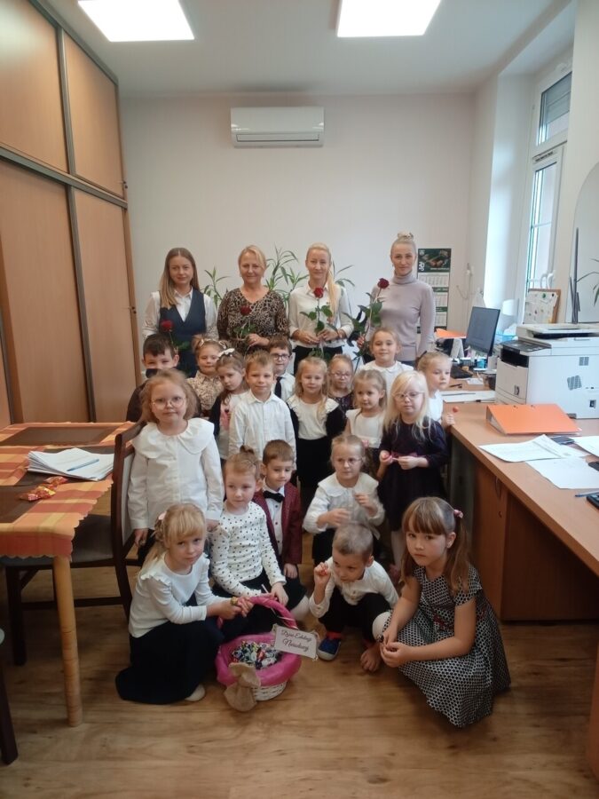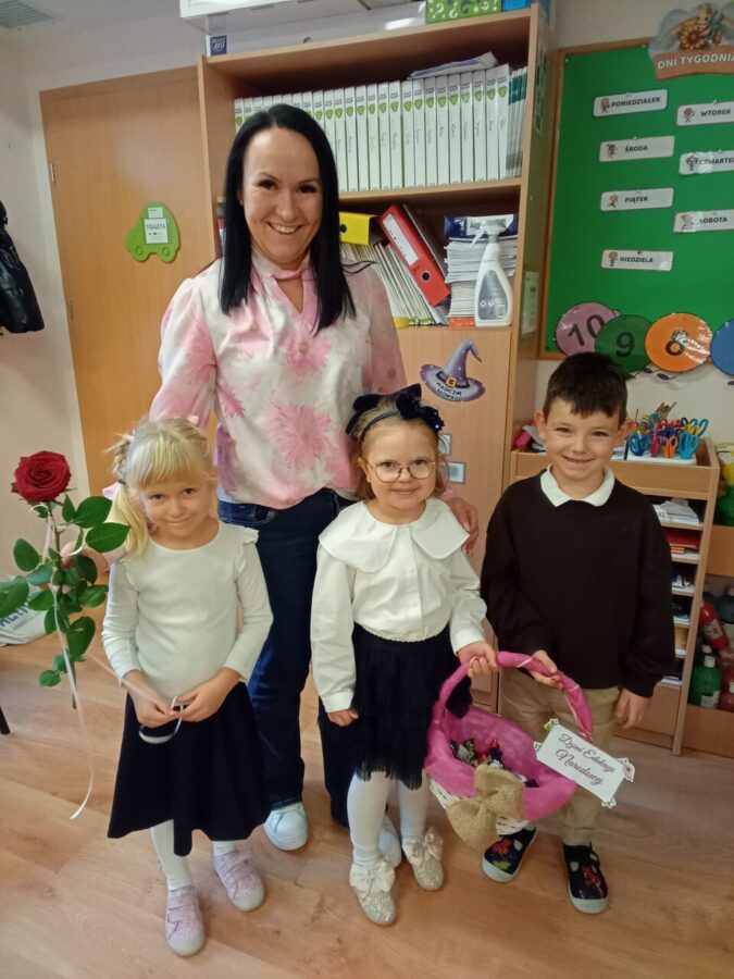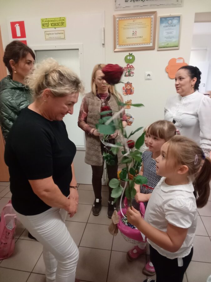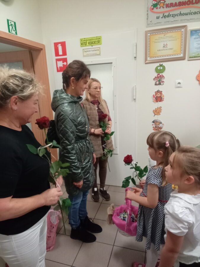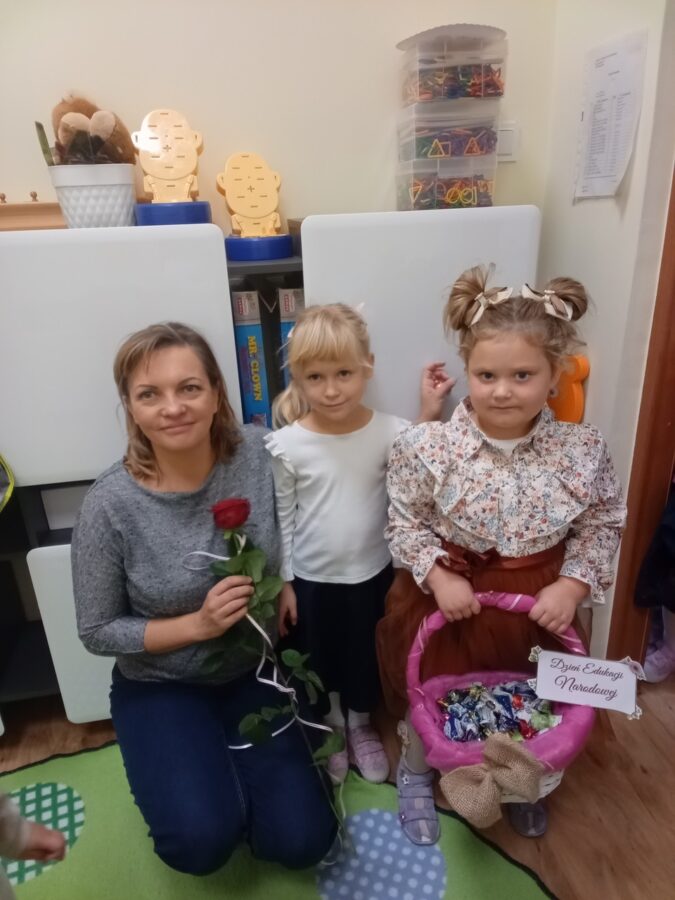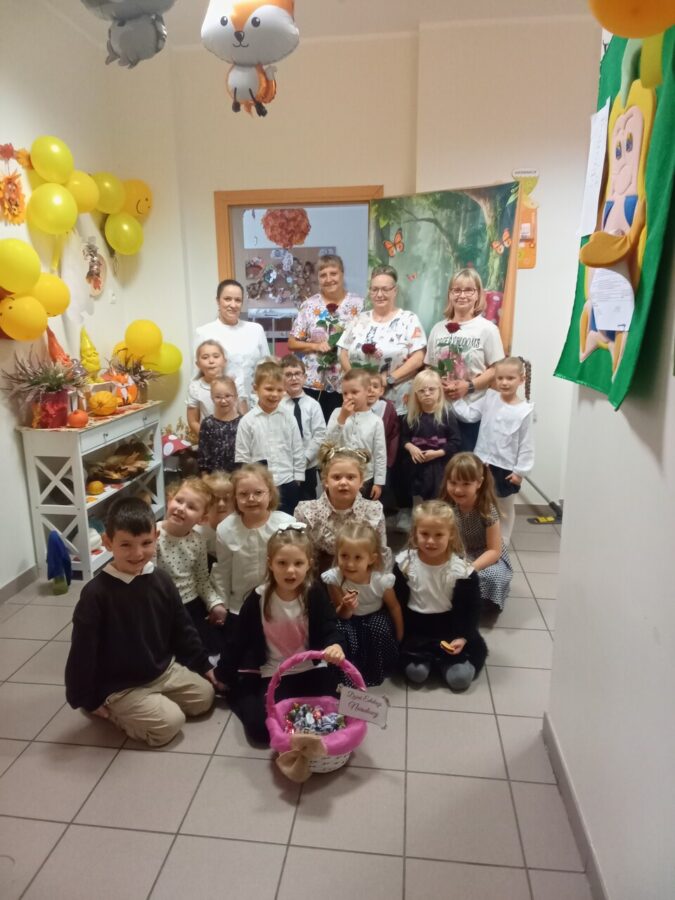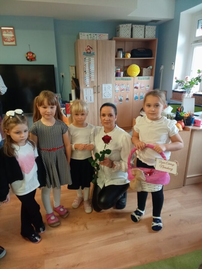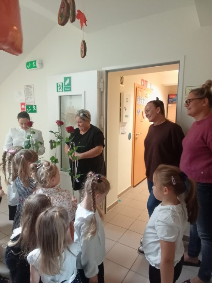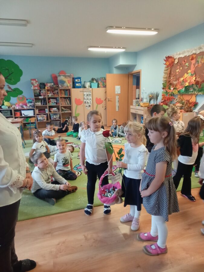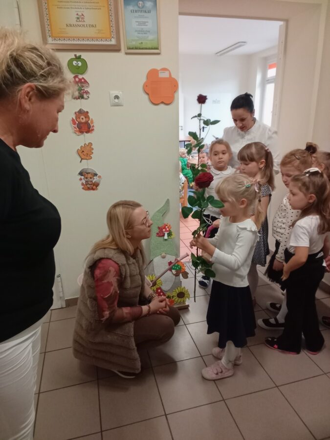 14 października to wyjątkowa data w przedszkolnym  kalendarzu – Dzień Edukacji Narodowej, czyli święto wszystkich nauczycieli, wychowawców i pracowników oświaty.  W naszym przedszkolu był to dzień pełen uśmiechów, wzruszeń i wdzięczności za codzienny trud, cierpliwość oraz serce wkładane w wychowanie i edukację młodego pokolenia. Przedszkolaki z grupy Pszczółki i Słowiki odwiedziły pracowników w salach i gabinetach, gdzie z ogromnym entuzjazmem dziękowali swoim paniom za codzienną opiekę, uśmiech i cierpliwość.  Uroczyste odwiedziny uświetnił pięknie wyrecytowany przez dzieci wiersz i obdarowywanie nauczycieli szczerymi uśmiechami, które najlepiej wyrażały ich wdzięczność.