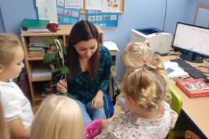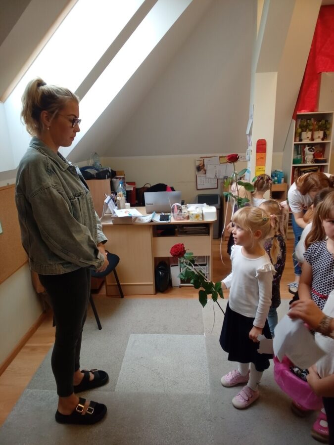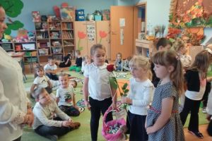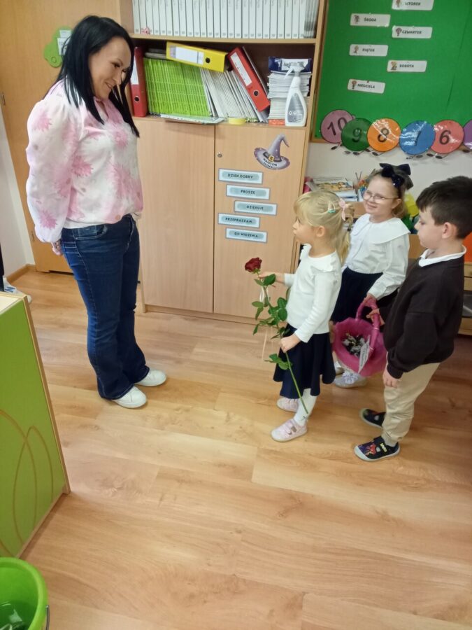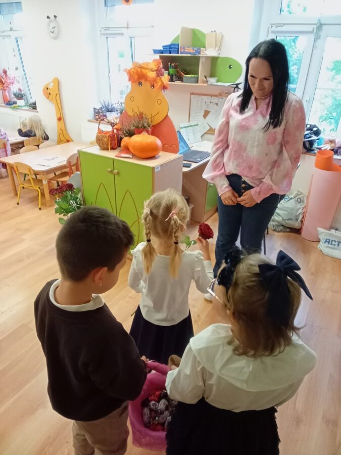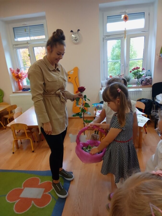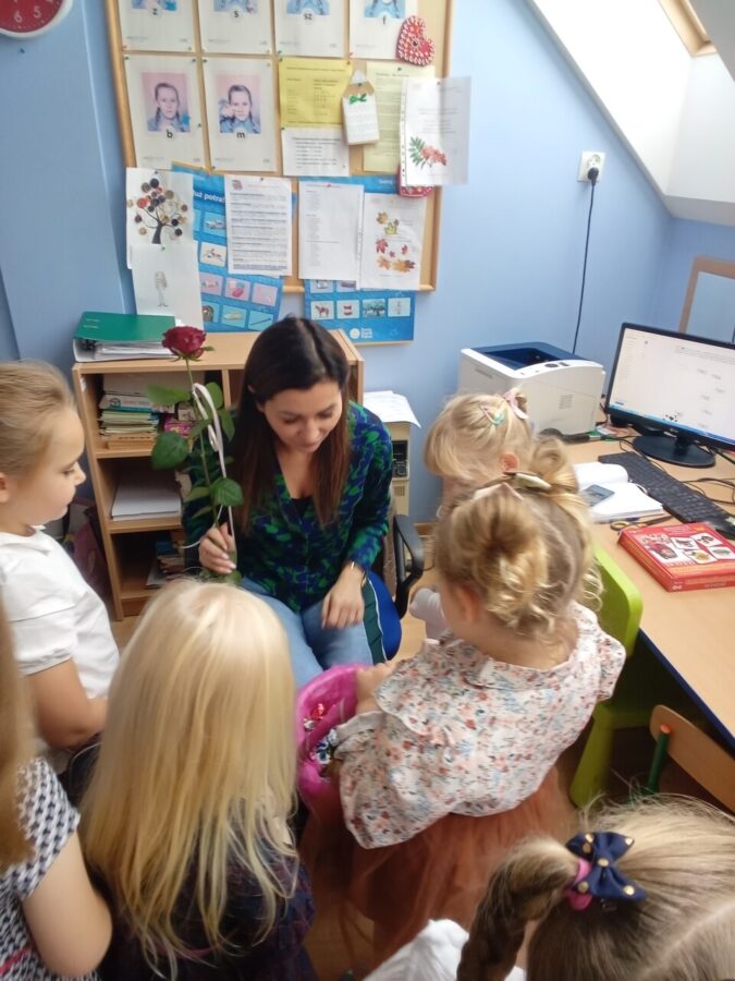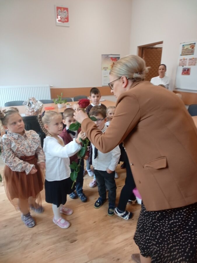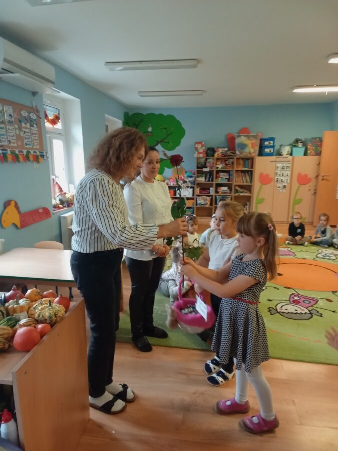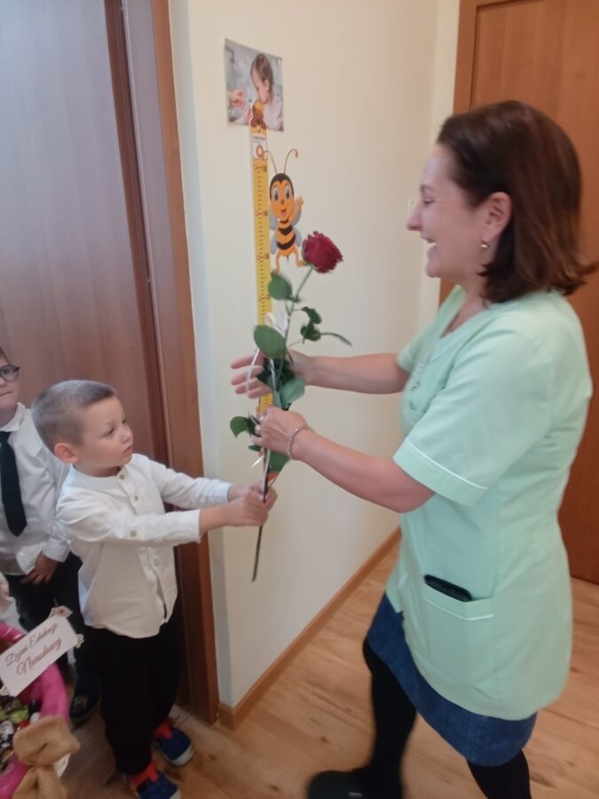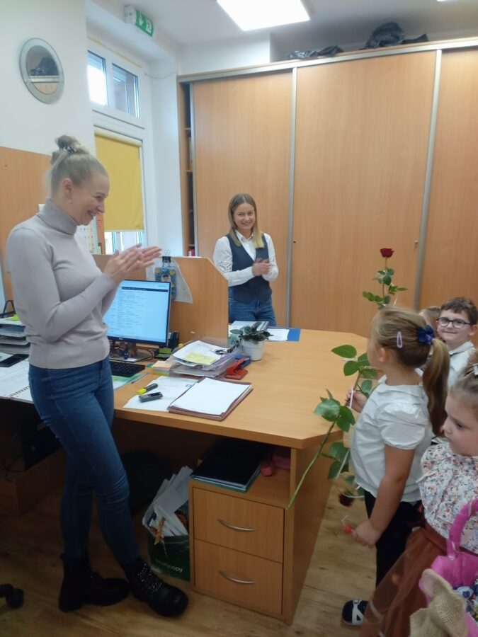 14 października to wyjątkowa data w przedszkolnym  kalendarzu – Dzień Edukacji Narodowej, czyli święto wszystkich nauczycieli, wychowawców i pracowników oświaty.  W naszym przedszkolu był to dzień pełen uśmiechów, wzruszeń i wdzięczności za codzienny trud, cierpliwość oraz serce wkładane w wychowanie i edukację młodego pokolenia. Przedszkolaki z grupy Pszczółki i Słowiki odwiedziły pracowników w salach i gabinetach, gdzie z ogromnym entuzjazmem dziękowali swoim paniom za codzienną opiekę, uśmiech i cierpliwość.  Uroczyste odwiedziny uświetnił pięknie wyrecytowany przez dzieci wiersz i obdarowywanie nauczycieli szczerymi uśmiechami, które najlepiej wyrażały ich wdzięczność.