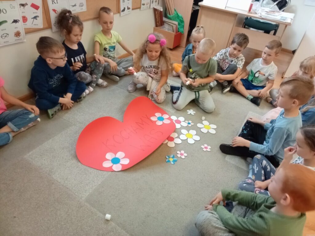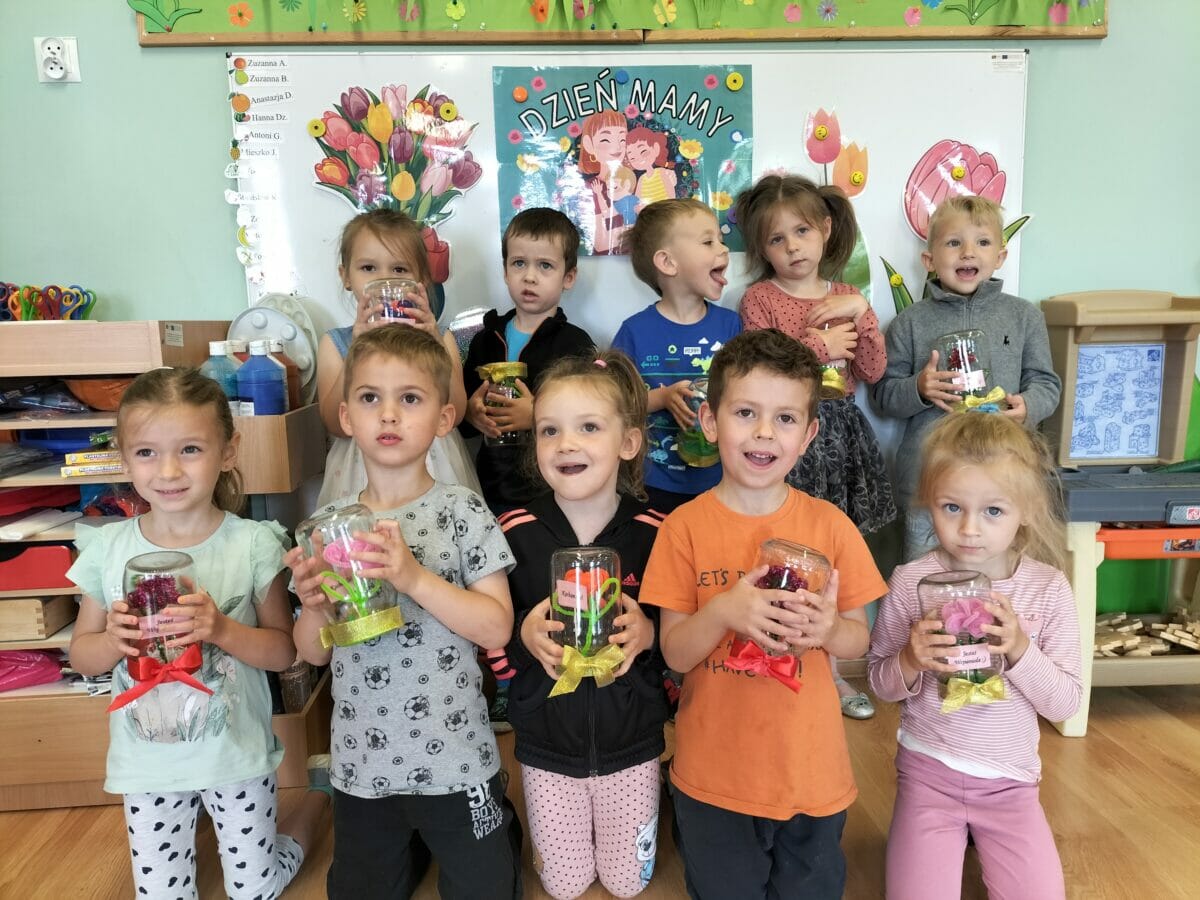 Krasnoludki świętują Dzień Mamy. Moja mama wszystko wie,Moja mama kocha mnie.W dniu Jej święta-Święta Mamy, dam Jej bukiet z kwiatuszkami.