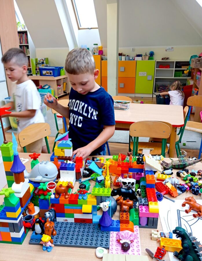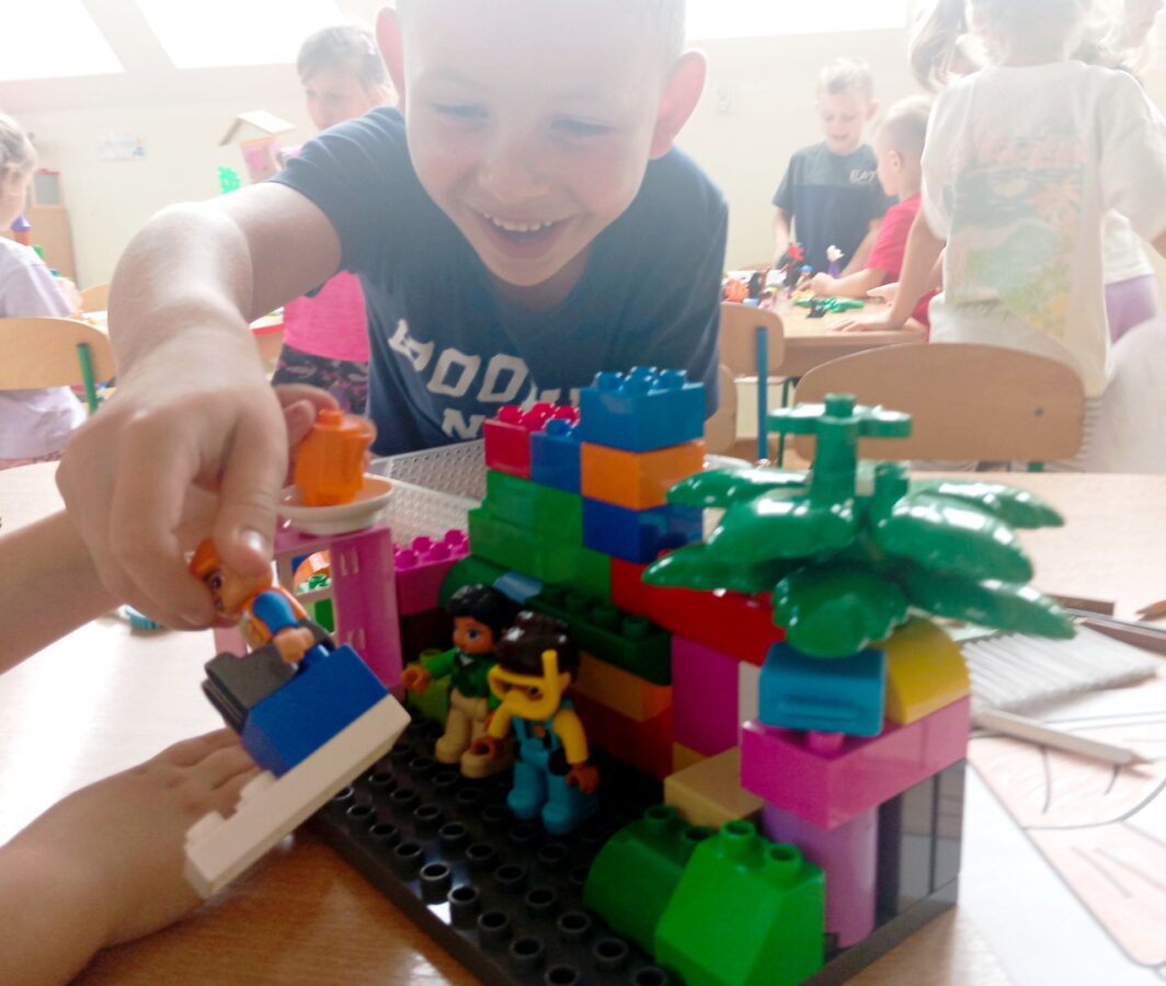 We wrześniu i na początku października w grupie Słowiki odbyły się zajęcia, na których dzieci kontynuowały edukacyjną przygodę z LEGO Education. Tematy zajęć: „Sztuki sceniczne”, „Rozwidlający się tor”, „Po co jest zegar”, „Ale to ciężkie”, „Dwanaście miesięcy”, „Spotkanie podsumowujące zdobytą wiedzę i umiejętności”. Podczas wszystkich spotkań każdy mógł odkryć swoje możliwości i indywidualne sposoby realizacji swoich pomysłów. W atmosferze współpracy powstały ciekawe budowle i projekty. Dziękujemy LEGO za wspaniałą przygodę!