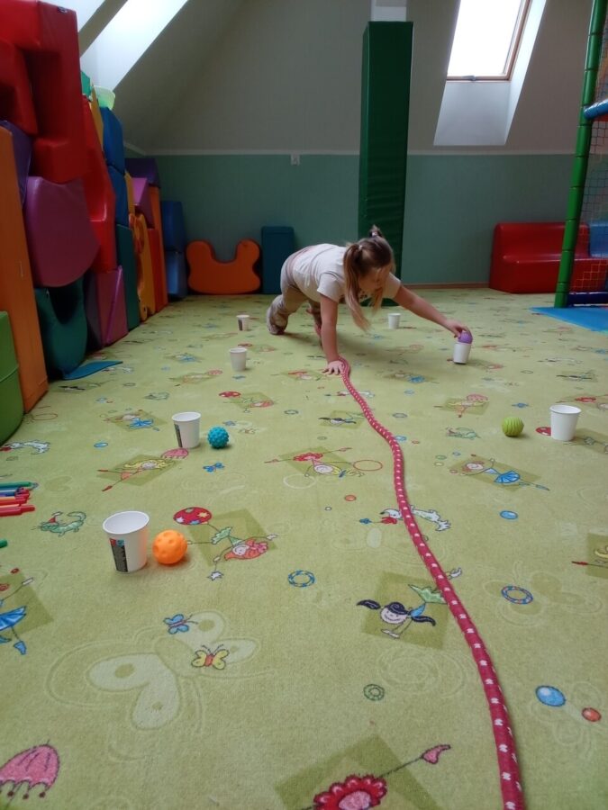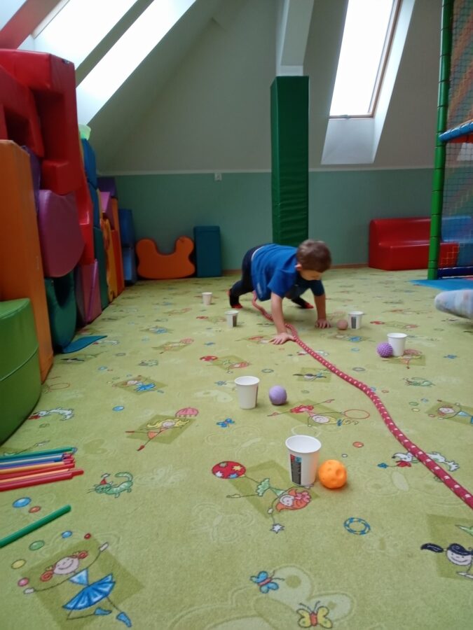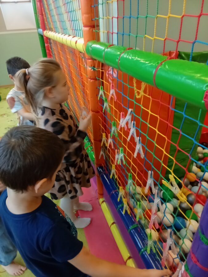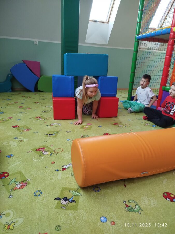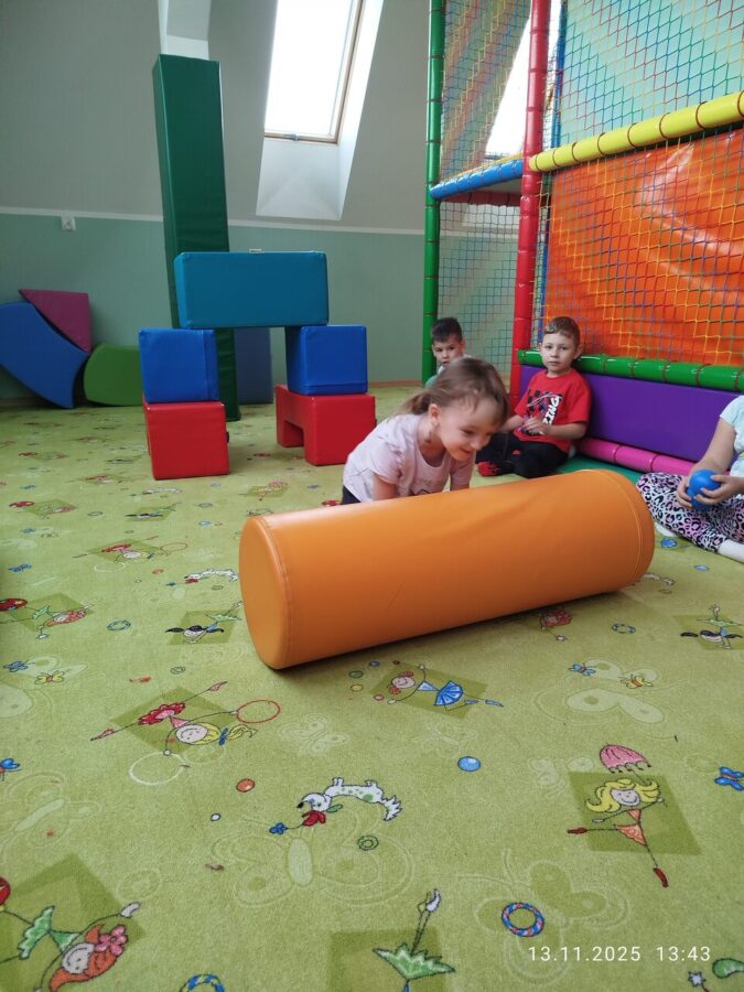 W listopadzie Jeżyki zrealizowały kolejne bloki tematyczne w ramach zajęć z elementami integracji sensorycznej.Stymulowały zmysł dotyku poprzez kontakt z różnymi fakturami związanymi z naturą.Aktywnie uczestniczyły w zabawach z elementami pełzania, czworaków oraz skoku.
