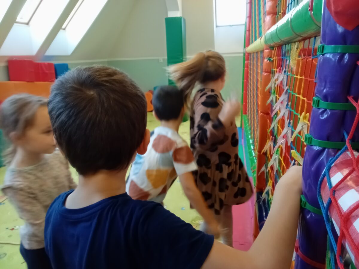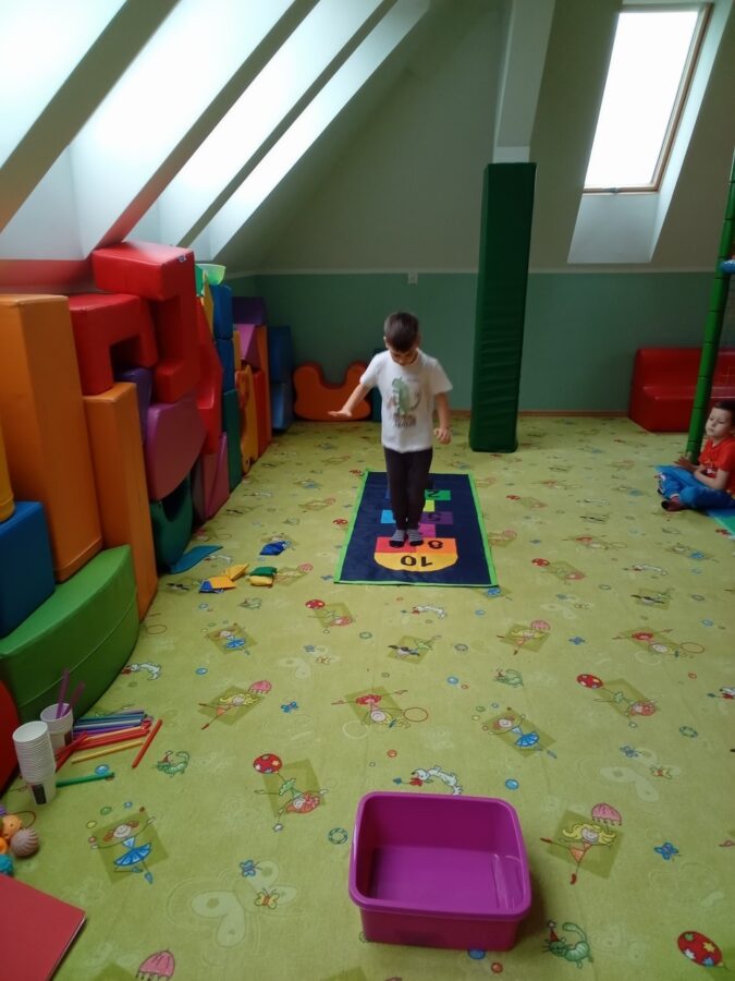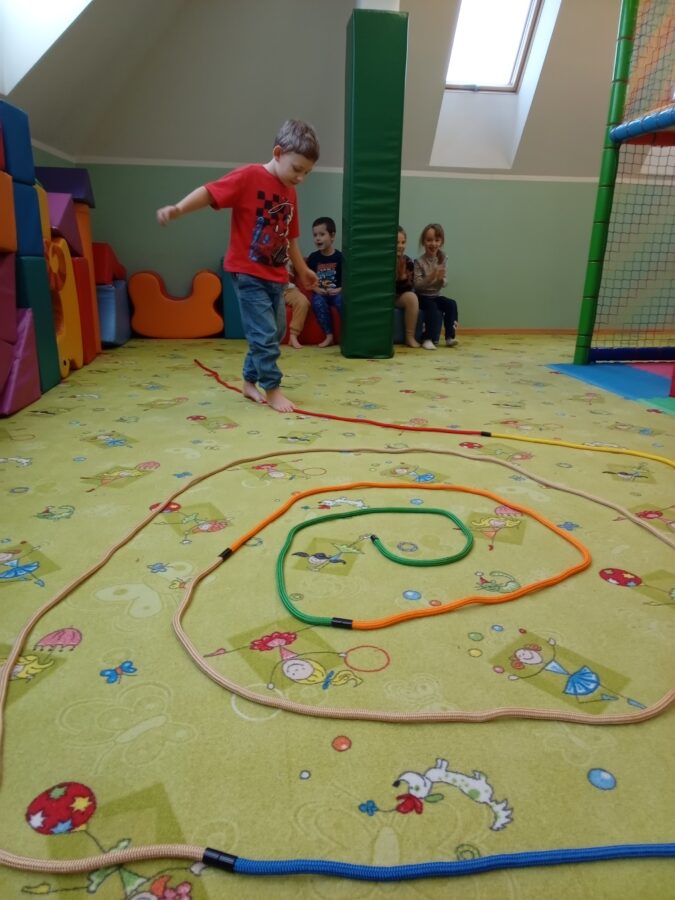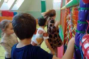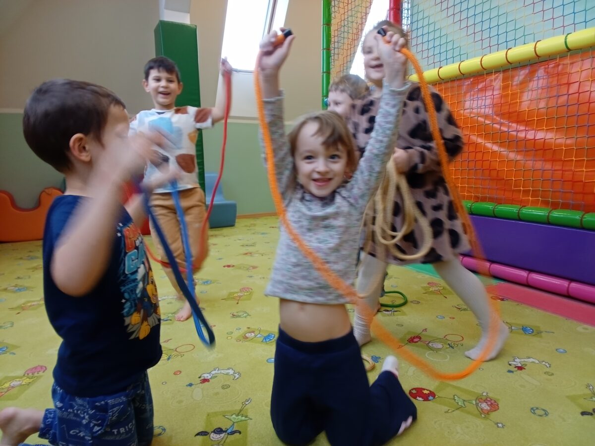 W listopadzie Jeżyki zrealizowały kolejne bloki tematyczne w ramach zajęć z elementami integracji sensorycznej.Stymulowały zmysł dotyku poprzez kontakt z różnymi fakturami związanymi z naturą.Aktywnie uczestniczyły w zabawach z elementami pełzania, czworaków oraz skoku.