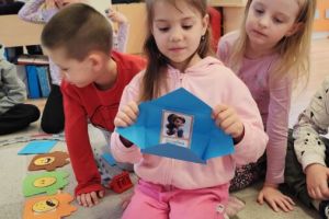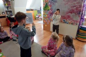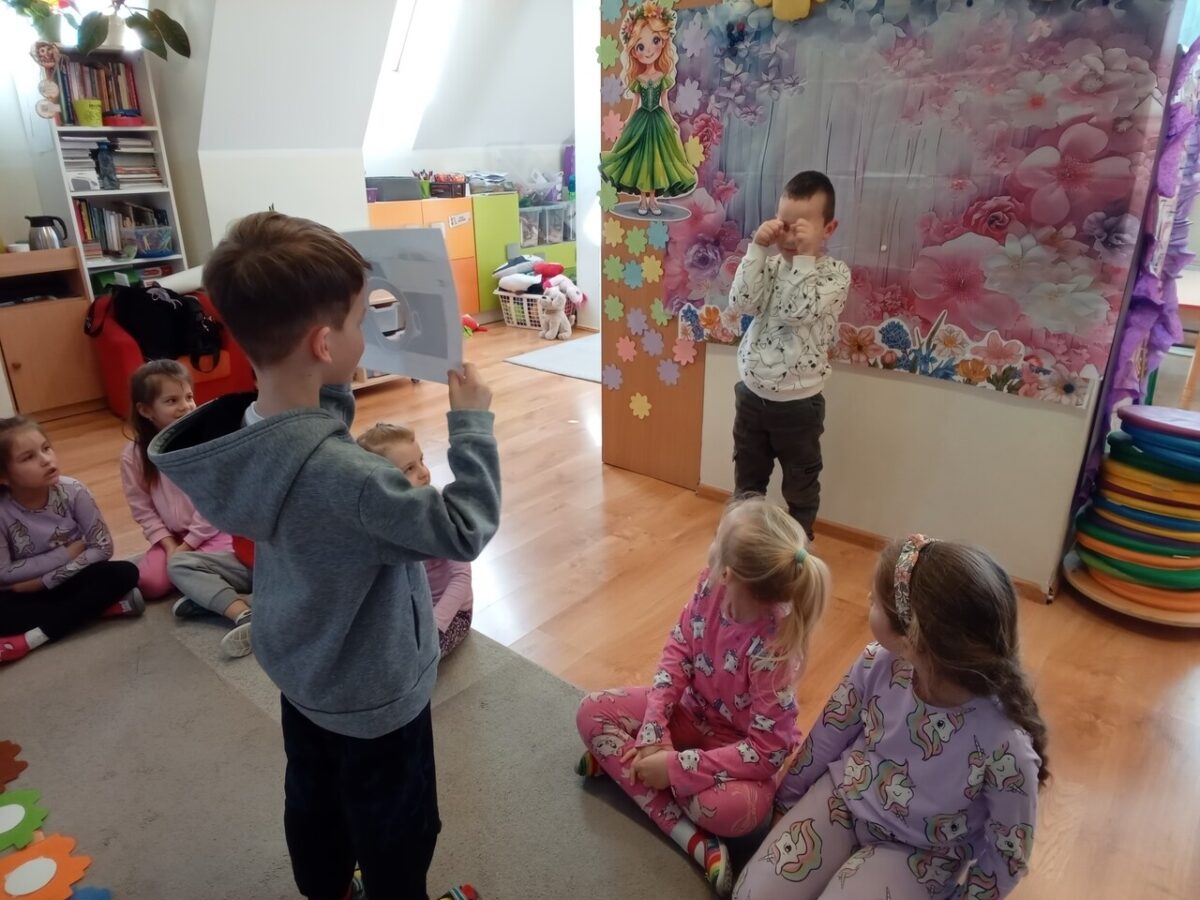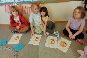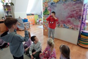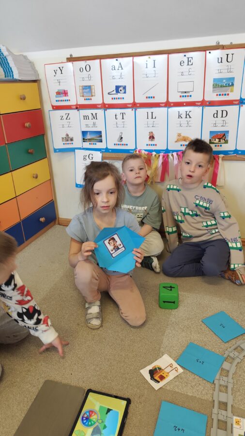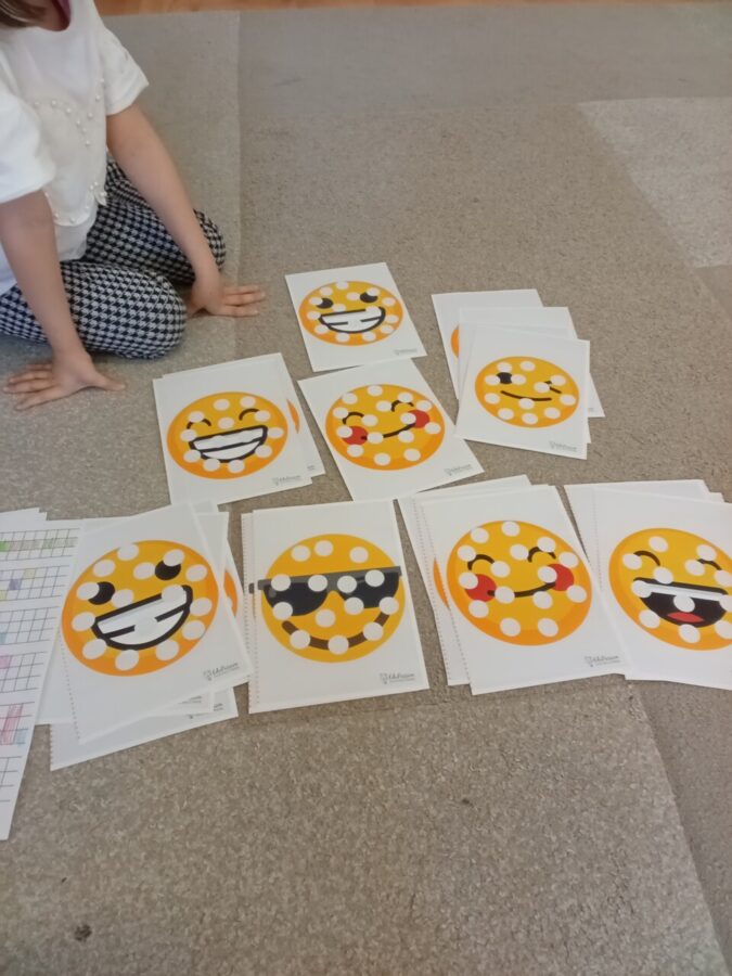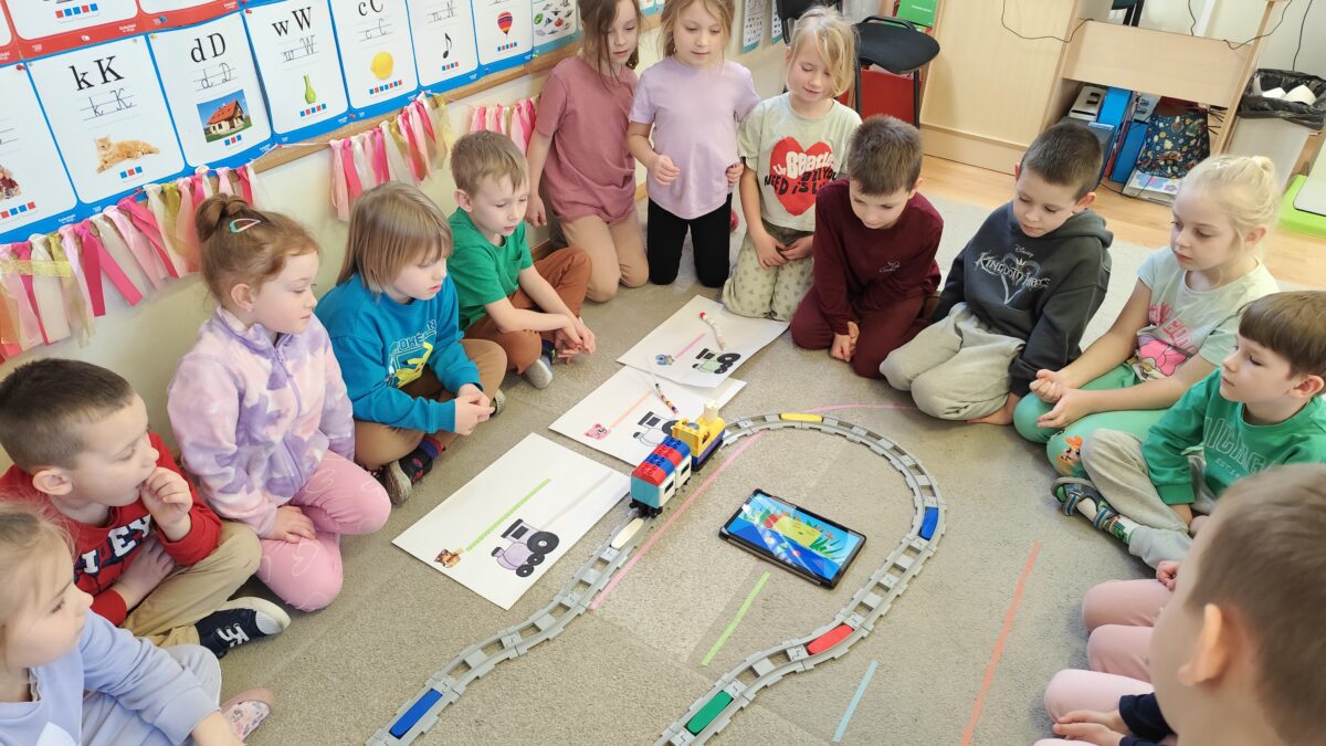 -Emocje- gąsienica. Dzieci odróżniały emocje, próbowały je zrozumieć, korzystając z aplikacji wprawiały w ruch gąsienice oraz zmieniały działanie płytek funkcyjnych.