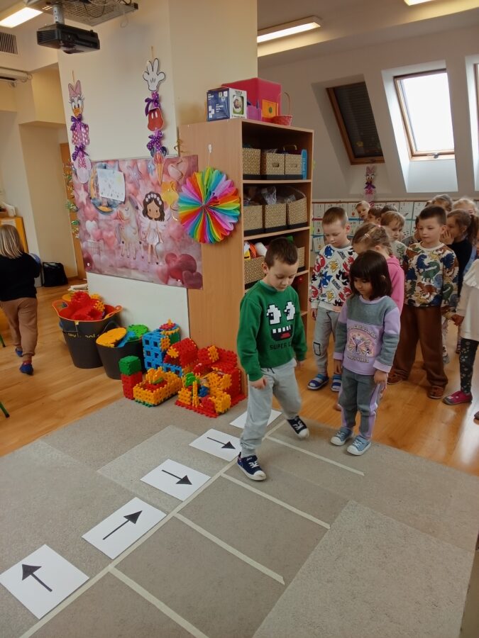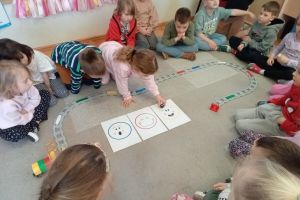 -Matematyka – odległość. Dzieci nabyły umiejętności mierzenia odległości , porównywały ze sobą różne odległości, wykonywały proste obliczenia.
