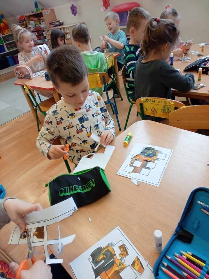 -Specjalne elementy maszyn. Dzieci nabyły umiejętności używania wyobraźni przestrzennej do zrozumienia przedmiotów i poruszania nimi. Obserwowały i opisywały specjalne części maszyn i funkcje, budowały modele zawierające specjalną część.
