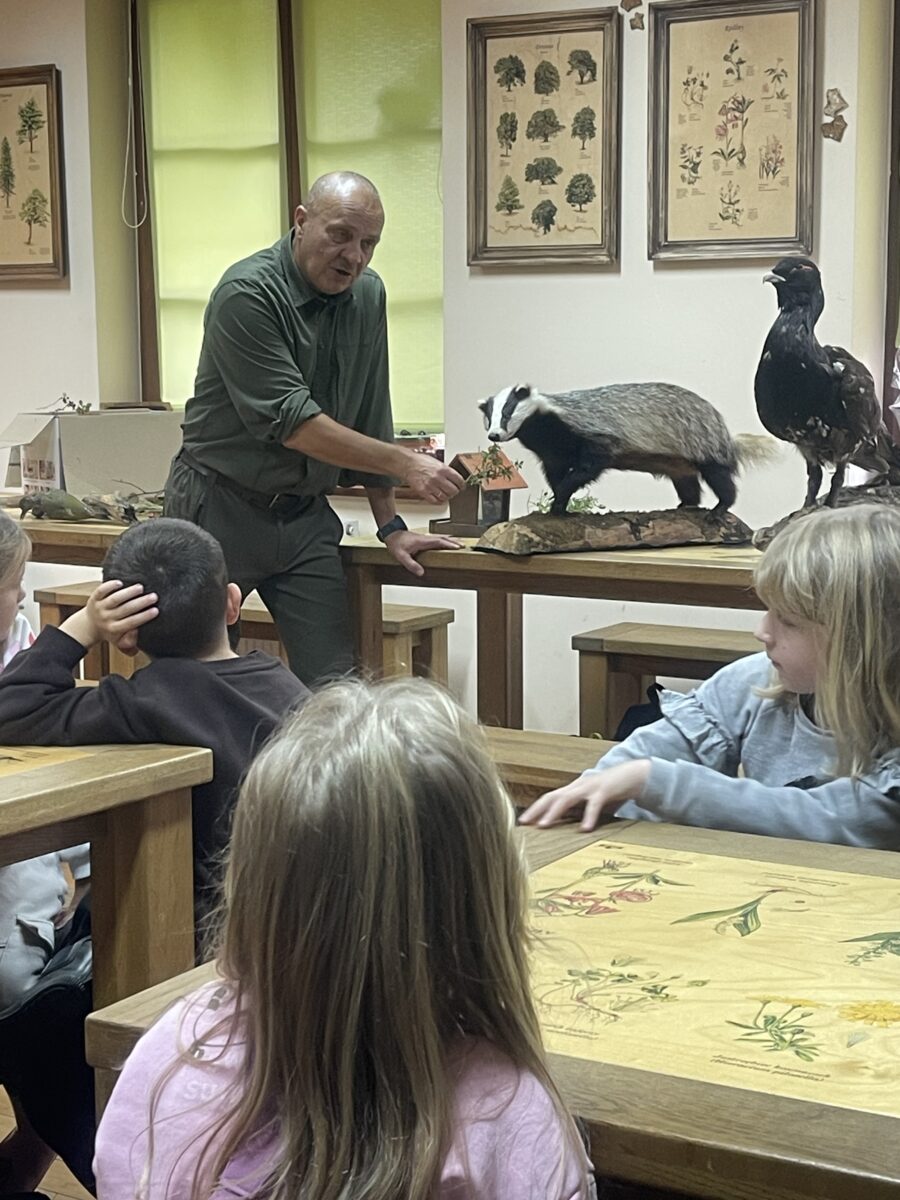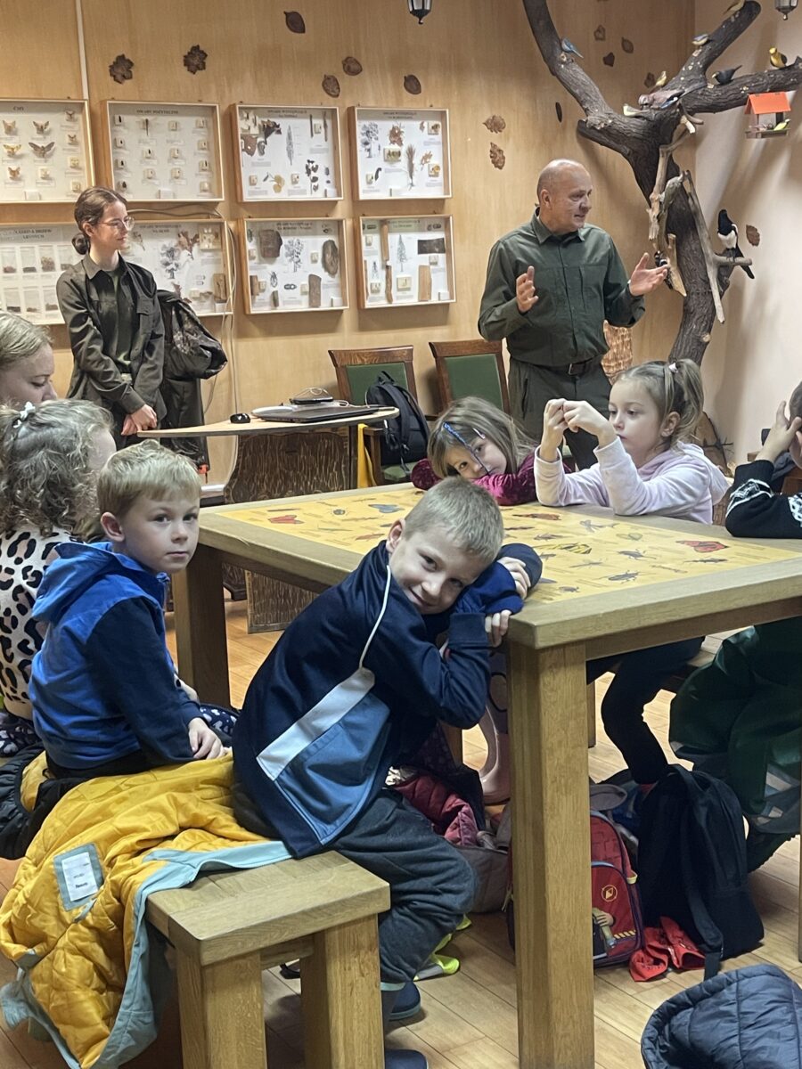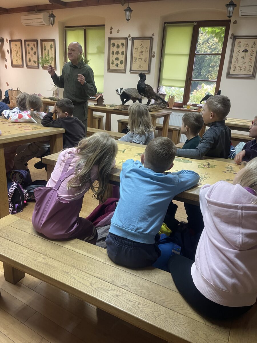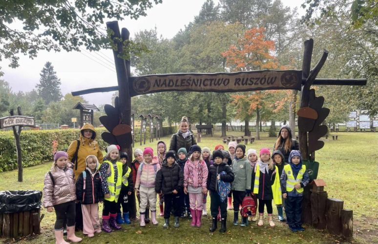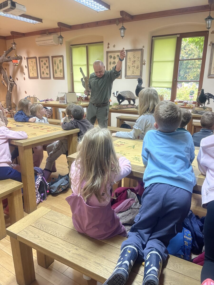 Dnia 8 października 2025, wybraliśmy się na wycieczkę do pobliskiego Nadleśnictwa Ruszów. Na miejscu przywitał nas pracownik nadleśnictwa, który opowiedział nam o pracy leśników oraz o tym, jak ważna jest ochrona przyrody.