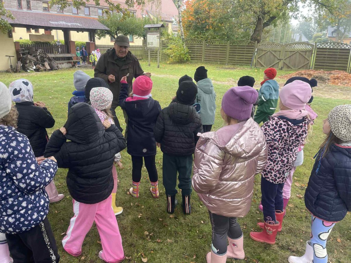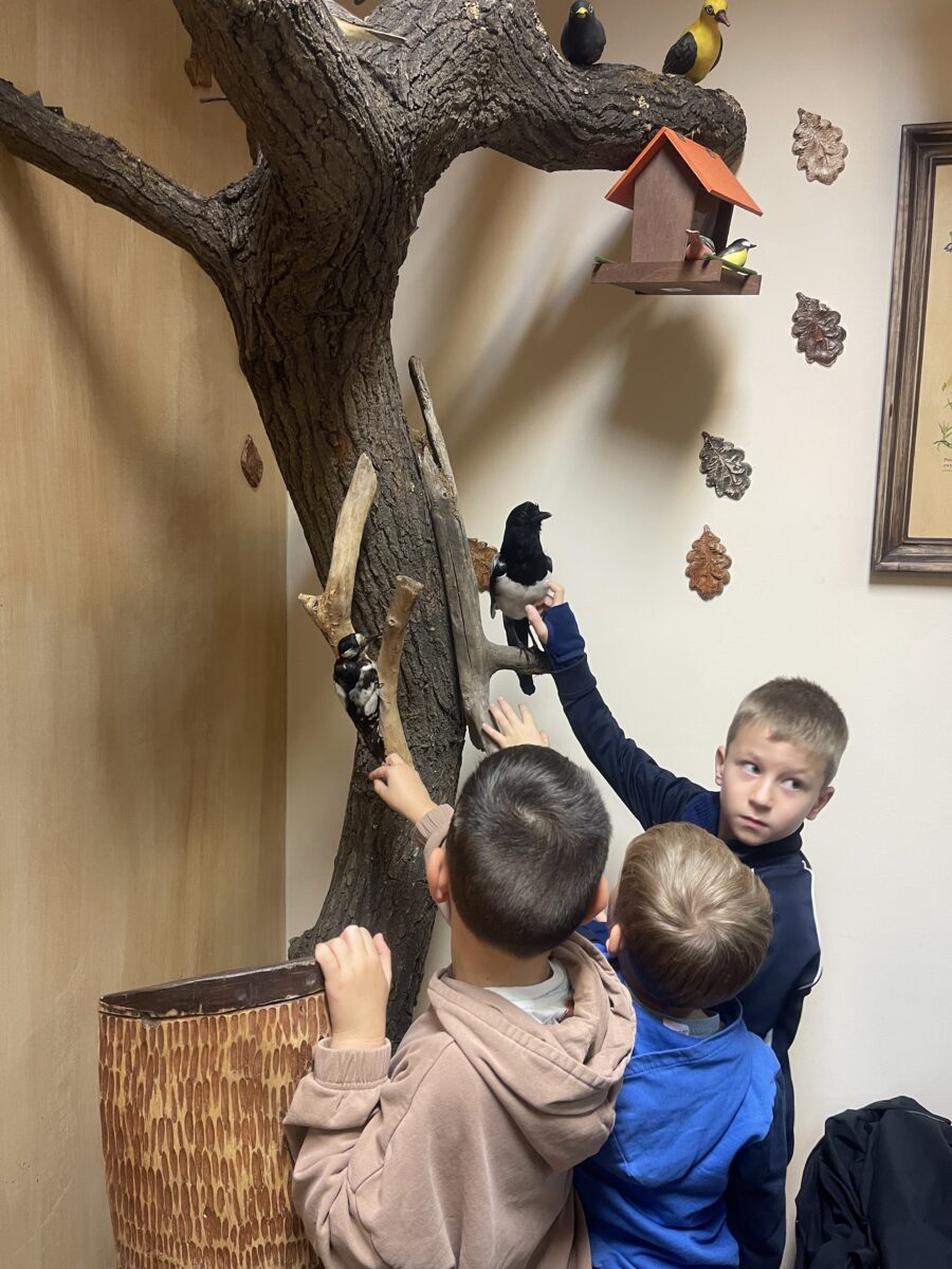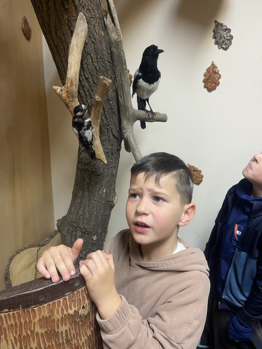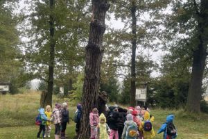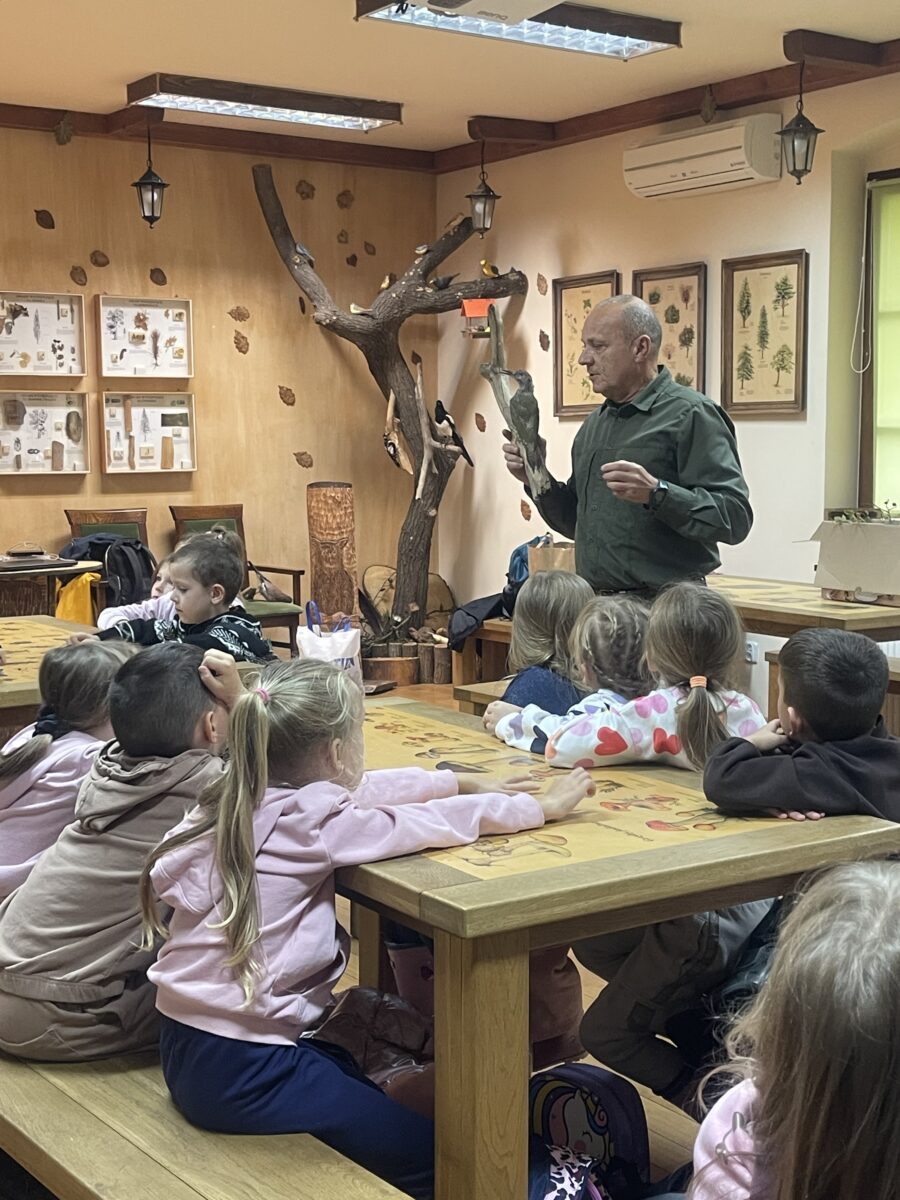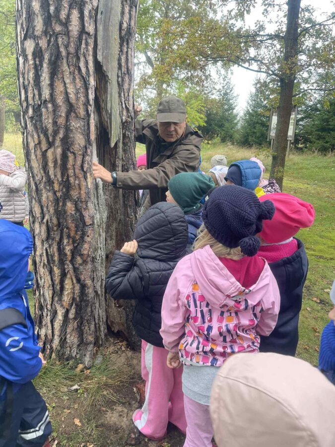 Dnia 8 października 2025, wybraliśmy się na wycieczkę do pobliskiego Nadleśnictwa Ruszów. Na miejscu przywitał nas pracownik nadleśnictwa, który opowiedział nam o pracy leśników oraz o tym, jak ważna jest ochrona przyrody.