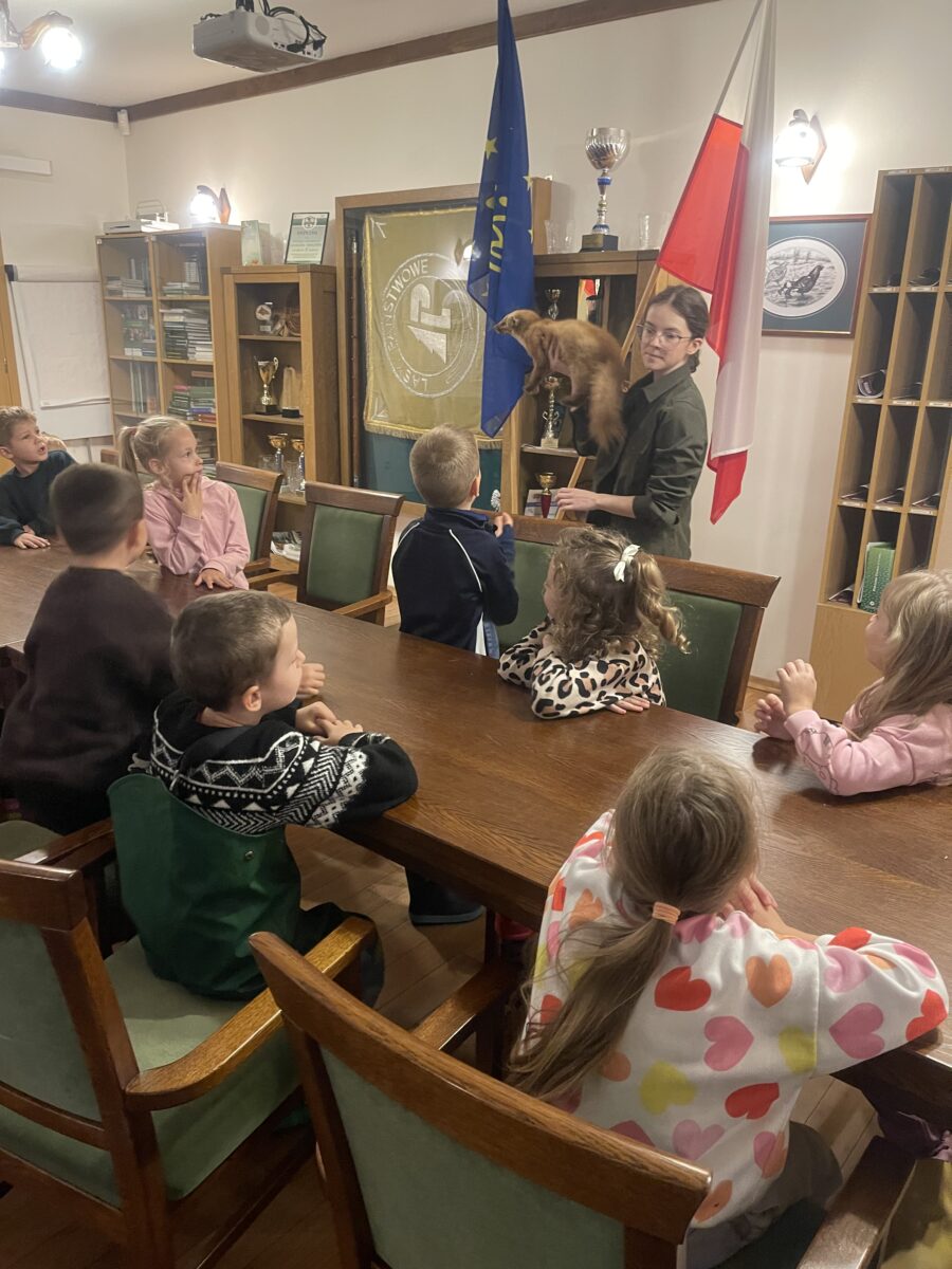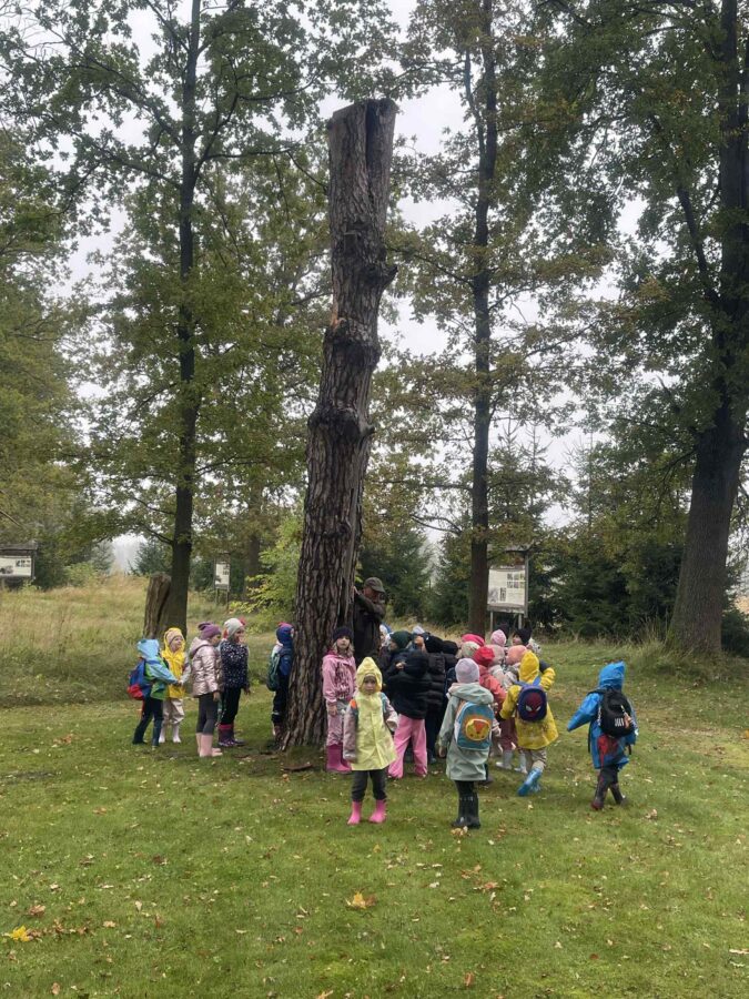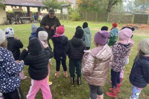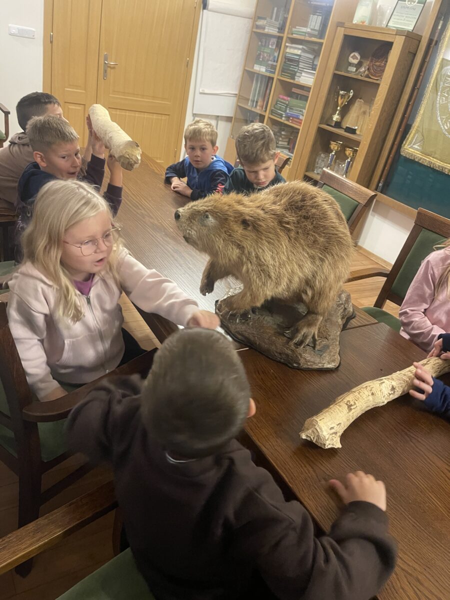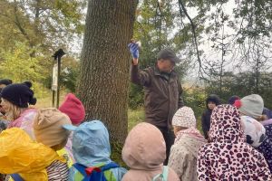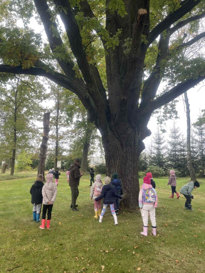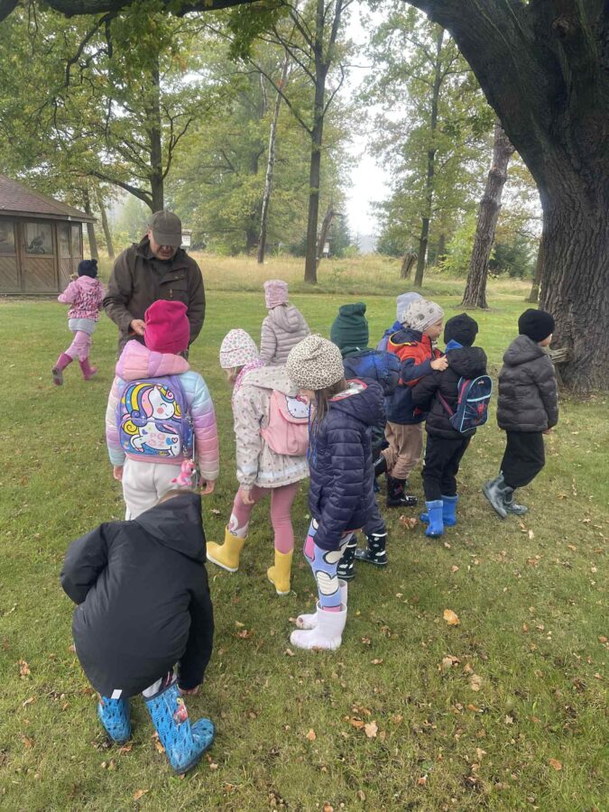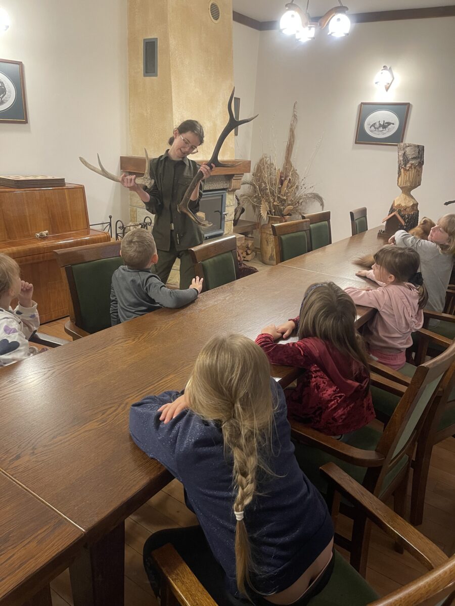Dnia 8 października 2025, wybraliśmy się na wycieczkę do pobliskiego Nadleśnictwa Ruszów. Na miejscu przywitał nas pracownik nadleśnictwa, który opowiedział nam o pracy leśników oraz o tym, jak ważna jest ochrona przyrody.