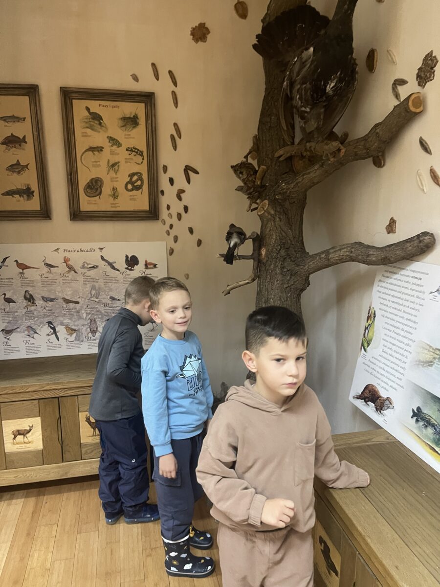 Podczas wycieczki mieliśmy okazję obejrzeć ciekawe eksponaty zwierząt, które występują w naszych lasach. Były to między innymi: cietrzew, głuszec,borsuk, szop, lis, kuna, jenot. Eksponaty były realistyczne i pozwalały nam lepiej poznać wygląd i zwyczaje tych zwierząt.
