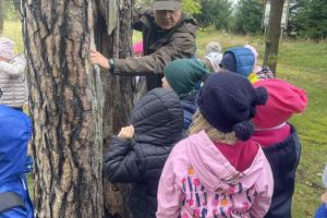Następnie udaliśmy się na spacer po ogrodzie nadleśnictwa, gdzie mogliśmy zobaczyć wiele ciekawych gatunków drzew i roślin. Przewodnik opowiadał o tym, jak rozpoznawać poszczególne gatunki oraz dlaczego różnorodność przyrodnicza jest tak ważna dla środowiska.