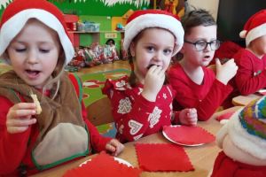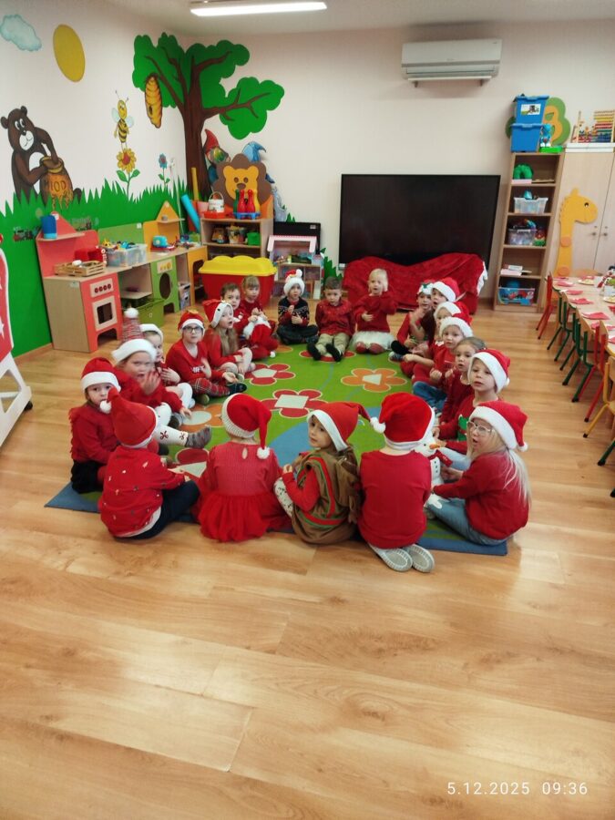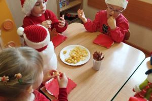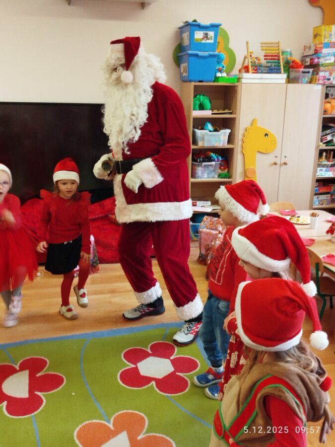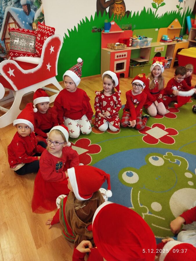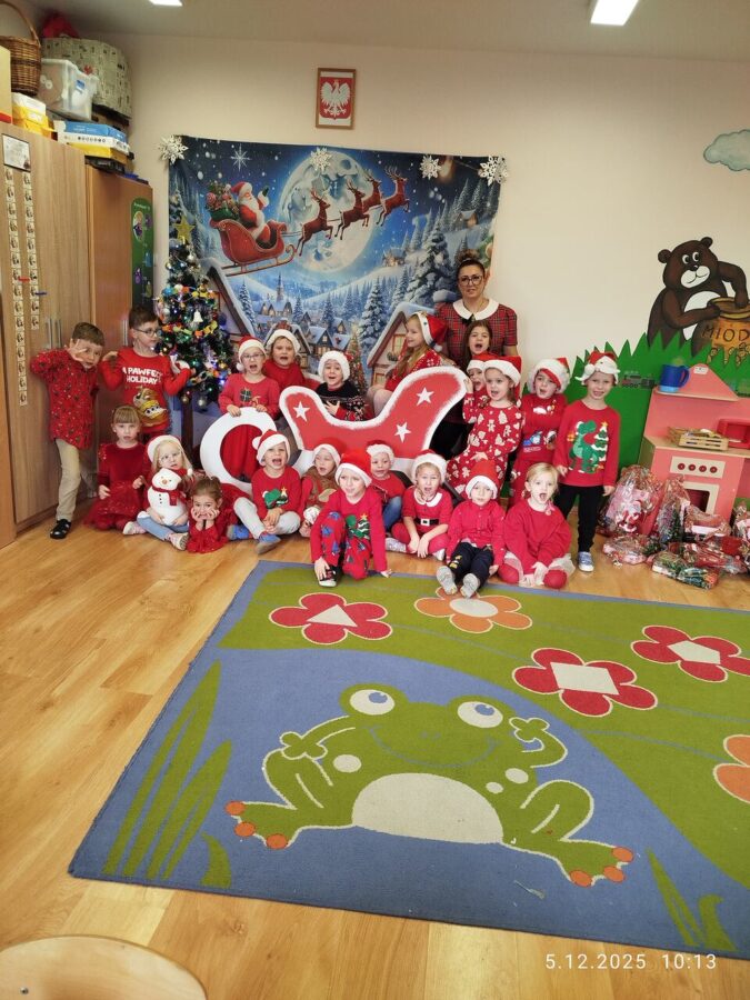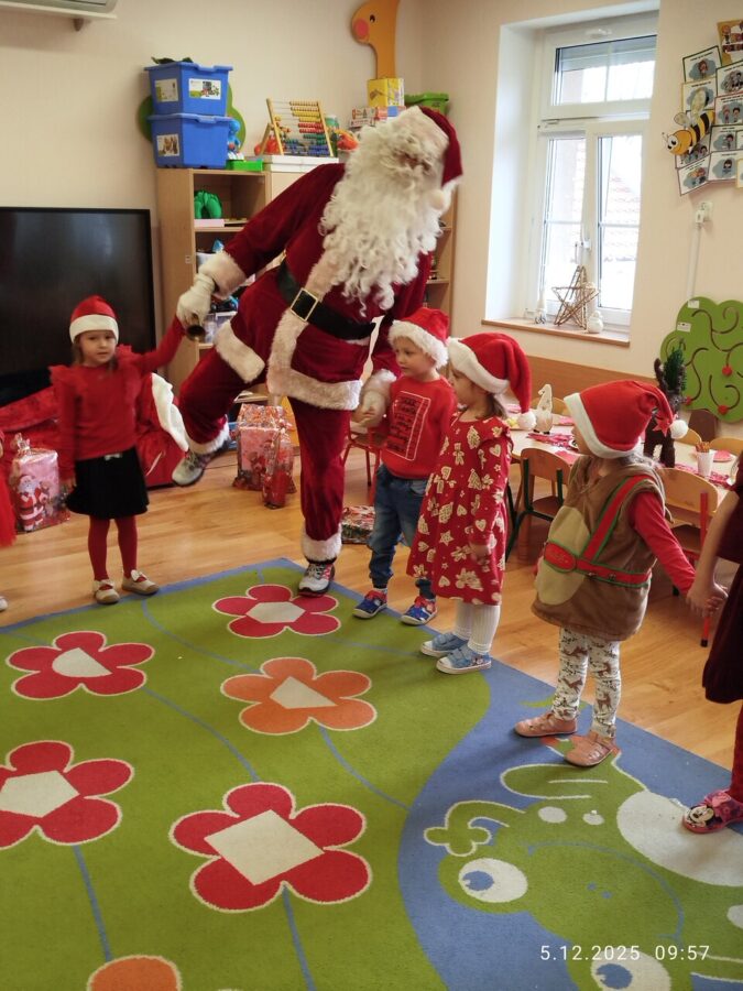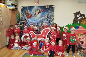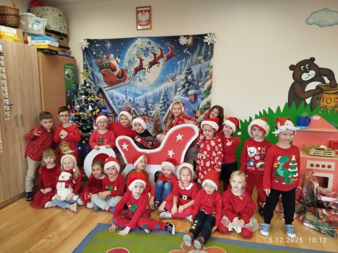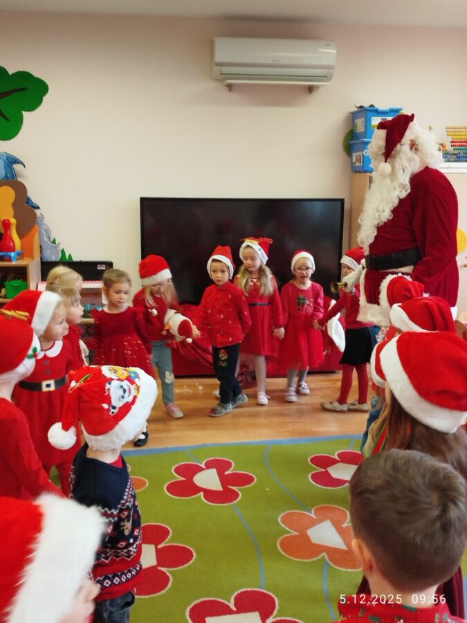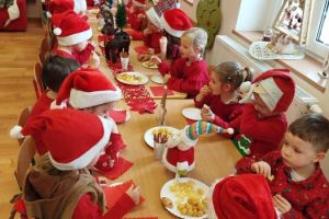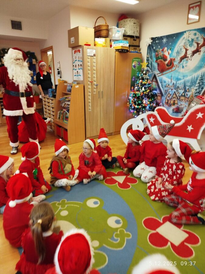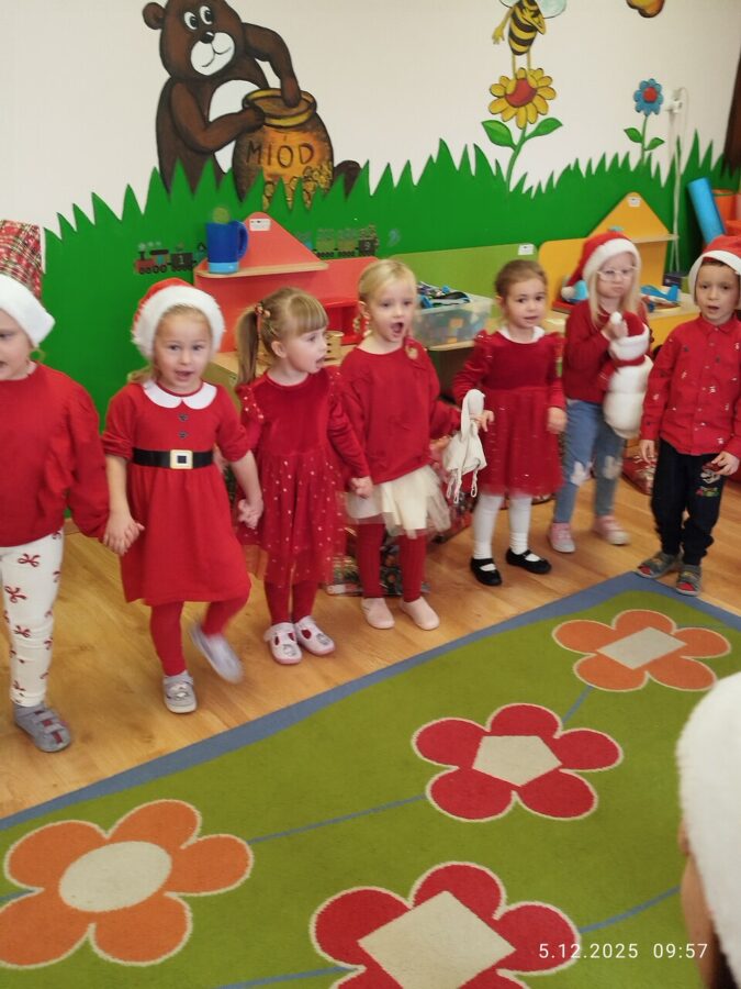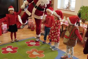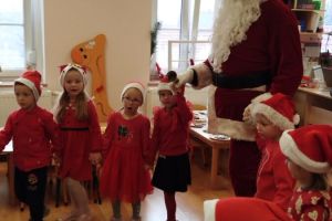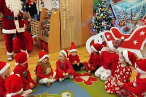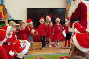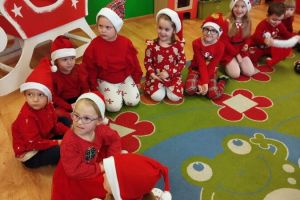 Zgodnie z tradycją w naszym przedszkolu uroczyście obchodziliśmy mikołajkowe święto. W tym dniu nasze przedszkolaki zamieniły się w pomocników Mikołaja i przyszły do przedszkola w czerwonych strojach i czapeczkach. Już od rana zastanawiały się czy Mikołaj odwiedzi ich salę i czy przyniesie prezenty. Po przyjściu Mikołaja dzieci przywitały się z niezwykłym gościem i zaprezentowały piosenki przygotowane specjalnie dla Niego. Mikołaj dostał rowniez przygotowane przez dzieci pierniczki. Zaproszony gośc był zachwycony i rozdał wszystkim dzieciom prezenty.