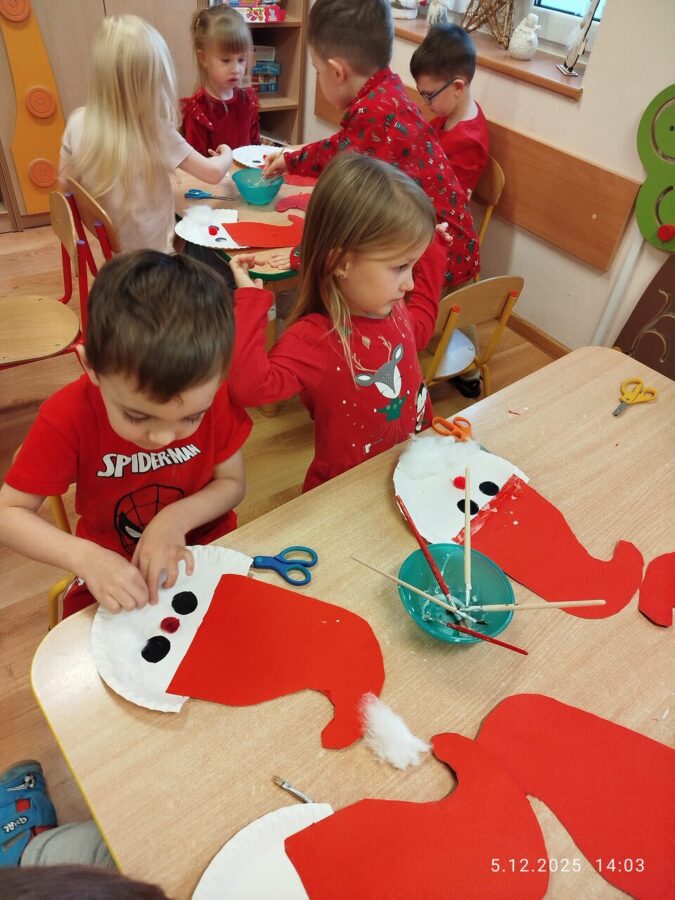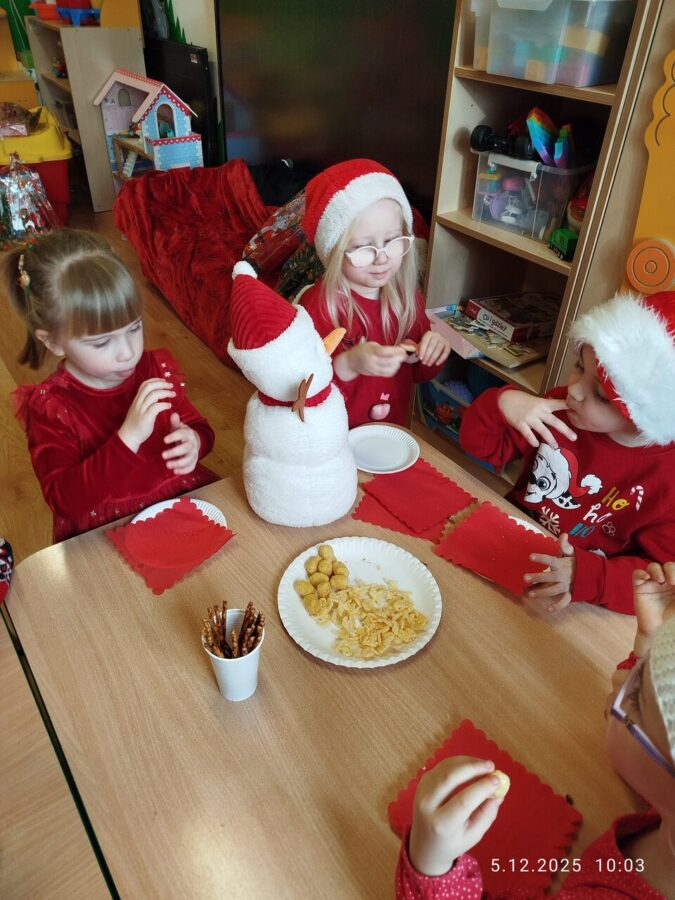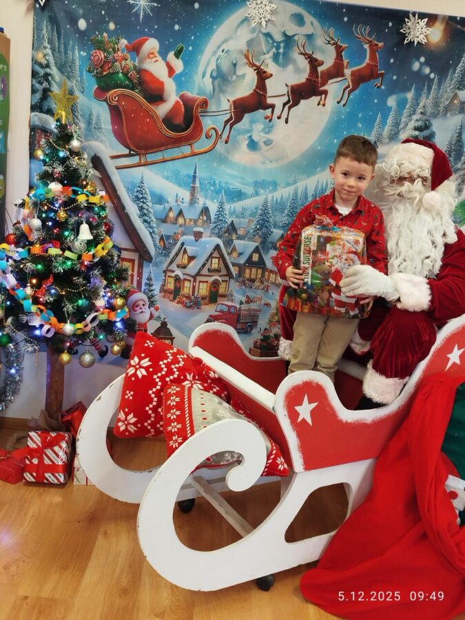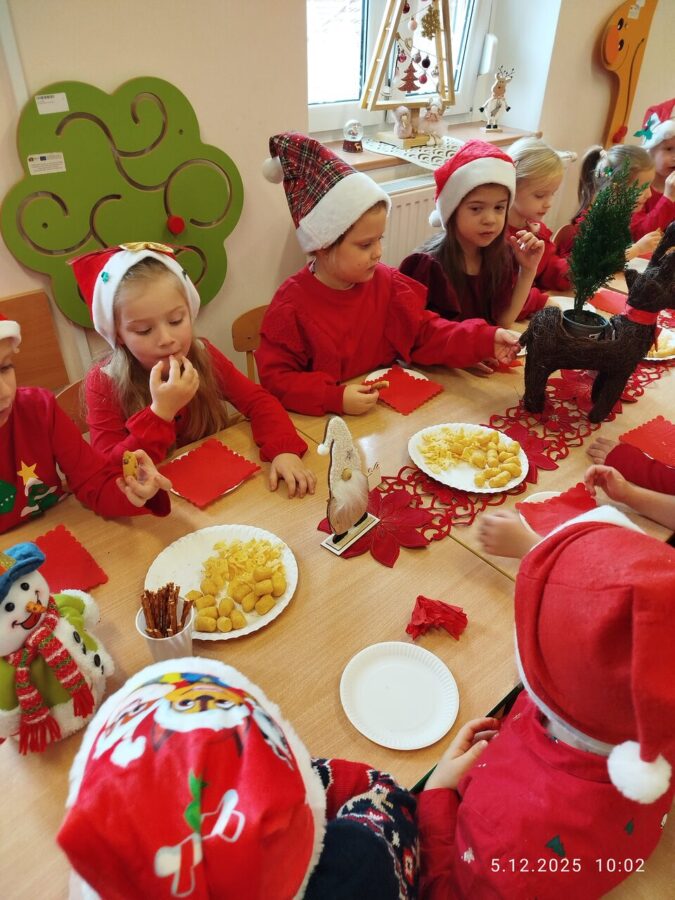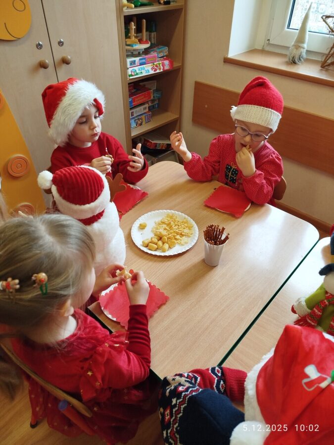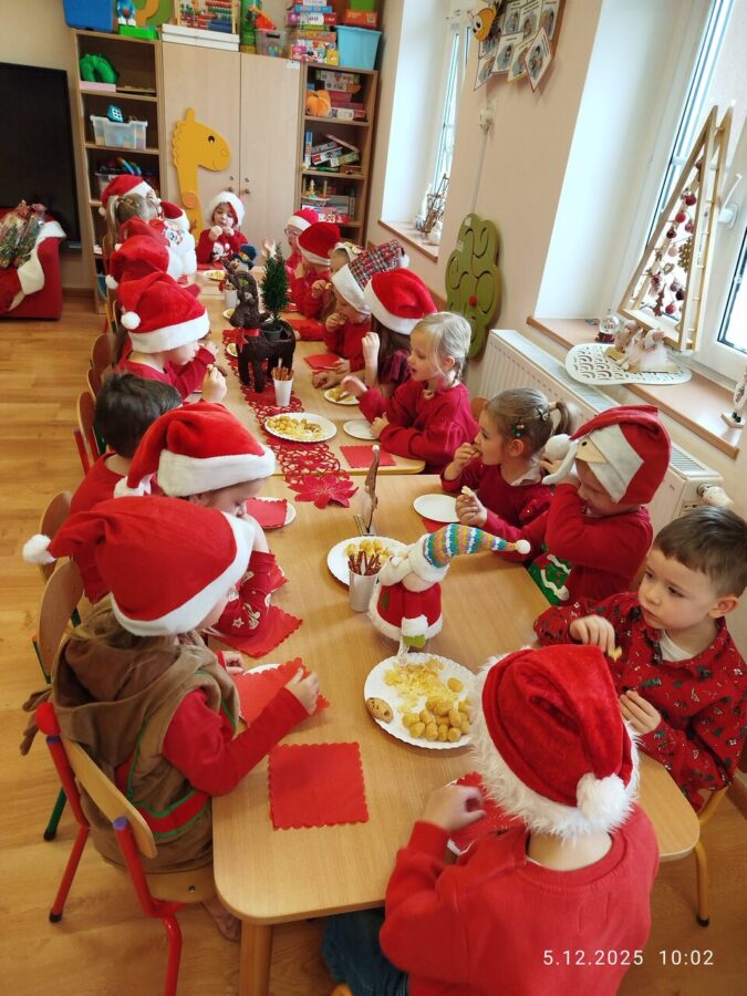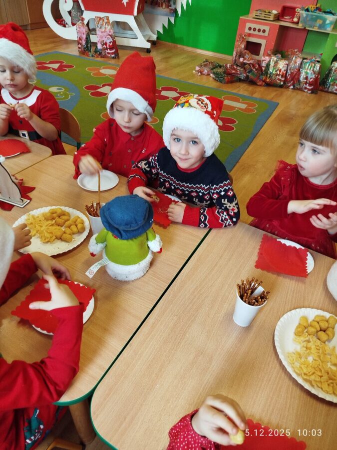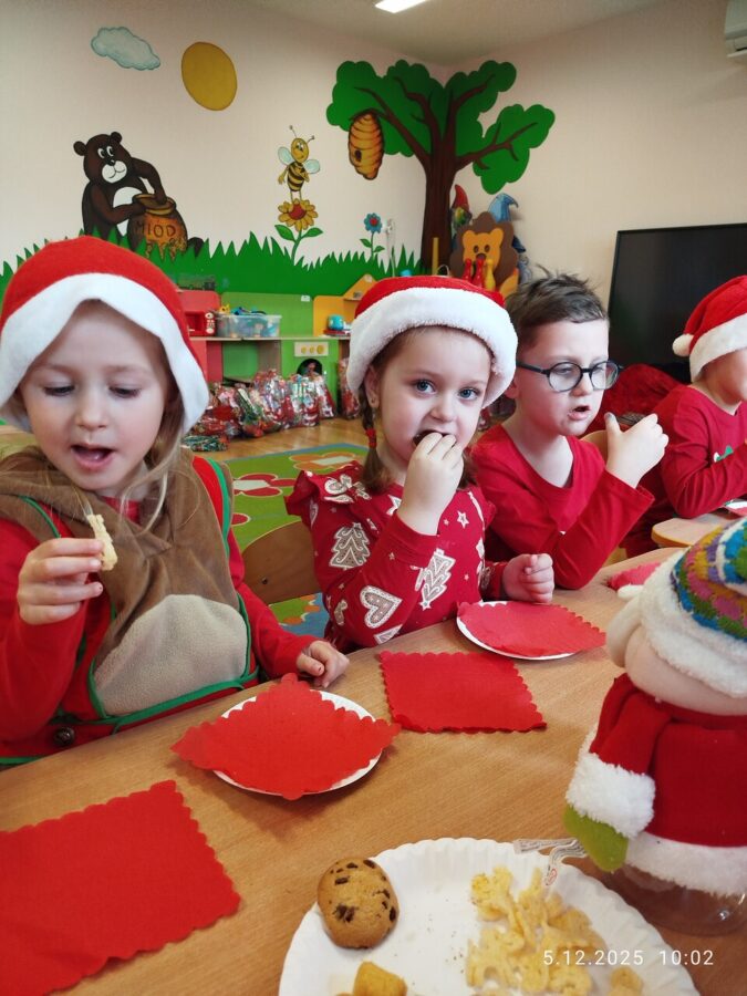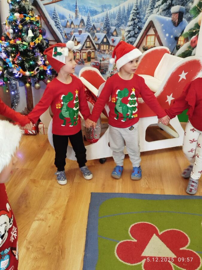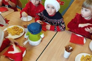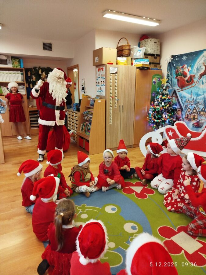 Zgodnie z tradycją w naszym przedszkolu uroczyście obchodziliśmy mikołajkowe święto. W tym dniu nasze przedszkolaki zamieniły się w pomocników Mikołaja i przyszły do przedszkola w czerwonych strojach i czapeczkach. Już od rana zastanawiały się czy Mikołaj odwiedzi ich salę i czy przyniesie prezenty. Po przyjściu Mikołaja dzieci przywitały się z niezwykłym gościem i zaprezentowały piosenki przygotowane specjalnie dla Niego. Mikołaj dostał rowniez przygotowane przez dzieci pierniczki. Zaproszony gośc był zachwycony i rozdał wszystkim dzieciom prezenty.