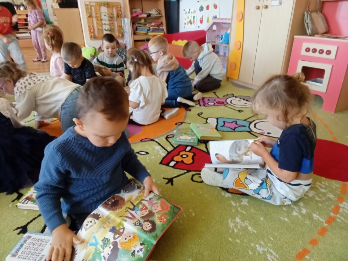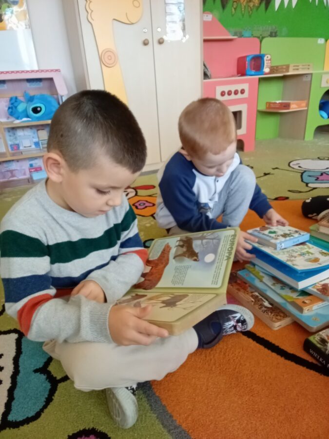 W październiku Pszczółki na zajęciach przyrodniczo-ekologicznych stworzyły Biblioteczkę Miłośnika Przyrody. Przy okazji dowiedziały się jak powstaje papier i książka. W grupach stworzyły mini książeczki i opowiadały o nich reszcie grupy. Natomiast na następnych zajęciach poznały korony drzew i ich mieszkańców. Dowiedziały się jakie są drzewa, czym się różnią drzewa liściaste od iglastych, zrobiły jesienne korony z różnokolorowych liści i jesienne drzewo.