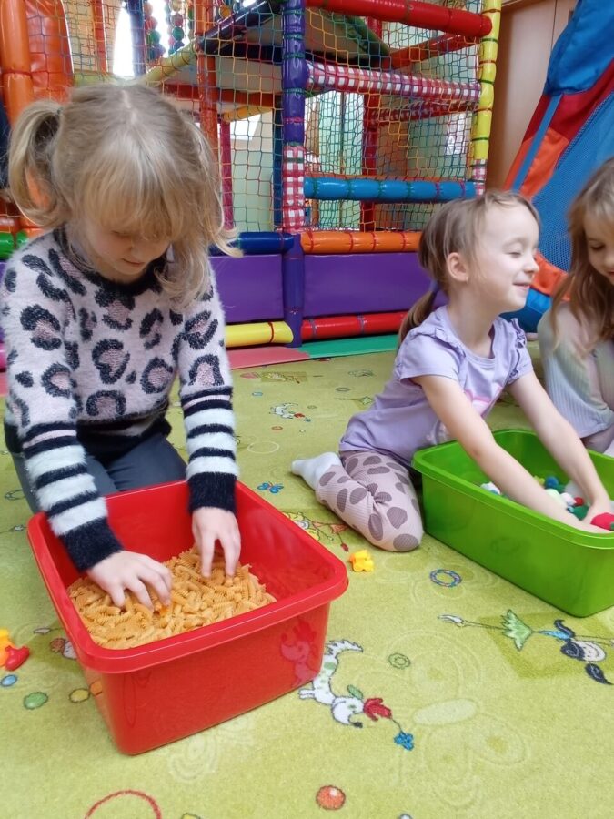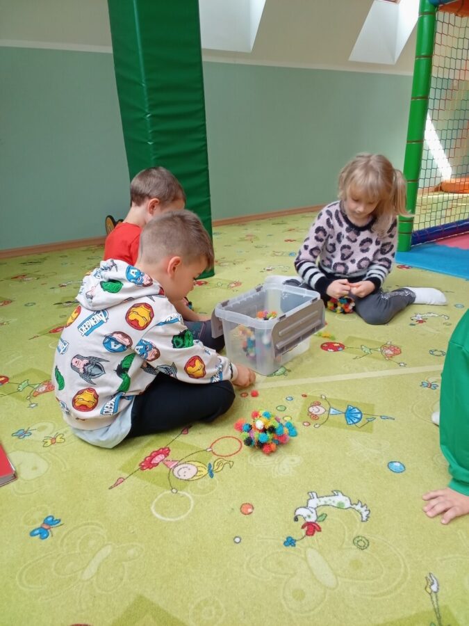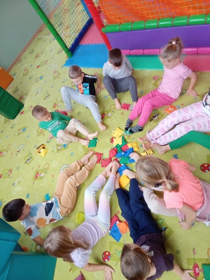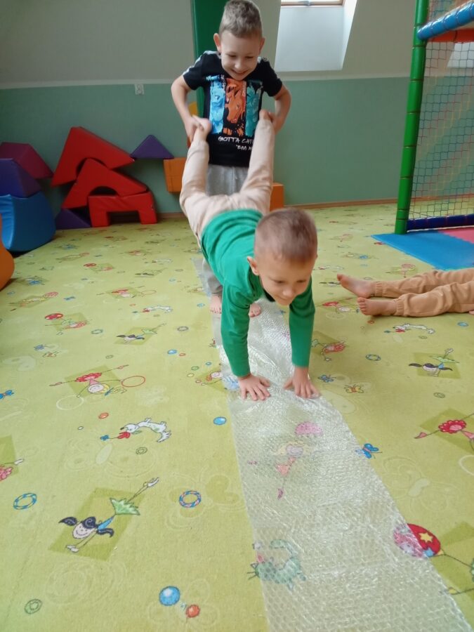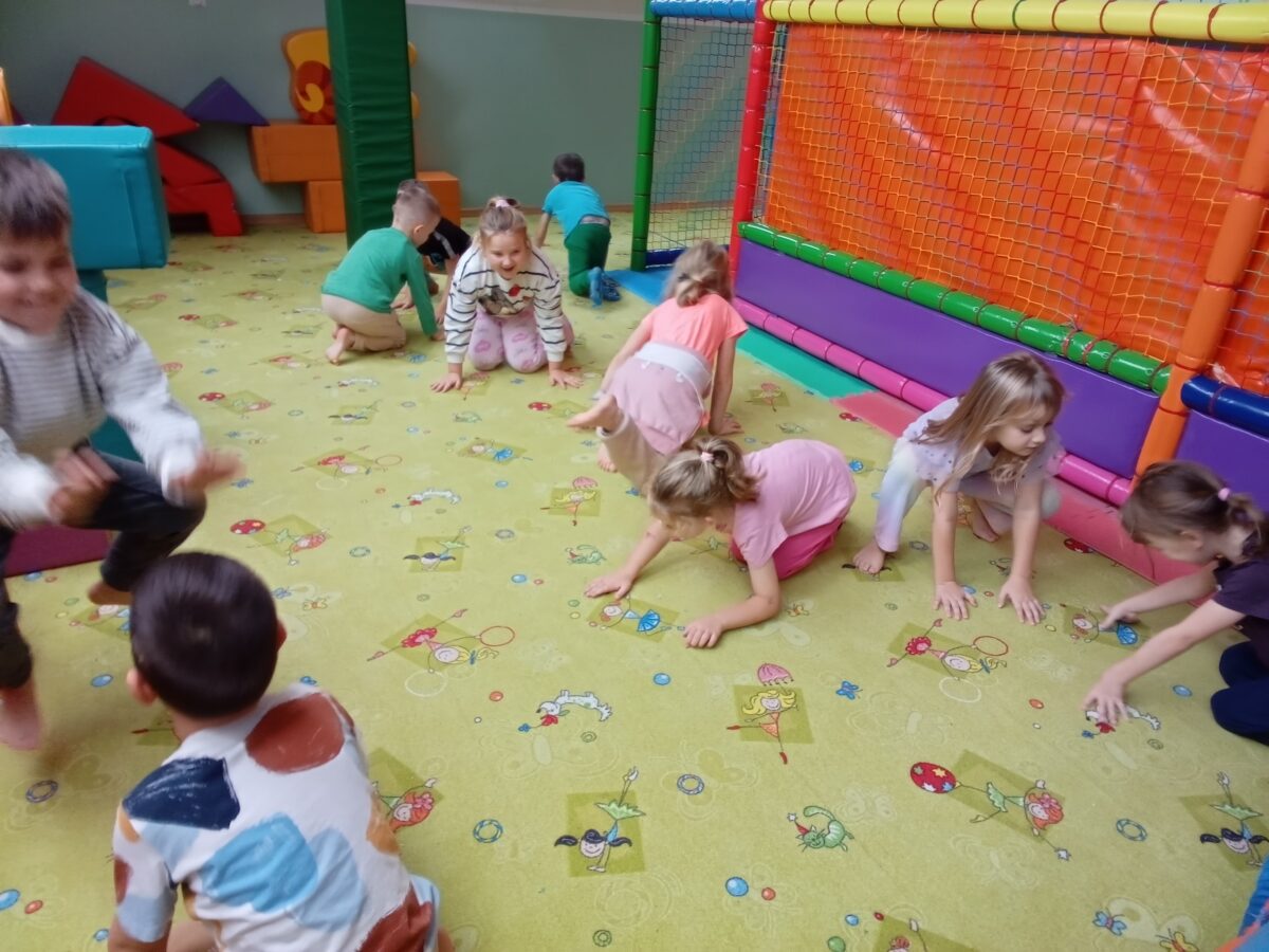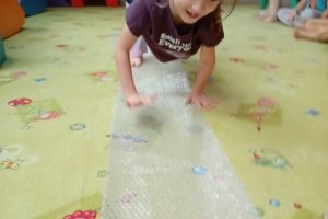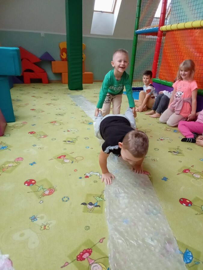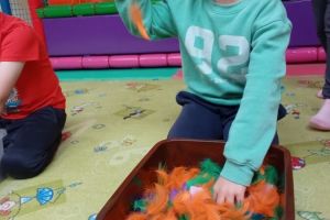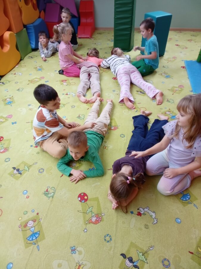 W pażdzierniku w grupie Jeżyki odbyły sie cztery spotkania z elementami integracji sensorycznej. Celem zajęć było wyzwalanie aktywności ruchowej dziecka,usprawnianie motoryki małej i dużej, stymulowanie percepcji słuchowej, dotykowej i węchowej, oraz rozwijanie umiejętności współdziałania.