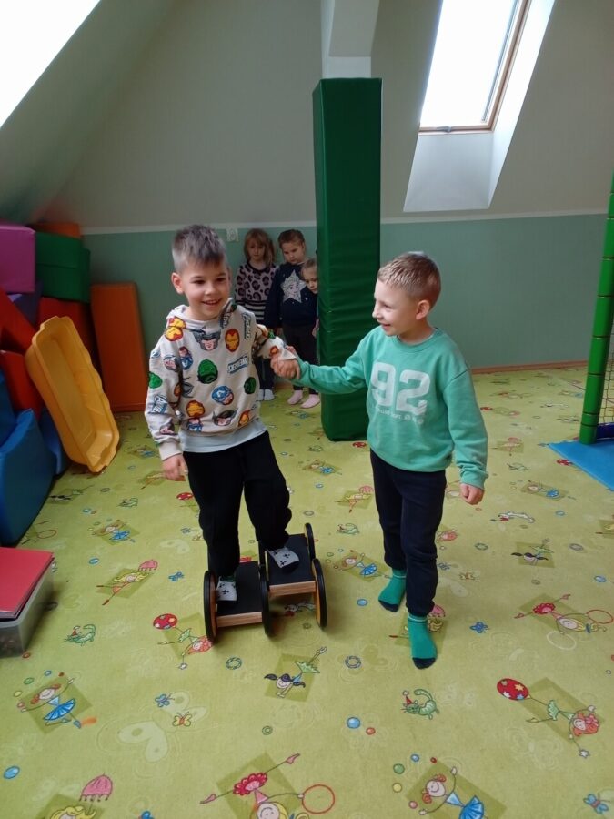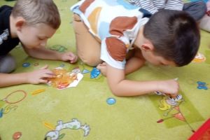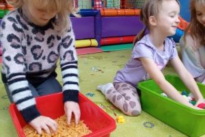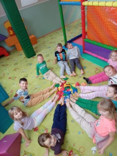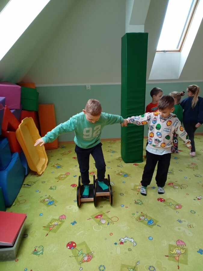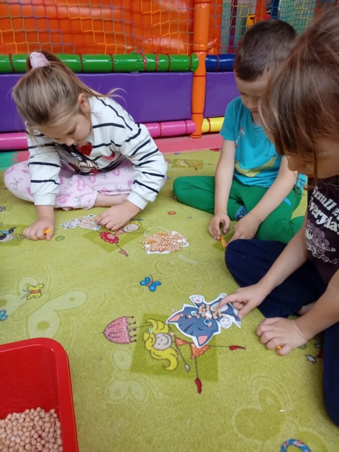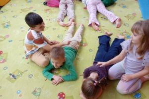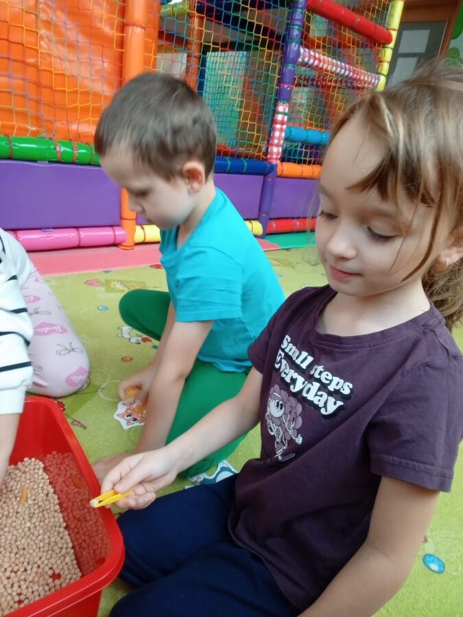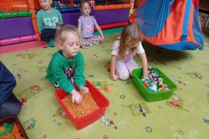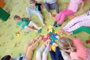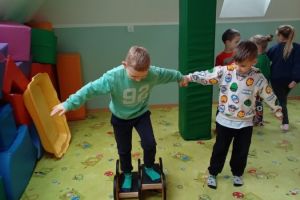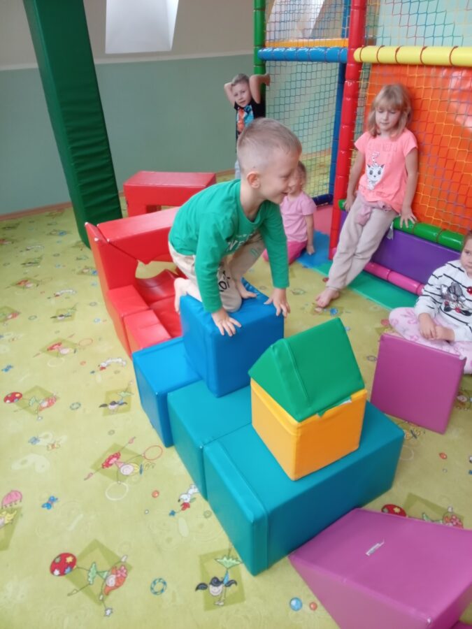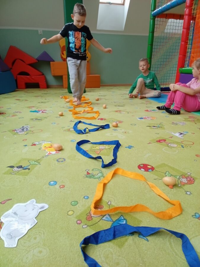W pażdzierniku w grupie Jeżyki odbyły sie cztery spotkania z elementami integracji sensorycznej. Celem zajęć było wyzwalanie aktywności ruchowej dziecka,usprawnianie motoryki małej i dużej, stymulowanie percepcji słuchowej, dotykowej i węchowej, oraz rozwijanie umiejętności współdziałania.