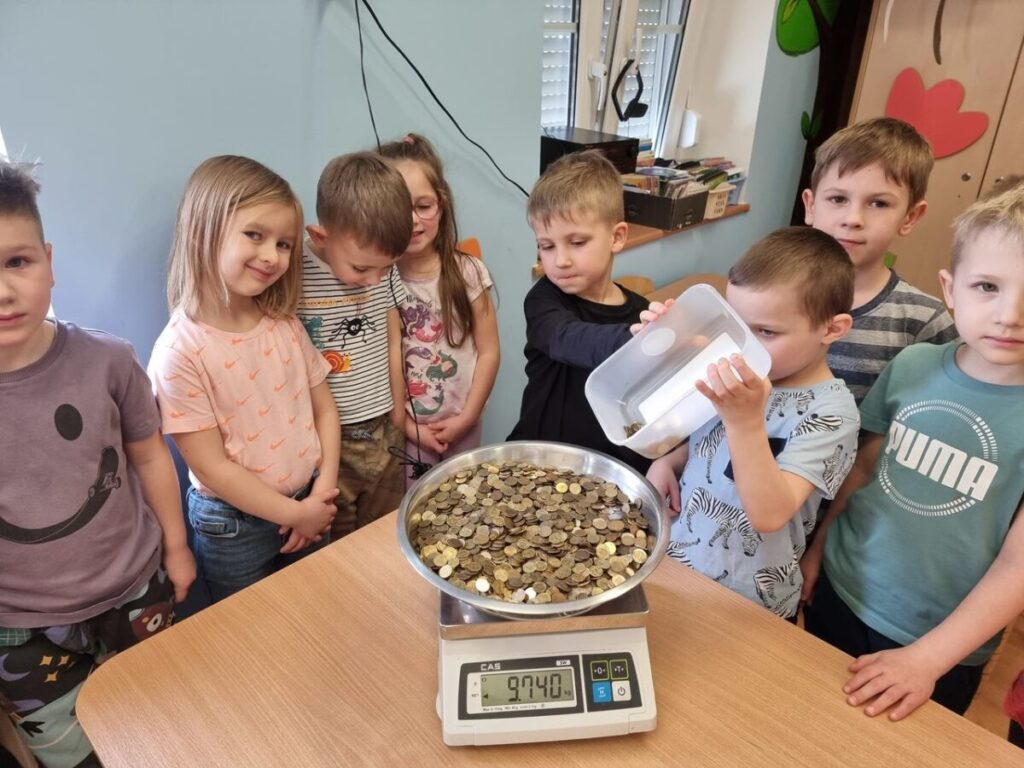 Dzieci ze wszystkich grup z wielką chęcią i zadowoleniem przynosiły zgromadzone przez siebie nominały o różnych wartościach:1gr., 2gr., 5gr., 10gr., 20gr., 50gr.