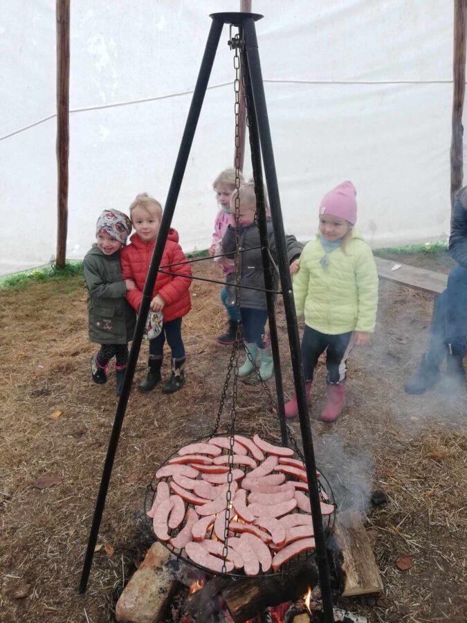 Tego dnia dzieci dały się ponieść kreatywności, wolności i ekspresji ruchowej w naturalnym rytmie pięknej przyrody. Zwieńczeniem naszej krótkiej, ale intensywnej przygody w sadzie było wspólne biesiadowanie przy ognisku z kiełbaskami.