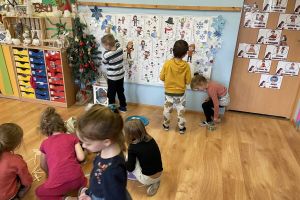 - Ptasia stołówka – podczas tych zajęć dzieci zapoznały się z nazwami ptaków zimującymi w Polsce oraz ze sposobem ich dokarmiania podczas zimy. Słowiki zdobywały swoja wiedzę poprzez oglądanie filmu edukacyjnego, plansz dydaktycznych, czytanie globalne, wykonywanie prac plastycznych, zabawy konstrukcyjne i sensoryczne.