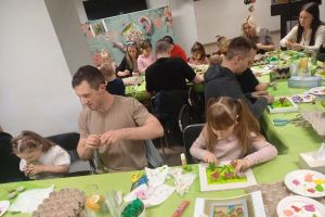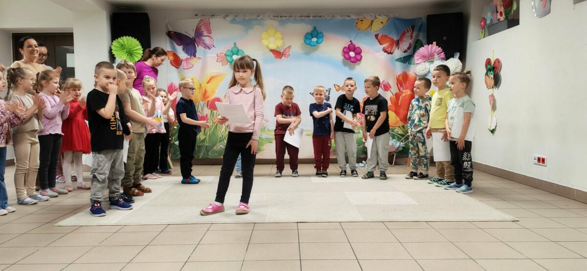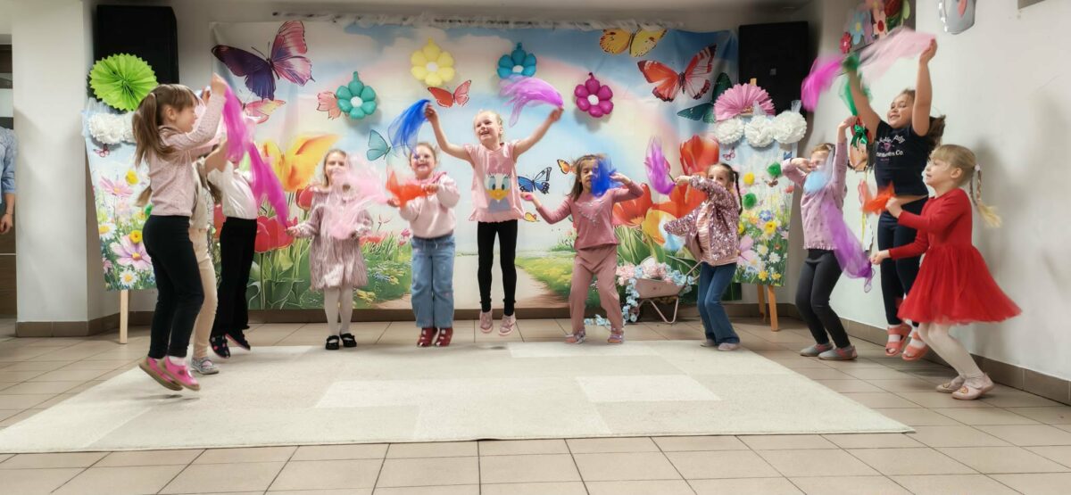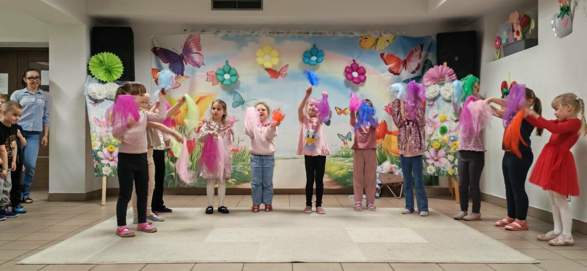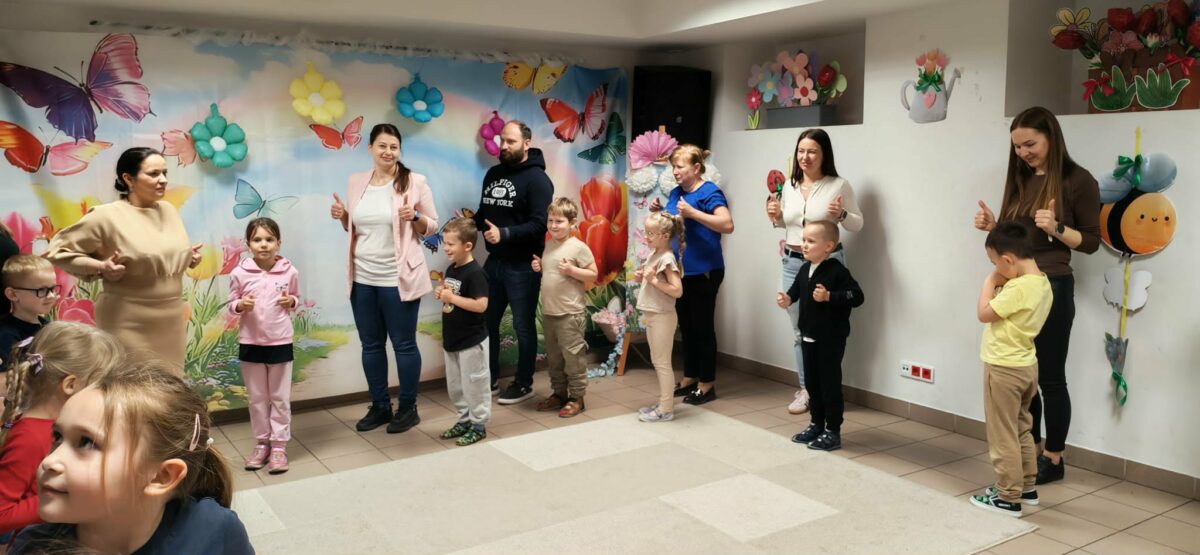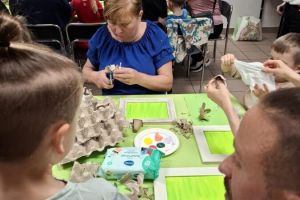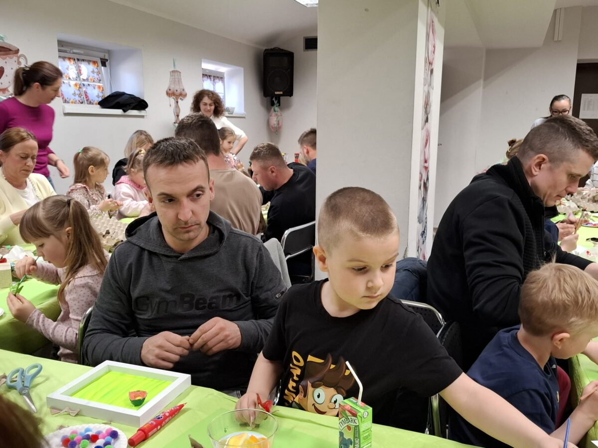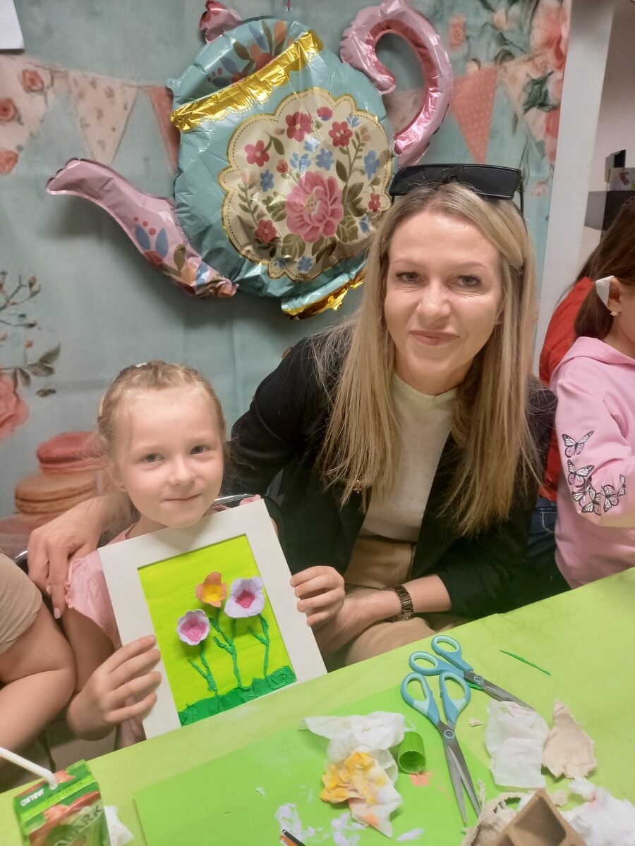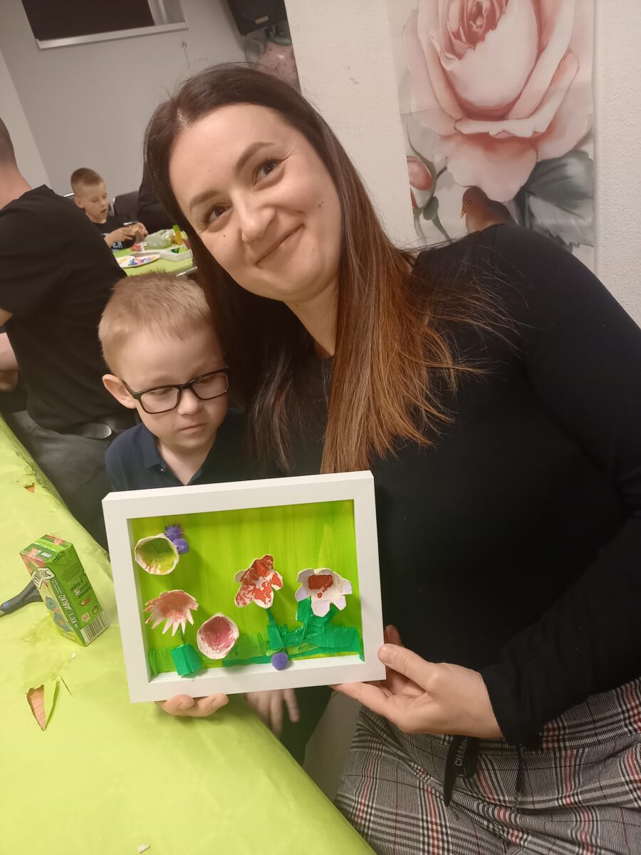 23 kwietnia 2026 roku w grupie Słowiki odbyły się warsztaty plastyczno- techniczne z udziałem rodziców. Przedszkolaki zaprezentowały piosenki wiosenne ,,Hop hop wiosna”, ,,Idzie wiosna”, zagadki wiosenne czytane rodzicom przez Gabrysię oraz taniec z chustkami,,Wiosna wiosenka” wprowadzając wszystkich w temat spotkania, którego celem było wykonanie wiosennej łąki w przygotowanej ramce. Następnie dzieci wraz z rodzicami wykonali taniec przy piosence ,,Krasnoludek”. Wszyscy z zaangażowaniem wykonywali powierzone zadanie i powstały piękne wiosenne obrazy, które rodzice z dziećmi mogli zabrać do domu. Kolejnym etapem spotkania była degustacja pysznych ciast przygotowanych przez rodziców. W bardzo dobrych nastrojach nasze spotkanie dobiegło końca. Dziękujemy rodzicom za obecność i zaangażowanie.