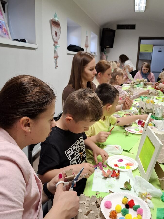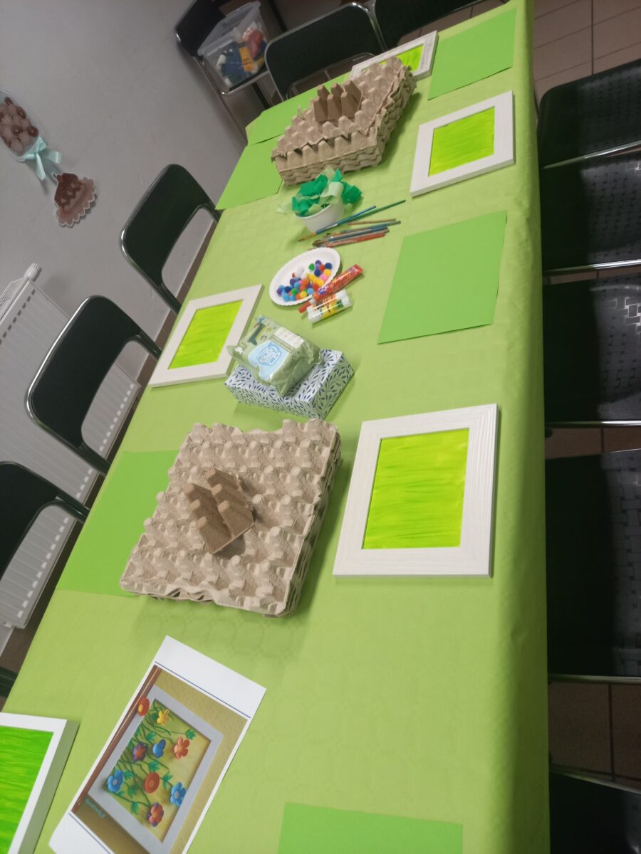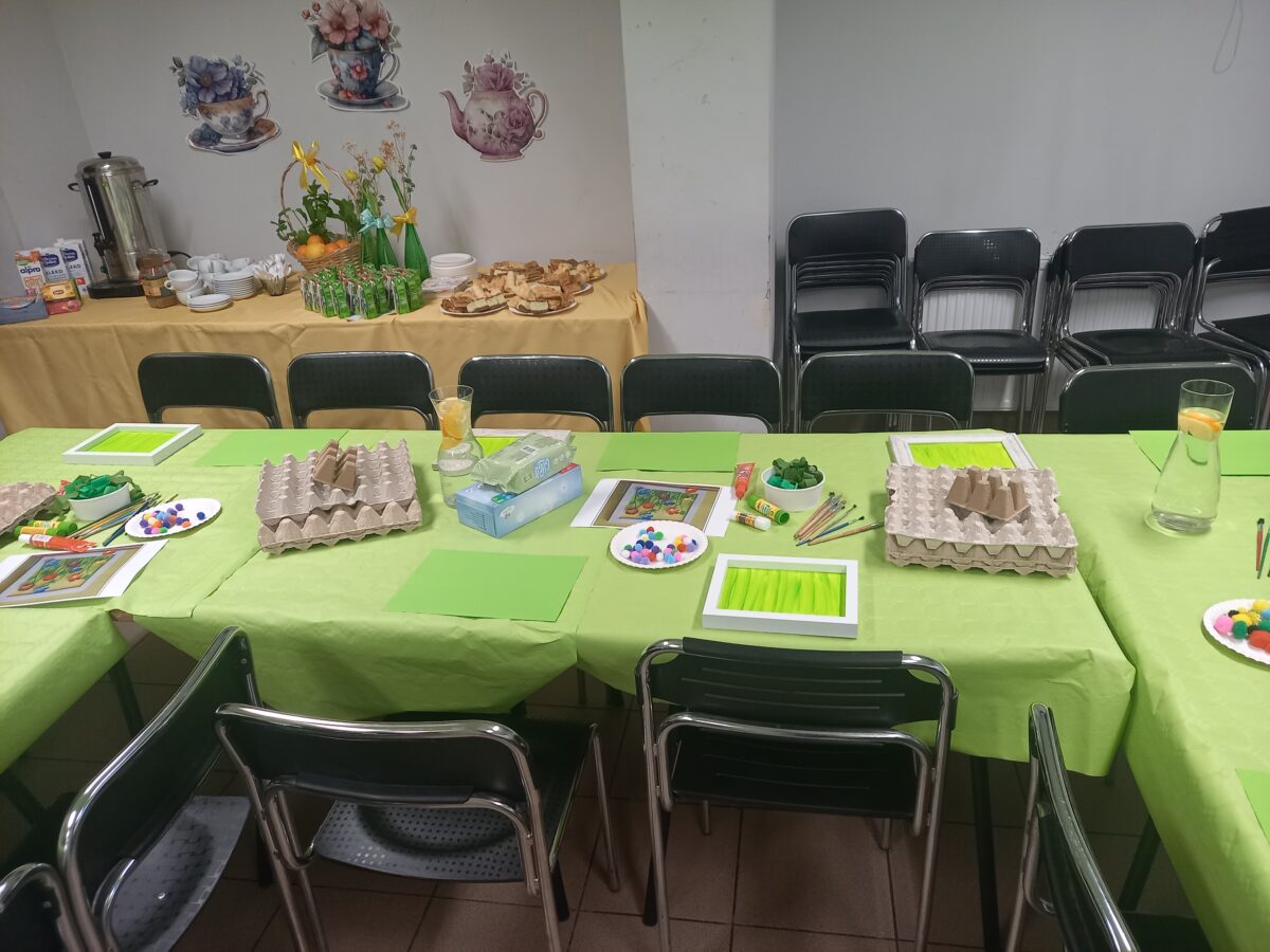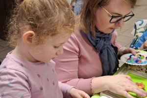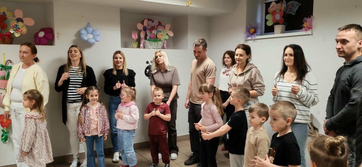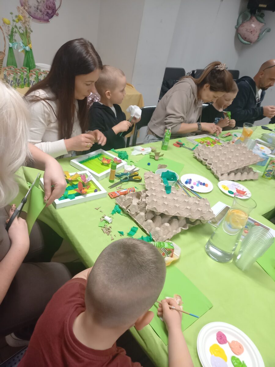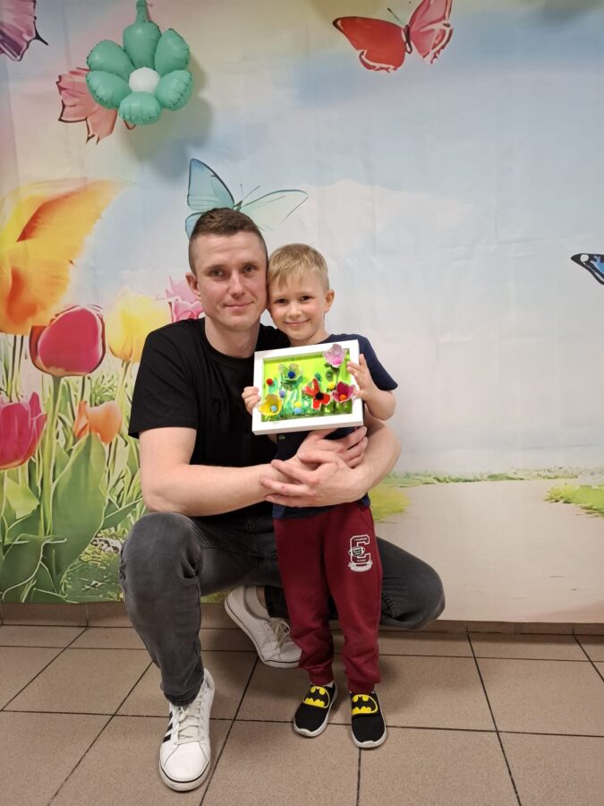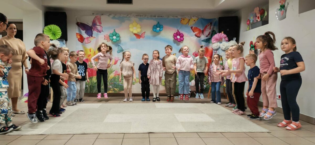 23 kwietnia 2026 roku w grupie Słowiki odbyły się warsztaty plastyczno- techniczne z udziałem rodziców. Przedszkolaki zaprezentowały piosenki wiosenne ,,Hop hop wiosna”, ,,Idzie wiosna”, zagadki wiosenne czytane rodzicom przez Gabrysię oraz taniec z chustkami,,Wiosna wiosenka” wprowadzając wszystkich w temat spotkania, którego celem było wykonanie wiosennej łąki w przygotowanej ramce. Następnie dzieci wraz z rodzicami wykonali taniec przy piosence ,,Krasnoludek”. Wszyscy z zaangażowaniem wykonywali powierzone zadanie i powstały piękne wiosenne obrazy, które rodzice z dziećmi mogli zabrać do domu. Kolejnym etapem spotkania była degustacja pysznych ciast przygotowanych przez rodziców. W bardzo dobrych nastrojach nasze spotkanie dobiegło końca. Dziękujemy rodzicom za obecność i zaangażowanie.