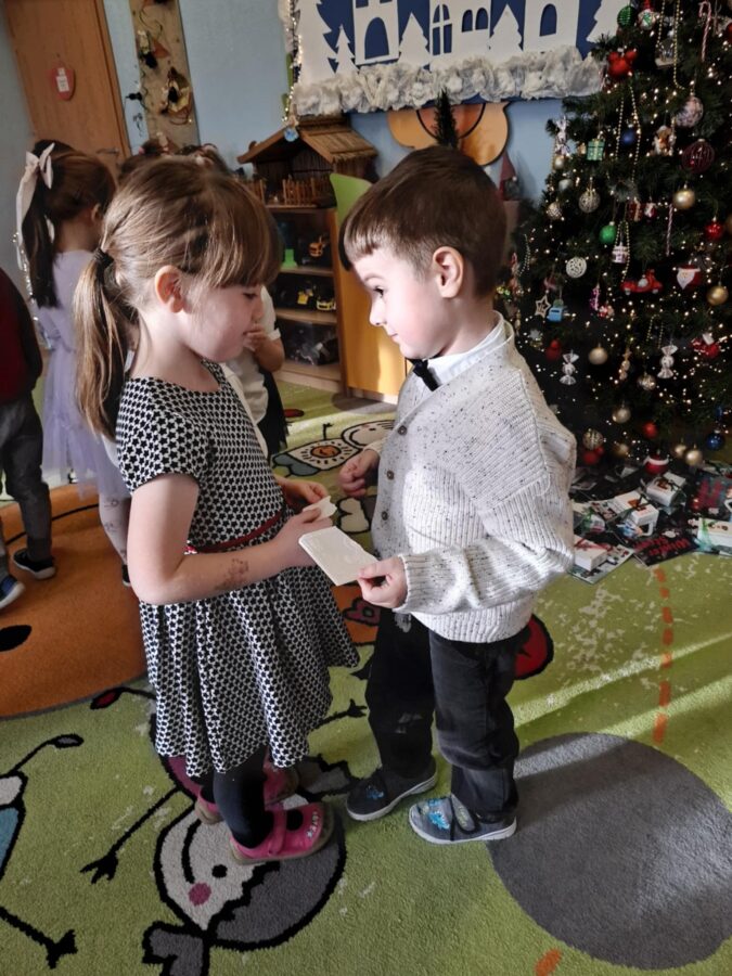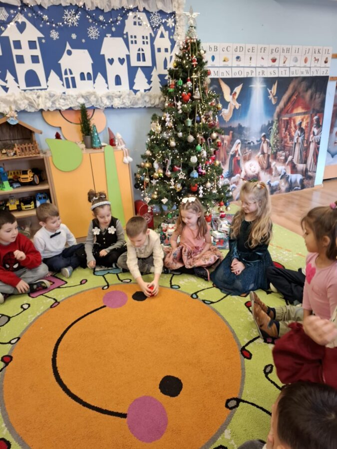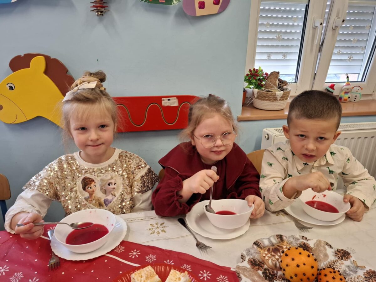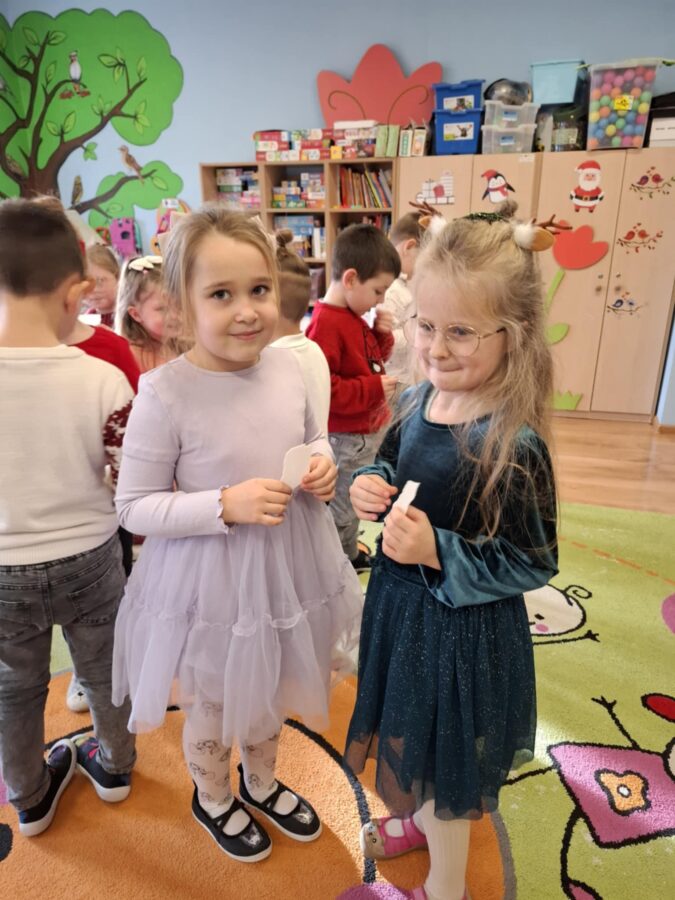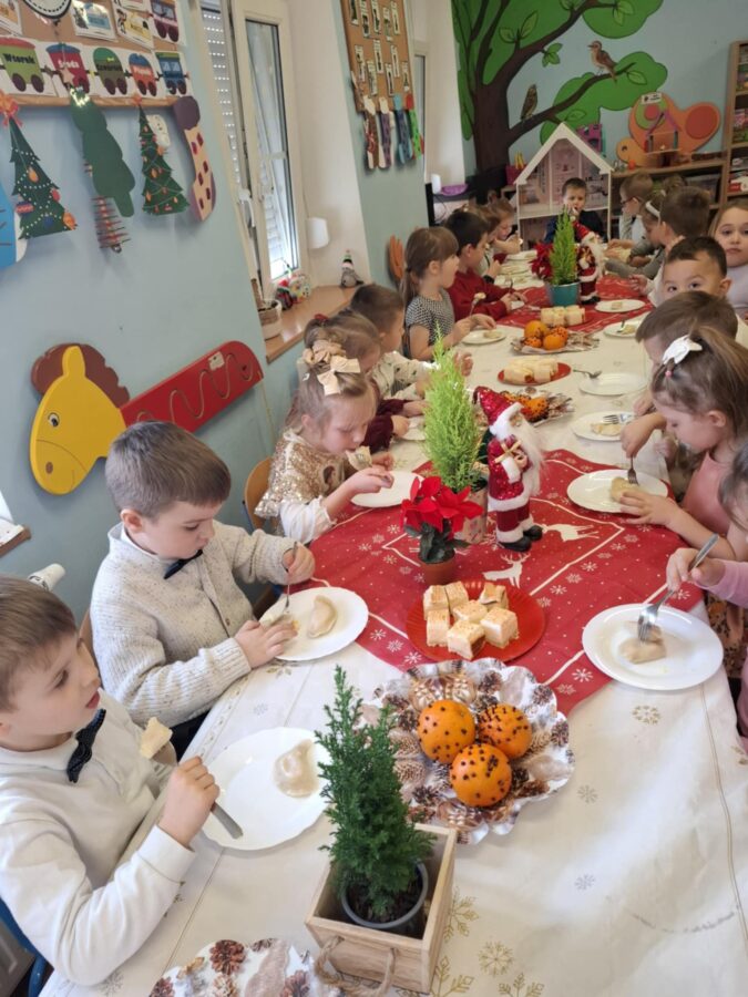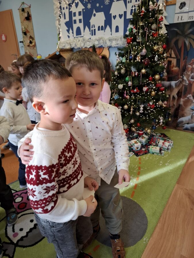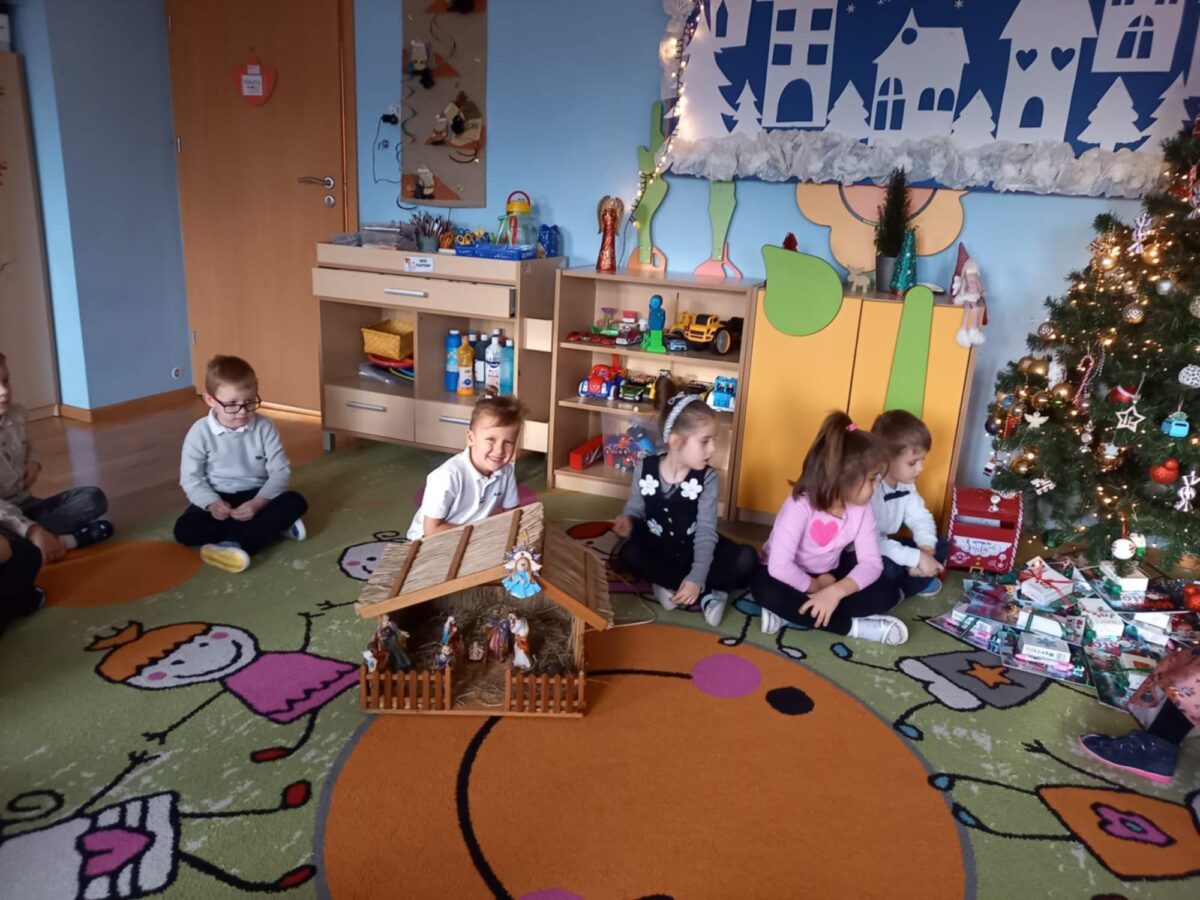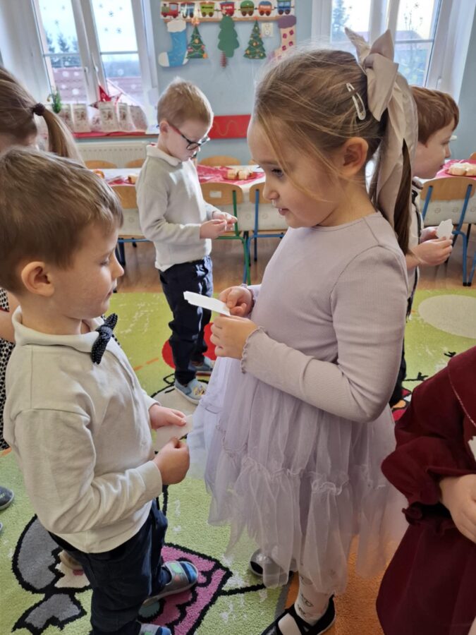 Dzisiaj w naszej grupie panowała radosna atmosfera. Świąteczne dekoracje, Muzyka oraz dzieci w eleganckich strojach wprowadziły nastrój w przedszkolnej sali. Uroczystość rozpoczęła się opowiadaniem historii o narodzinach Jezusa. Nie zabrakło dzielenia się opłatkiem, śpiewania kolęd no i uroczystego obiadu. Na koniec na dzieci czekały prezenty, które jakimś cudem trafiły pod choinkę. To było wyjątkowe przeżycie.