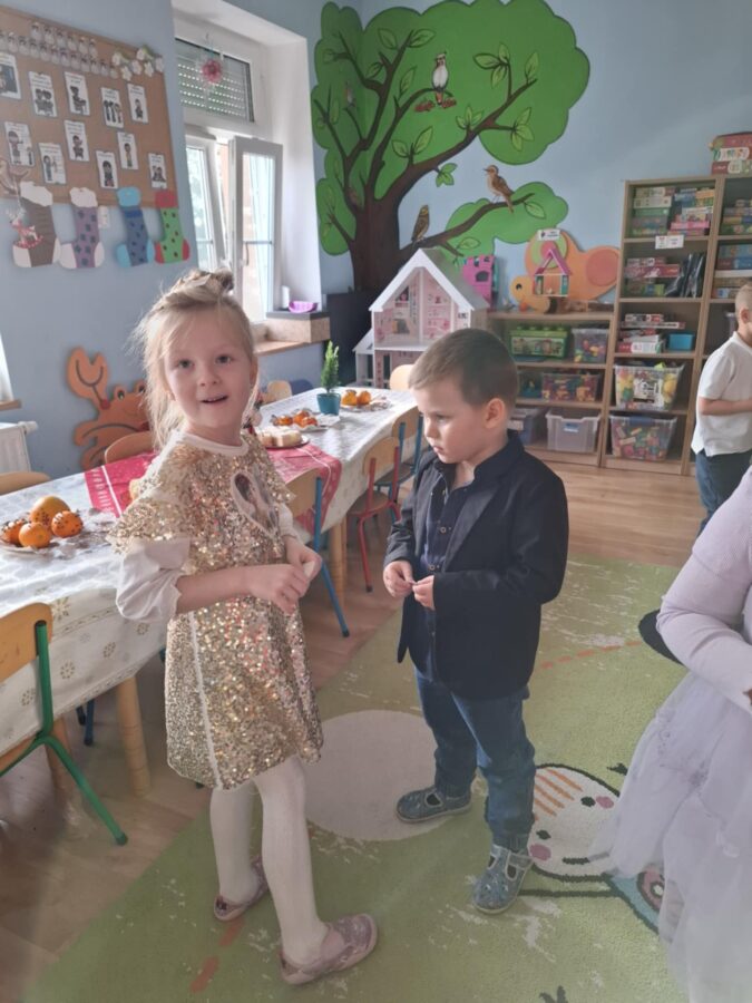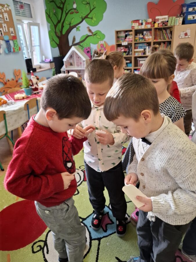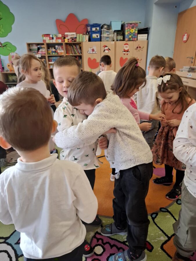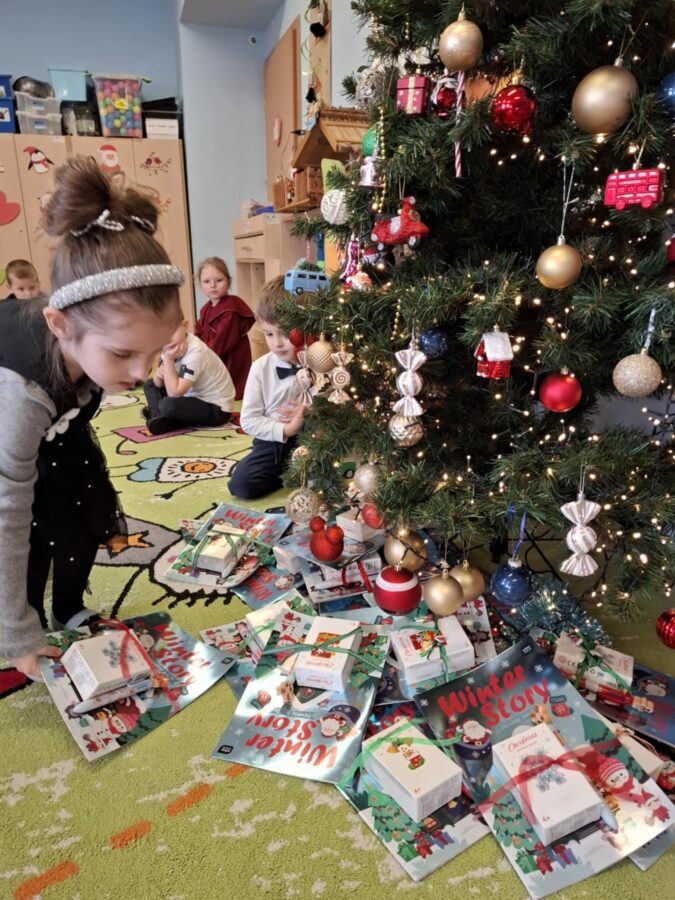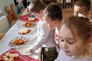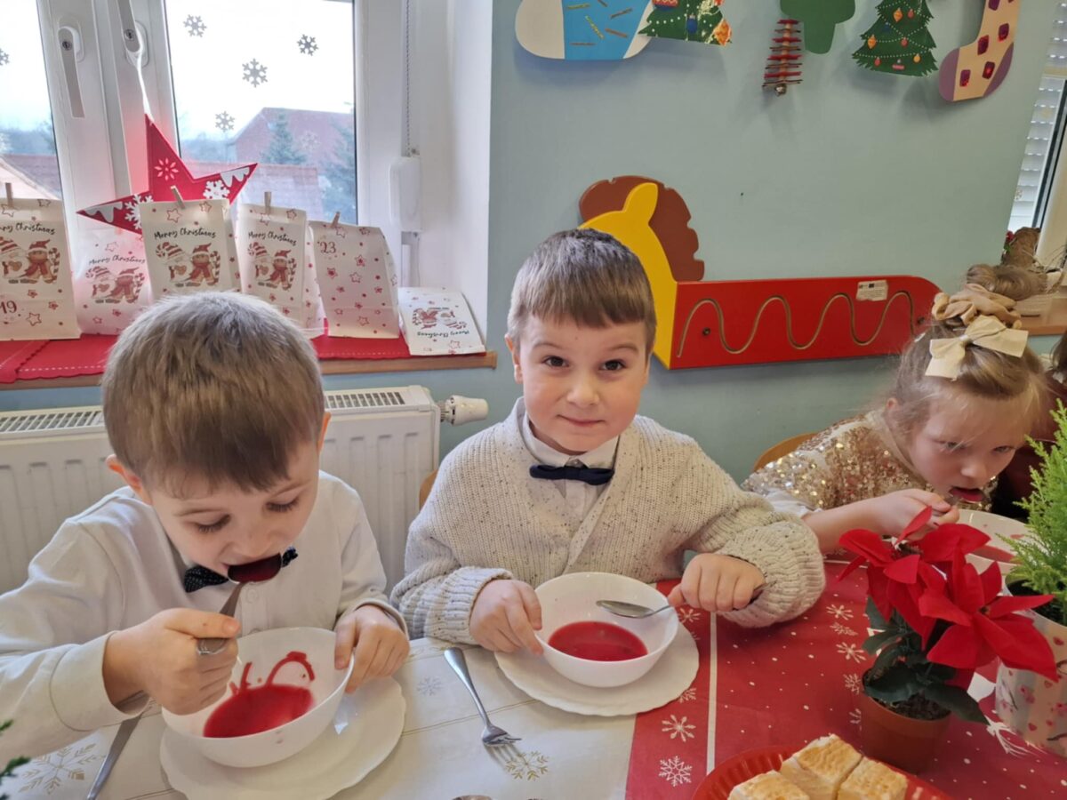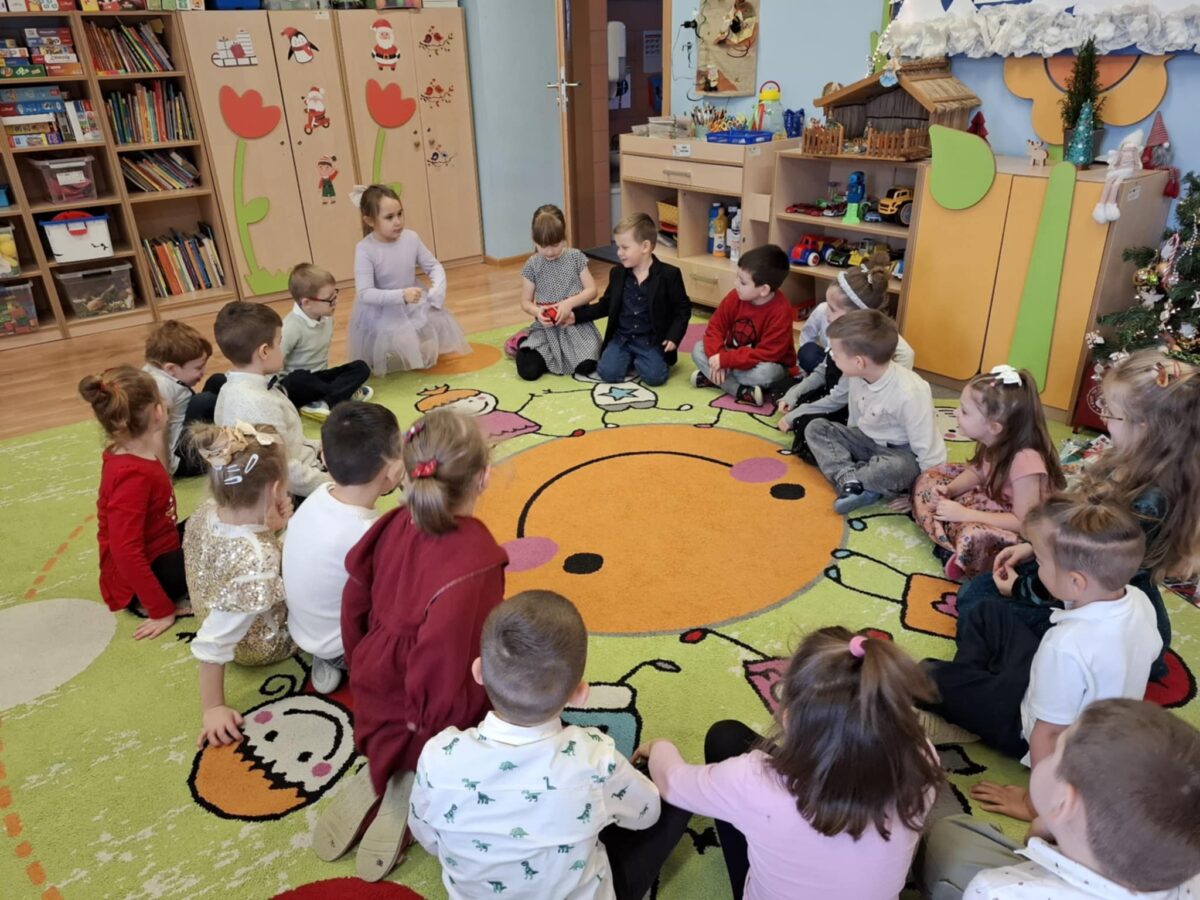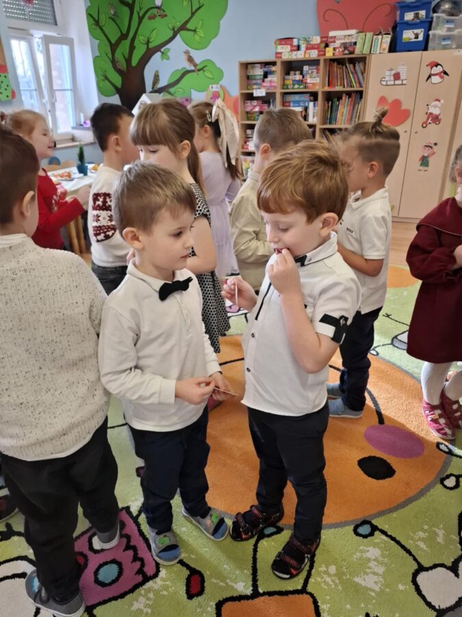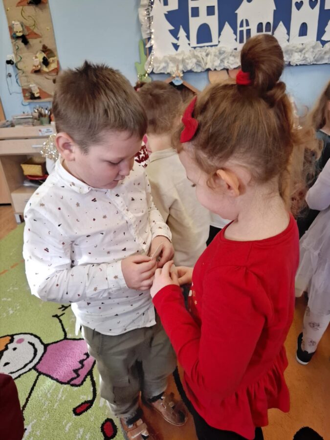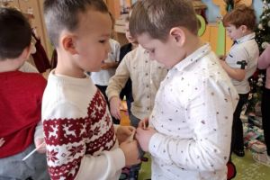 Dzisiaj w naszej grupie panowała radosna atmosfera. Świąteczne dekoracje, Muzyka oraz dzieci w eleganckich strojach wprowadziły nastrój w przedszkolnej sali. Uroczystość rozpoczęła się opowiadaniem historii o narodzinach Jezusa. Nie zabrakło dzielenia się opłatkiem, śpiewania kolęd no i uroczystego obiadu. Na koniec na dzieci czekały prezenty, które jakimś cudem trafiły pod choinkę. To było wyjątkowe przeżycie.