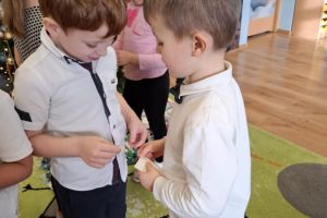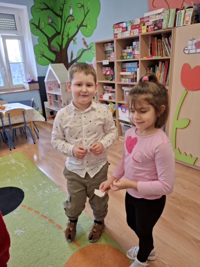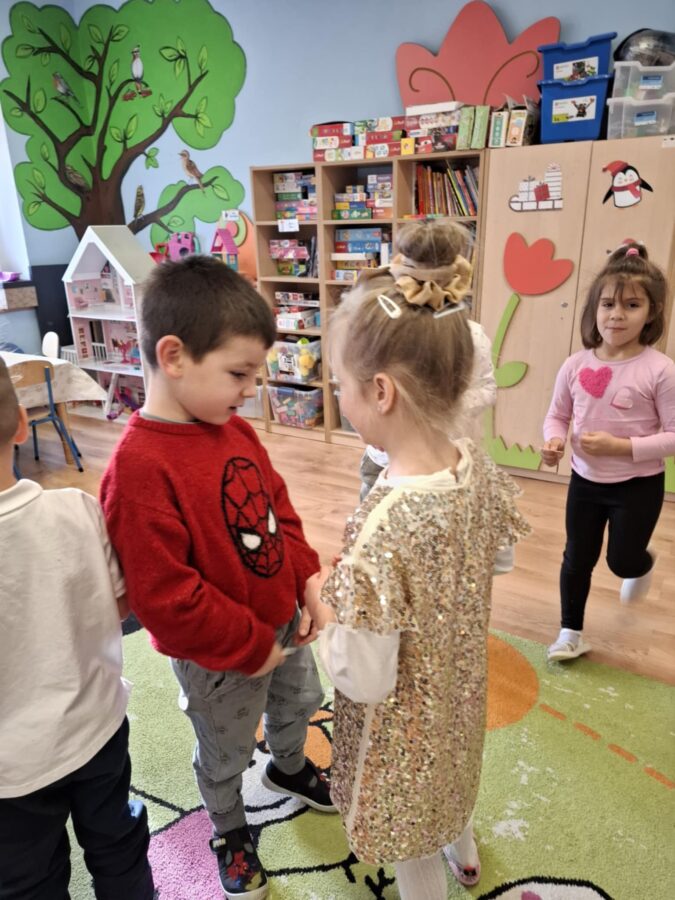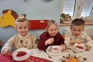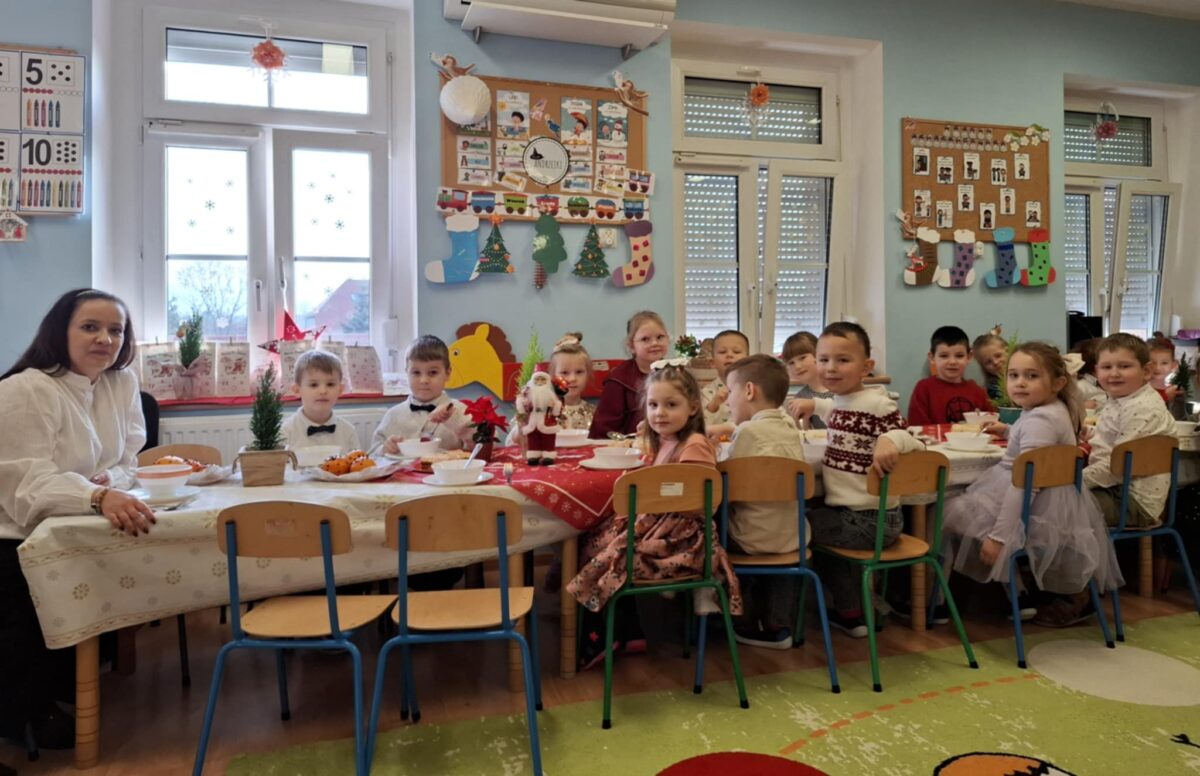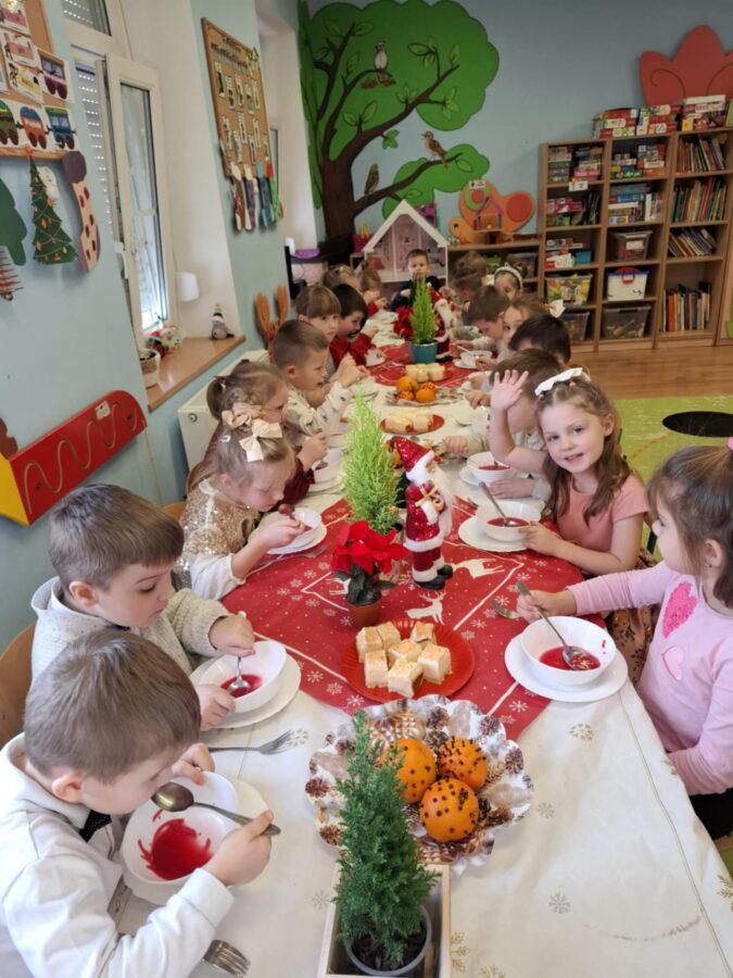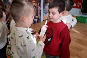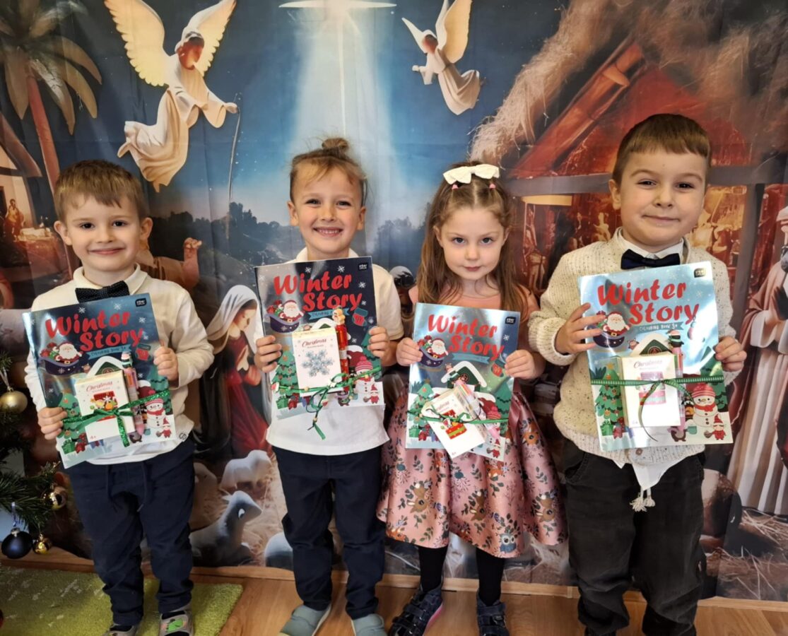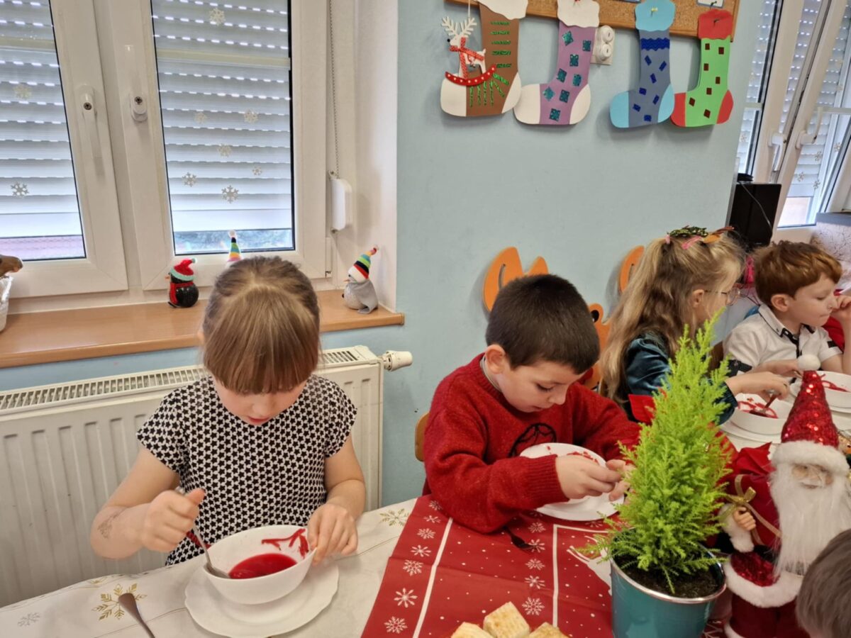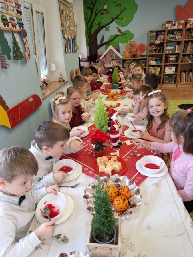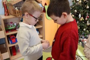 Dzisiaj w naszej grupie panowała radosna atmosfera. Świąteczne dekoracje, Muzyka oraz dzieci w eleganckich strojach wprowadziły nastrój w przedszkolnej sali. Uroczystość rozpoczęła się opowiadaniem historii o narodzinach Jezusa. Nie zabrakło dzielenia się opłatkiem, śpiewania kolęd no i uroczystego obiadu. Na koniec na dzieci czekały prezenty, które jakimś cudem trafiły pod choinkę. To było wyjątkowe przeżycie.