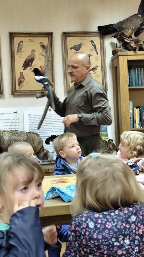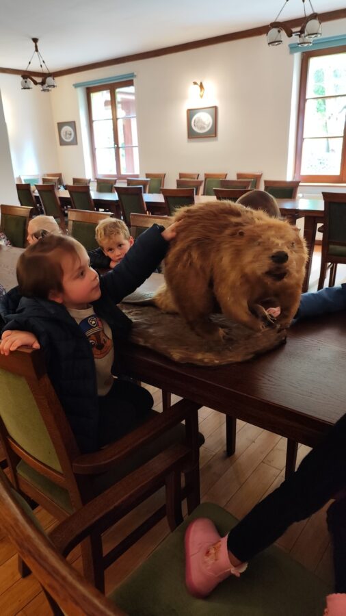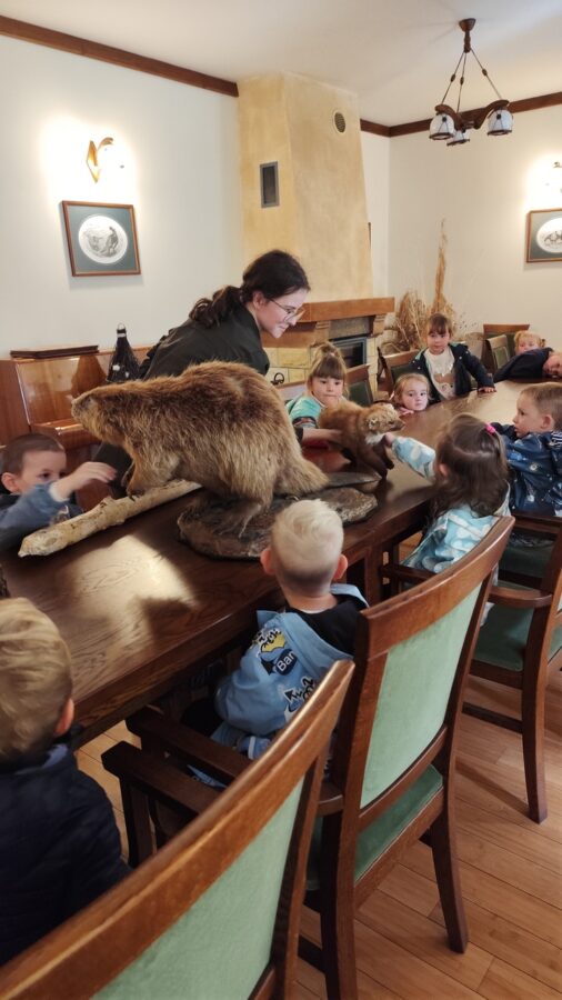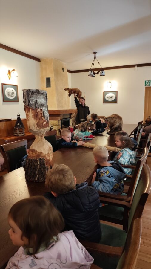 Dnia 7 października 2025 roku Leśne Ludki wybrały się na wycieczkę do Nadleśnictwa w Ruszowie. Celem wycieczki było propagowanie wiedzy o lesie i kształtowanie wśród dzieci postawy ekologicznej, szacunku do przyrody; zapoznanie z rolą leśniczego. Dzieci z wielkim zaangażowaniem słuchały Pana Leśniczego oraz poszerzały swoją wiedzę o otaczającym nas świecie przyrody. To był udany dzień.