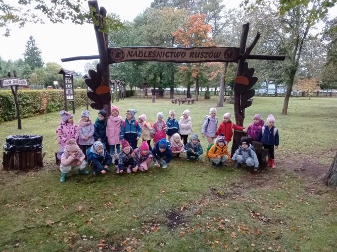 Dnia 7 października 2025 roku grupa Pszczółki wybrała się na wycieczkę do Nadleśnictwa w Ruszowie. Celem wycieczki było kształtowanie pozytywnego stosunku do przyrody, rozwijanie wrażliwości na jej piękno, pogłębianie wiedzy o roli lasu w życiu człowieka i zwierząt oraz promowanie ekologicznych postaw i zasad ochrony przyrody.