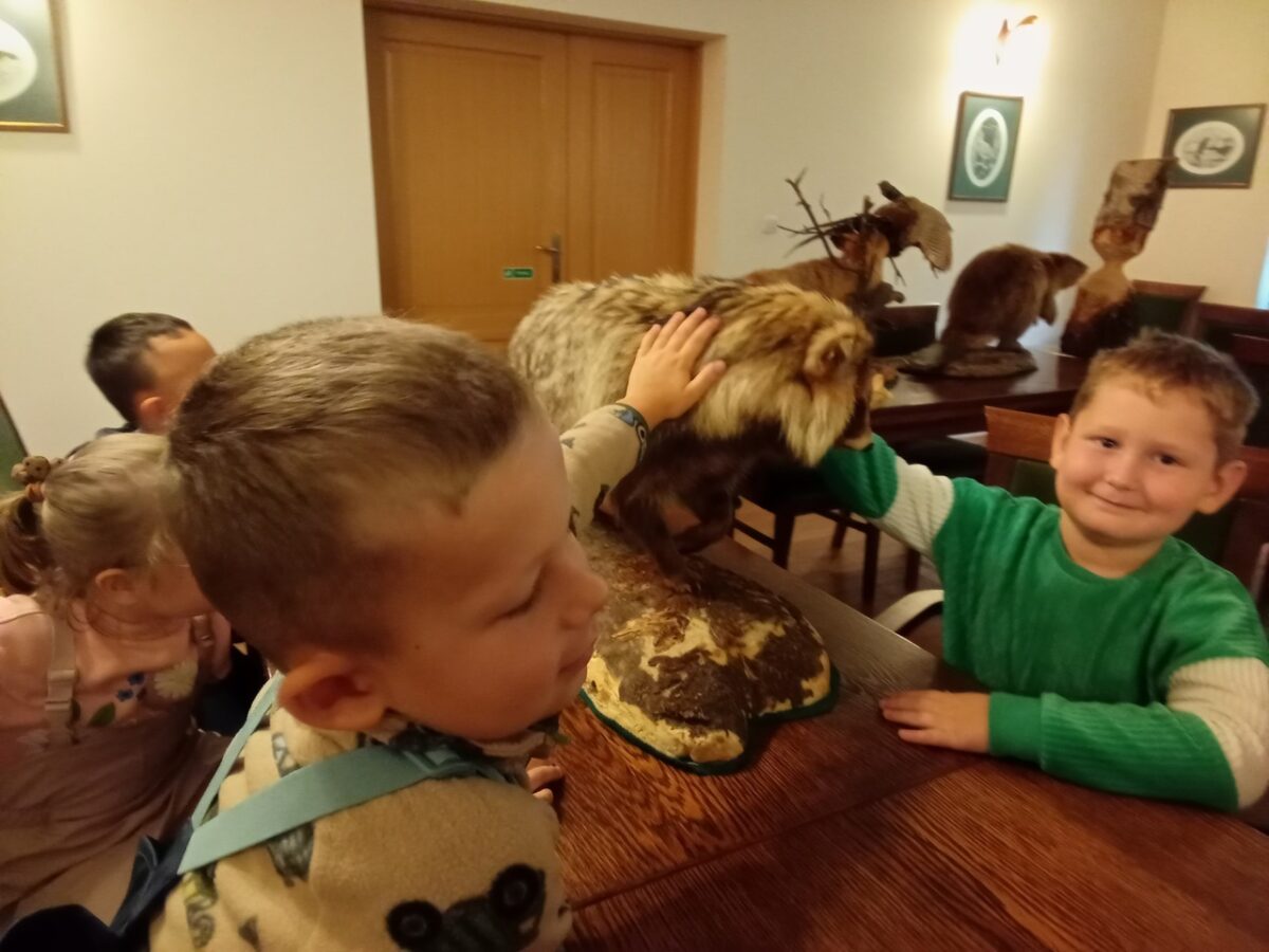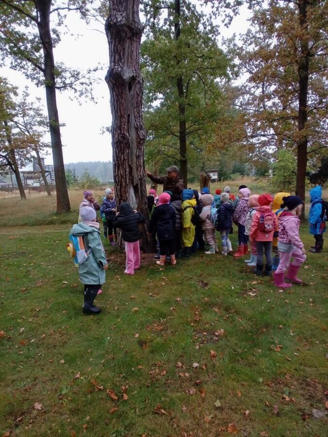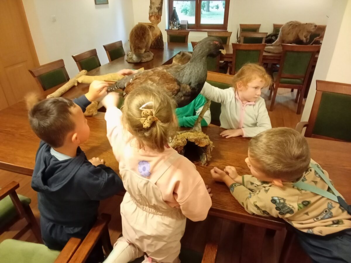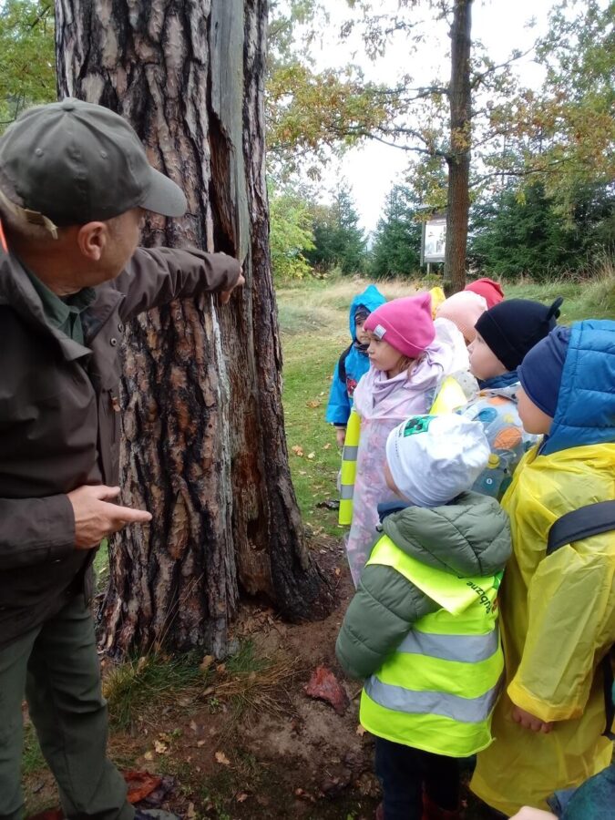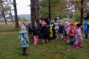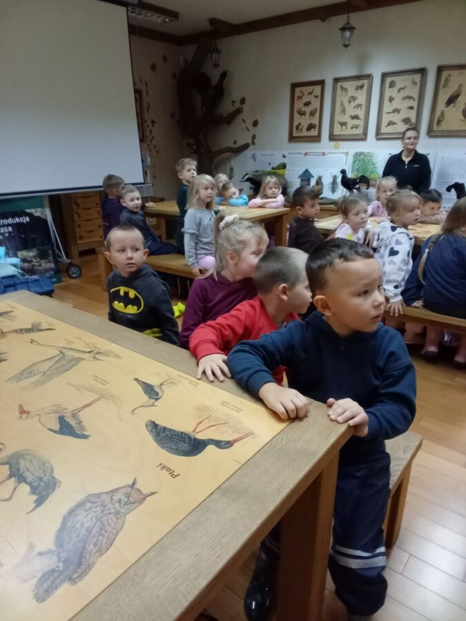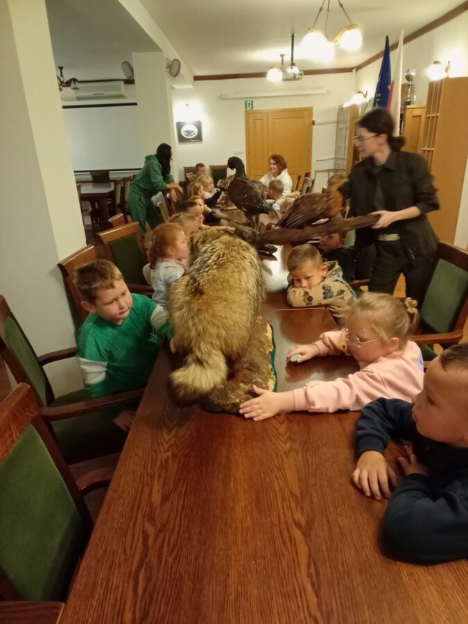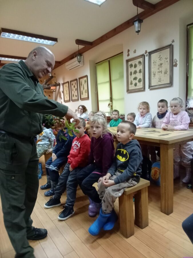8 października dzieci z grupy Słowiki wybrała się do Nadleśnictwa w Ruszowie. Celem wycieczki było zapoznanie dzieci z lasem i jego mieszkańcami i rolą leśników, kształtowanie wrażliwości na przyrodę oraz uczenie zasad ochrony środowiska. Dzieci w wielkim skupieniu słuchały niezwykłych opowieści Leśników, układały edukacyjne puzzle, zapoznały się ze zwierzętami mieszkającymi w lesie i zagrały w grę terenową. To było niezwykła wycieczka, która na długo pozostanie nam w pamięci.