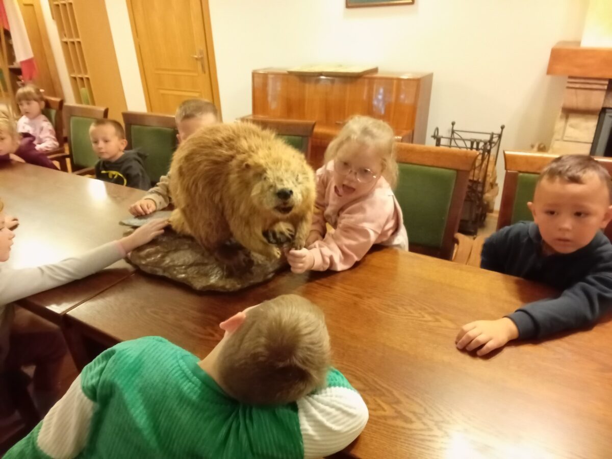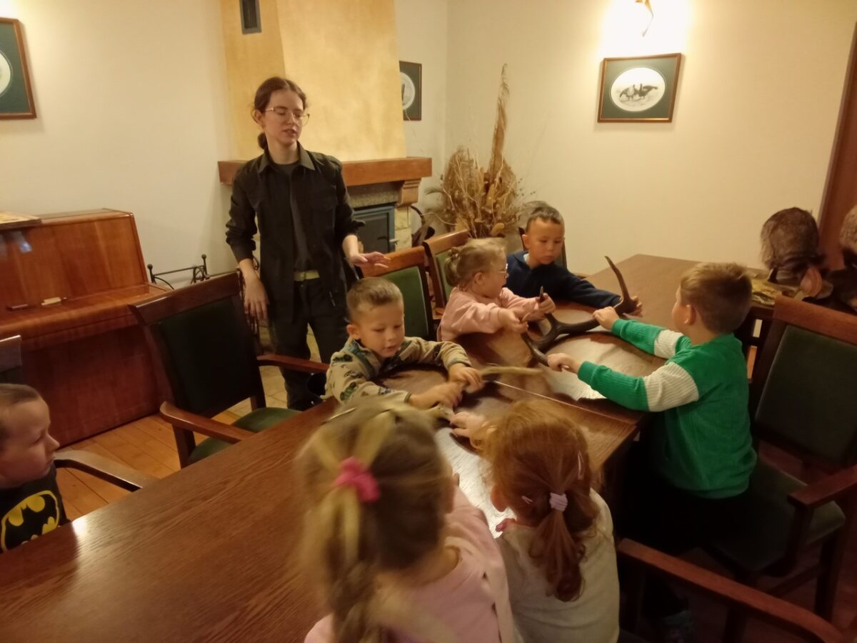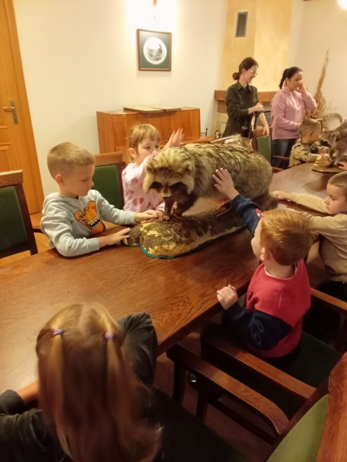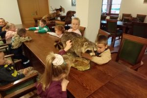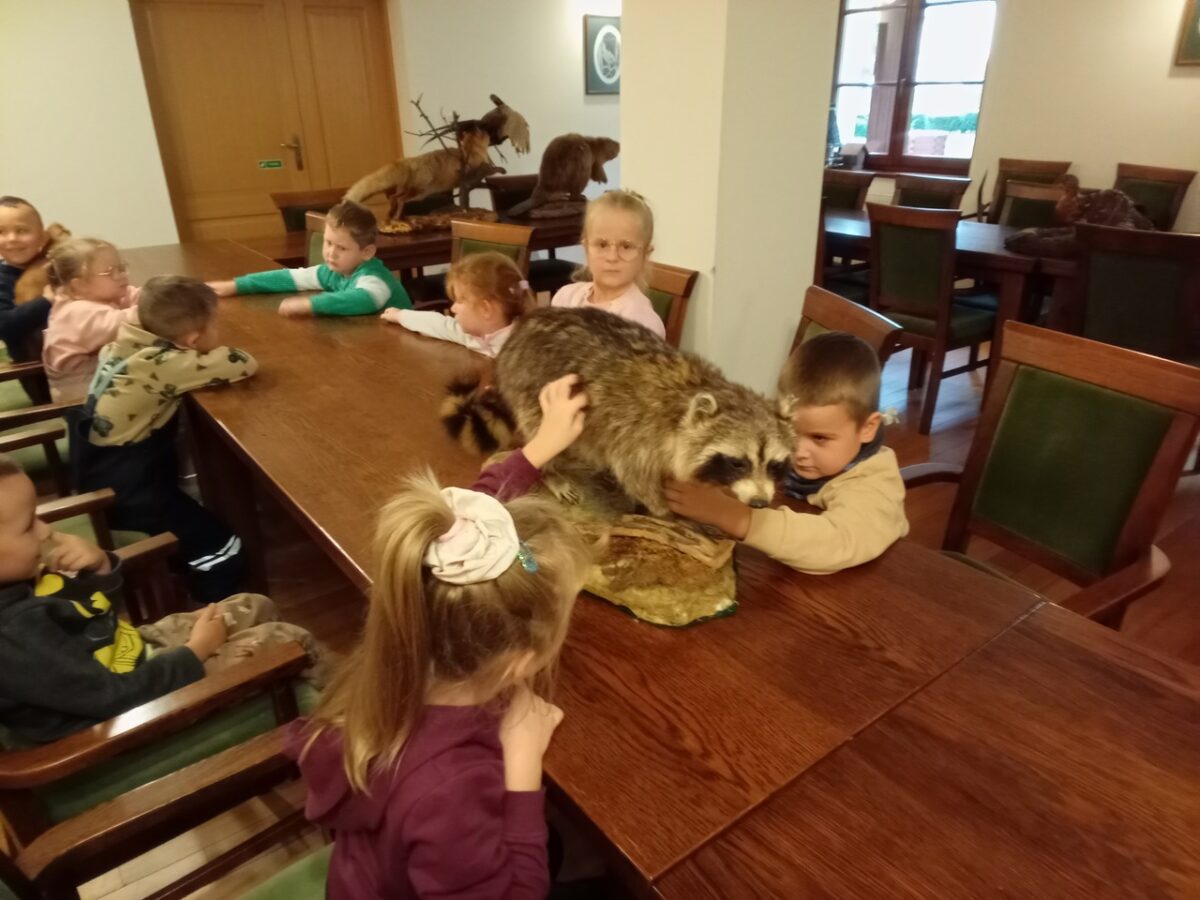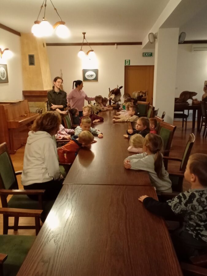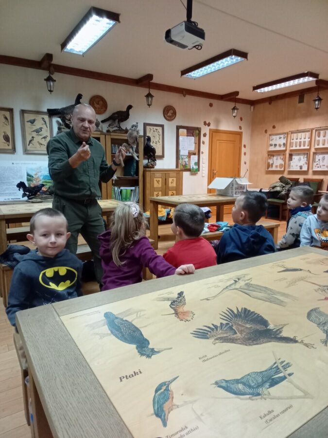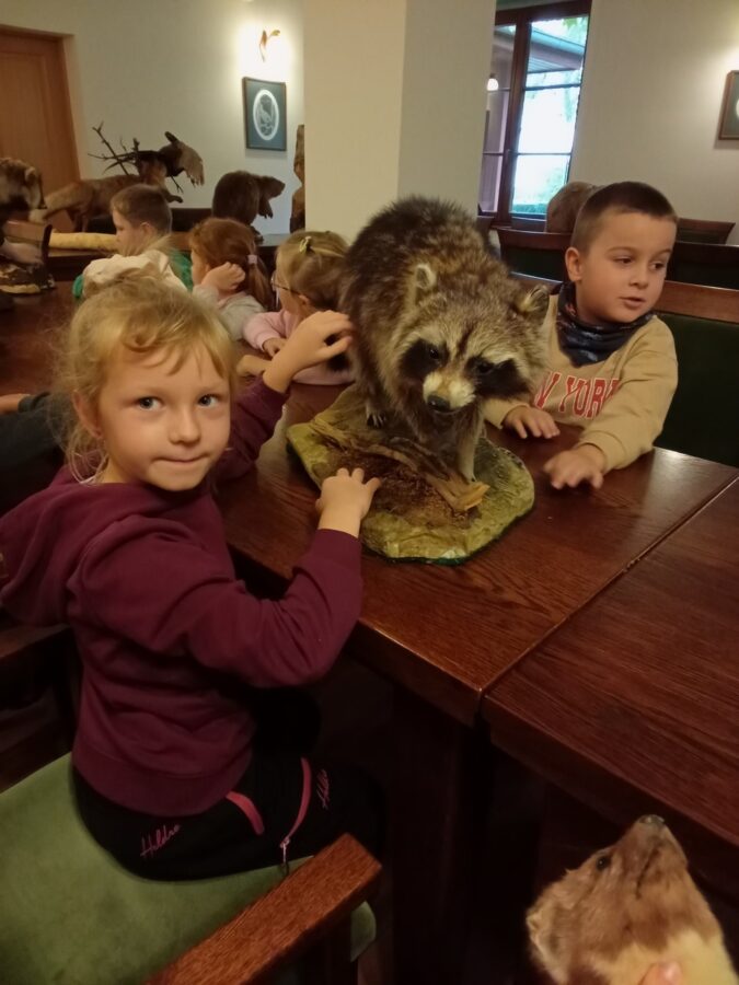 8 października dzieci z grupy Słowiki wybrała się do Nadleśnictwa w Ruszowie. Celem wycieczki było zapoznanie dzieci z lasem i jego mieszkańcami i rolą leśników, kształtowanie wrażliwości na przyrodę oraz uczenie zasad ochrony środowiska. Dzieci w wielkim skupieniu słuchały niezwykłych opowieści Leśników, układały edukacyjne puzzle, zapoznały się ze zwierzętami mieszkającymi w lesie i zagrały w grę terenową. To było niezwykła wycieczka, która na długo pozostanie nam w pamięci.