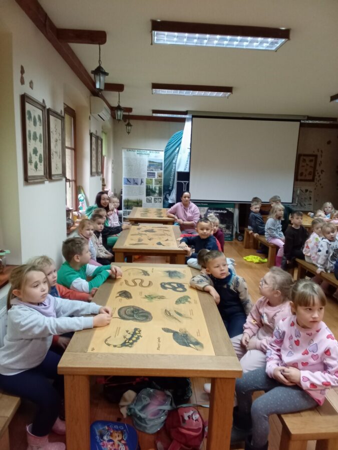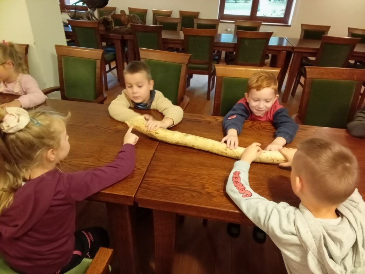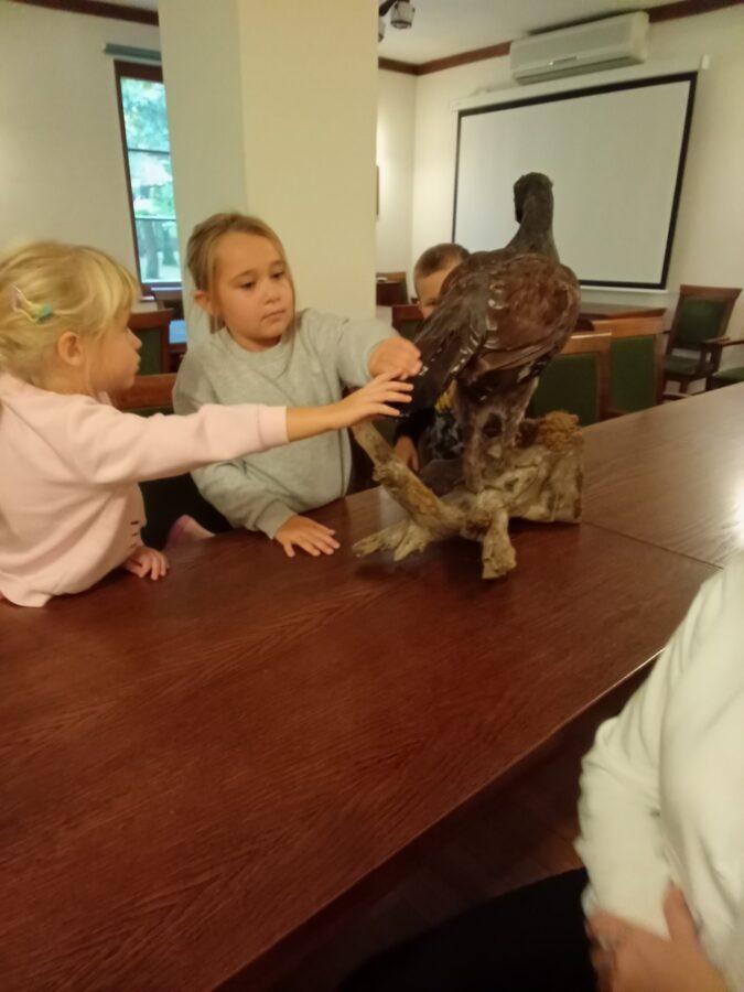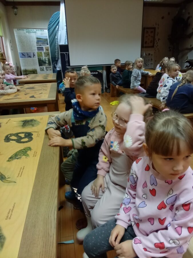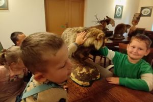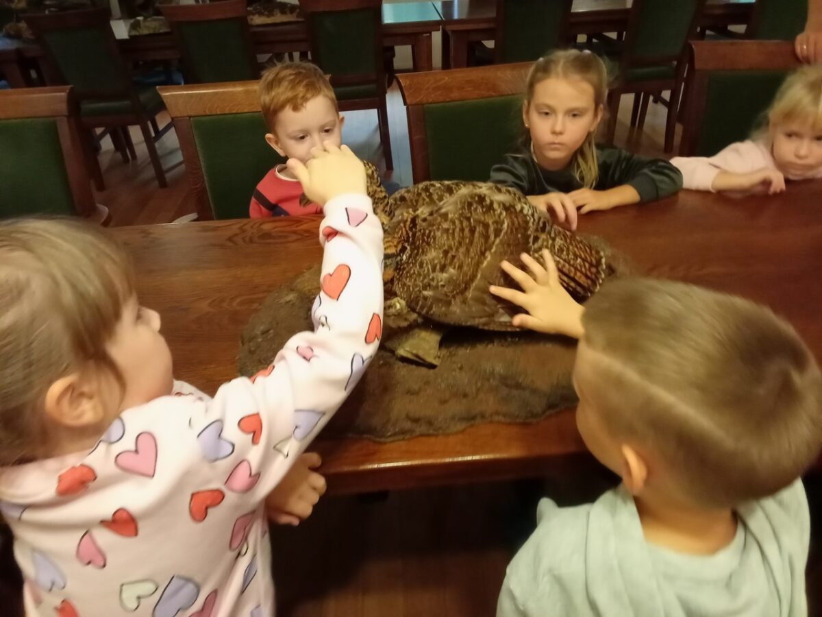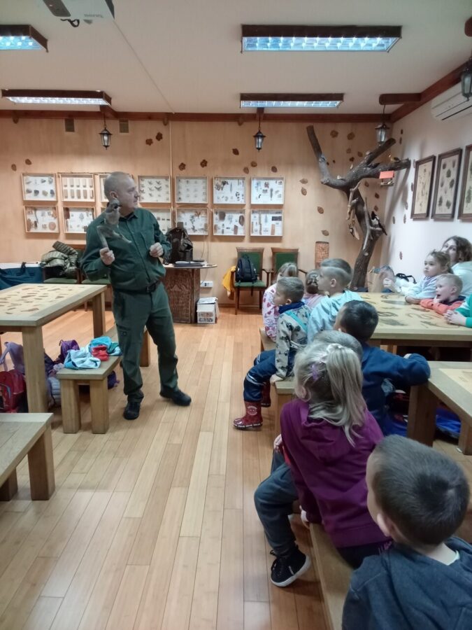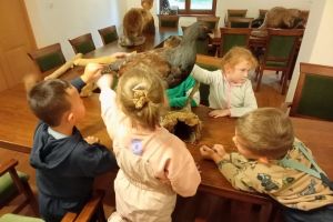 8 października dzieci z grupy Słowiki wybrała się do Nadleśnictwa w Ruszowie. Celem wycieczki było zapoznanie dzieci z lasem i jego mieszkańcami i rolą leśników, kształtowanie wrażliwości na przyrodę oraz uczenie zasad ochrony środowiska. Dzieci w wielkim skupieniu słuchały niezwykłych opowieści Leśników, układały edukacyjne puzzle, zapoznały się ze zwierzętami mieszkającymi w lesie i zagrały w grę terenową. To było niezwykła wycieczka, która na długo pozostanie nam w pamięci.
