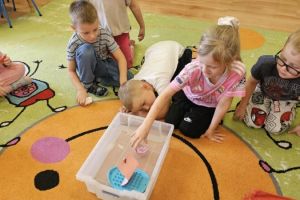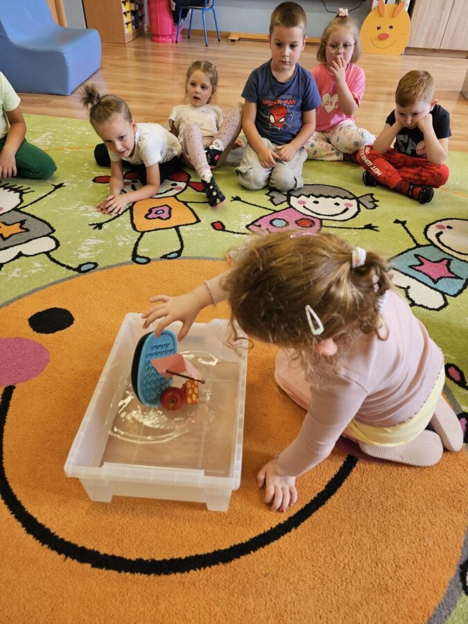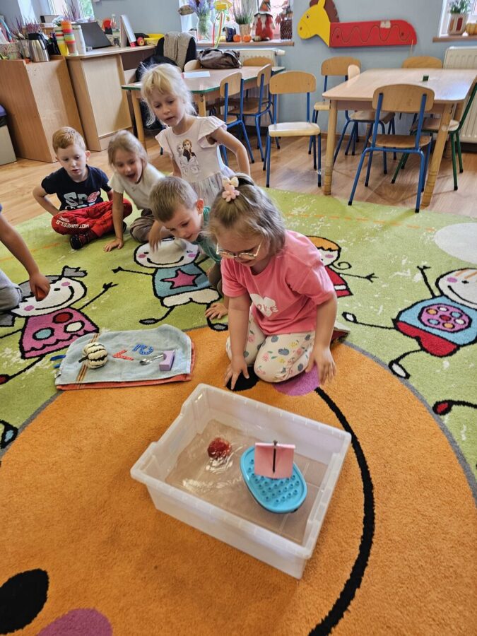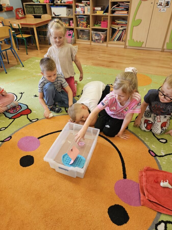 Dzieci porównywały rodzaje pojazdów wodnych, budowały wg instrukcji oraz konstruowały własne pojazdy. Przypomnieliśmy sobie treść różnych bajek oraz budowaliśmy do nich inne zakończenia. Eksperymentowaliśmy z wodą. Konstruowaliśmy żagle do żaglówek. Nie zabrakło kodowania, oraz zabawy z klockami wg pomysłów dzieci.